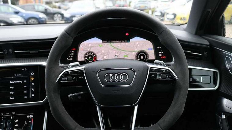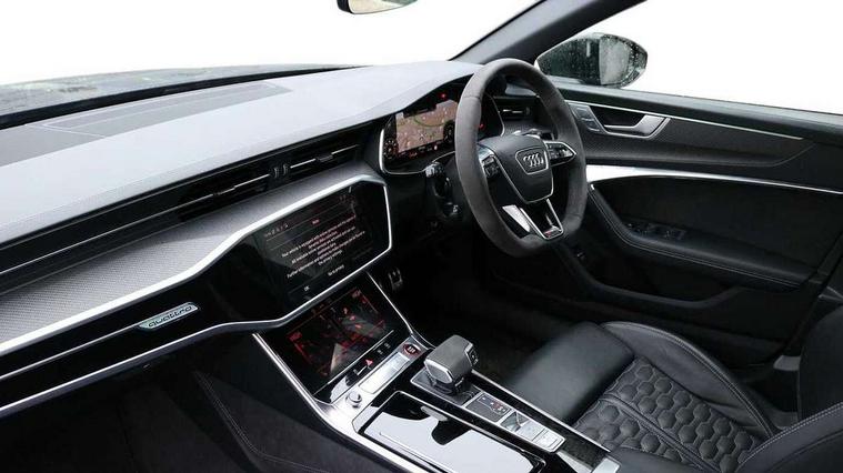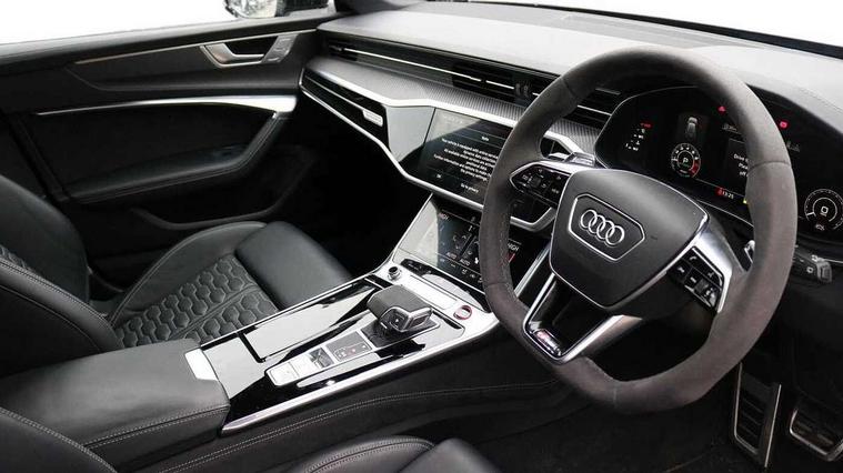 Audi connect safety and service (e-call), Audi connect with Amazon Alexa Integration, Audi drive select, Audi smartphone interface includes wireless Apple carplay/Android Auto, Audi virtual cockpit plus with RS specific design and 12.3" display with additional graphic display options, Automatic start/stop system, Bluetooth interface, Dynamic all wheel steering, Lane departure warning system, MMI navigation with MMI touch + twin touch screens 10.1" and 8.6" with haptic and acoustic feedback, Operating buttons in black, glass look with haptic feedback including extended aluminium look, Power operated tailgate, Rear view camera, Service interval indicator, Voice control system, 73 litre fuel tank, Quattro sports differential, Audi music interface, Audi sound system, DAB Digital radio, 3rd brake light, Adaptive windscreen wipers with integrated washer jets, Black mirror caps, Body colour rear roof spoiler, Electric front/rear windows, Electrically adjustable, heated and folding door mirrors with integrated LED indicators and kerb view function for passenger side, Frameless auto dimming interior rear view mirror, HD Matrix LED headlights with Audi laser light with dynamic light design and dynamic turn signal, Headlight washers, Heat insulating darkened glass in side and rear windows, Illuminated door sill trims with RS lettering, LED daytime running lights, LED rear combination lamps with dynamic light design and dynamic turn signal, Privacy glass with rear/side windows and acoustic glazing side windows, Radiator grille in honeycomb structure, large front air inlets and rear diffuser in gloss black, Rain and light sensors, Rear side wing doors, Rear wiper, RS front bumper with air inlets on both side, Wheel arch extensions, 2 seat bench in 2nd row, 4 way electric lumbar support for driver and front passenger, 4 zone deluxe automatic climate control, Aluminiium gear shift paddles, Audi Sport logo projection (Audi Beam) in front and rear, Black cloth headlining, Electric steering wheel adjustment, Electrically adjustable front seats with driver memory, Front and rear headrests, Front centre armrest, Front seat ventilation, Front/rear floor mats, Heated front seats, ISOFIX child seat mounting and Top Tether with front passenger airbag deactivation, Leatherette on upper instrument panel and door shoulders, RS Front sports seats, Single passenger seat, Stainless steel pedals and foot rest, Valcona leather upholstery with perforated honeycomb and RS lettering, Air quality pack - RS6, Extended LED interior multi coloured lighting pack - RS6, Gloss carbon black styling pack - RS6, RS Grey design pack - RS6, Storage pack - RS6, 2 x 3-point rear seatbelts, Airbags - Front side, front and rear including head, Audi pre-sense front, Direct tyre pressure monitoring system, EBD - Electronic brakeforce distribution, Electromechanical parking brake, Electronic Stability Control (ESC) including ABS, ASR and EDL, Extended pedestrian protection measures, Manual child lock in rear doors, Warning triangle and first aid kit, Anti theft alarm with tow away protection, Anti-theft wheel bolts and wheel loosening detection, Immobiliser, Keyless Go, Remote central locking, Carbon twill inserts, 22" Gloss black turned finish alloy wheels, Tyre repair kit,