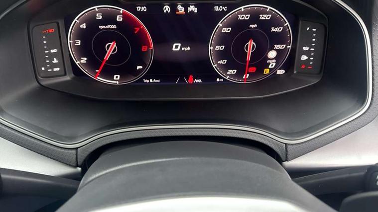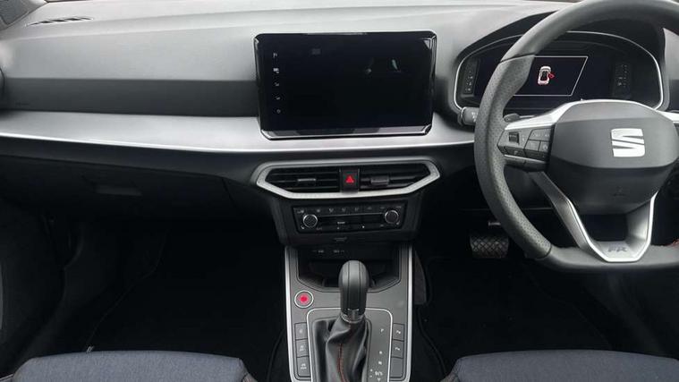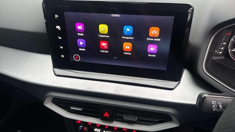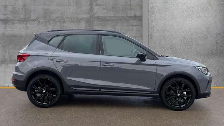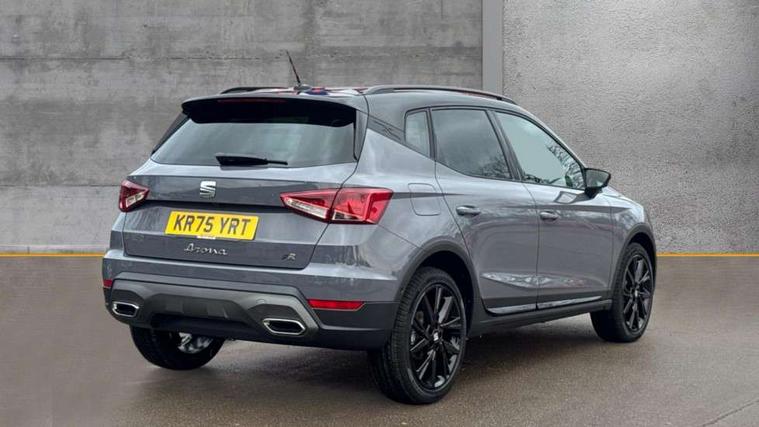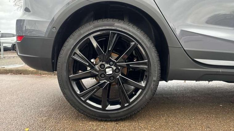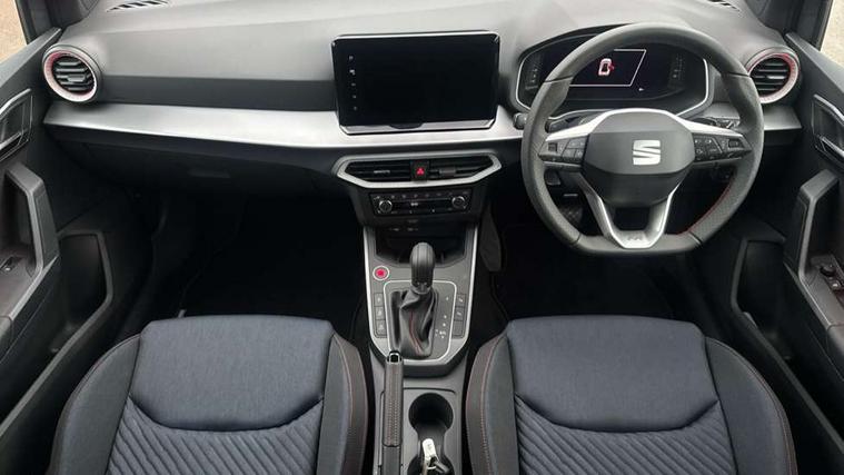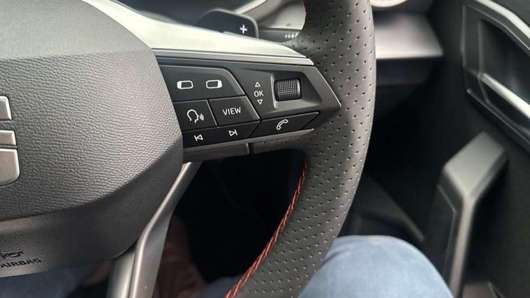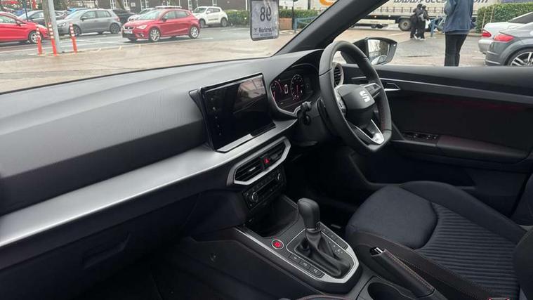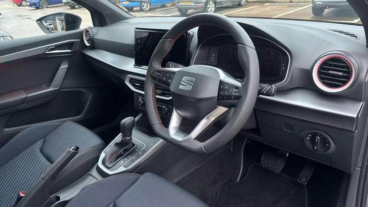 'Lights On' Reminder warning buzzer, 10" Digital cockpit, Digital clock, E-call, Electric speed sensitive power steering, Full link smartphone integration with mirror link, wireless apple carplay, Google android auto + USB Type C cable for apple and android devices, Lane keeping system, Low fuel warning light, Outside temperature display, Park assist system, Rear view camera, RPM counter, SEAT Drive profile - Four different models normal-sport-eco-individual, steering response, throttle response and gear shifts mode, Trip computer, Wireless phone charger, 9.2" colour touchscreen with navigation system, voice control and USB port (type c), Bluetooth interface for hands free and audio streaming, DAB digital radio and AM/FM radio, Steering wheel mounted audio controls, Anti theft roof antenna, Auto dimming interior rear view mirror, Automatic activation of hazard warning lights, Black roof rails and window surrounds, Black side skirts, Body coloured bumpers, Body coloured door handle inserts, Dark tinted rear windows, Electric front/rear windows, Electrically adjustable, heated and folding door mirrors, Front fog lights with cornering function and rear fog light, FULL LED automatic headlights with dynamic headlight range control, coming and leaving home, LED daytime running lights, Lasered lettering on B pillar, LED rear tail lights and licence plate lights, Protective side mouldings, Rain sensing wipers, Rear side wing doors, Rear spoiler, Rear window wash/wipe, Roof colour door mirrors, Third brake light, Twin exhaust pipe styling hidden exhaust pipe, Visible VIN plate, 2 cupholders, 3 seat bench in 2nd row, 60/40 split folding rear seat, Aircare filter, Black interior roof, Double boot floor, Driver sunvisor with covered mirror + card holder, Dual zone climate control, Front courtesy light with front reading lights, Front seat back storage pockets, Gear shift indicator, Grey interior air vents, Heated front seats, Height adjustable front seats, Height/reach adjustable steering column, Illuminated air vent surrounds, Illuminated boot, Instrument lighting with brightness control, Interior ambient lighting, Interior light in footwell, central console and door panel, ISOFIX points in outer rear seats with top tether anchorage points, Microsuede cloth upholstery, Passenger sunvisor with vanity mirror, Perforated flat bottomed leather steering wheel/gear knob/handbrake with red stitching and FR logo, Potentiometer, Single front passenger seat, Sports cloth bucket seats, Steering wheel mounted gearshift paddles, Two front and three rear height adjustable headrests, Interior chrome pack - Arona, Safe and driving pack (S) - Arona, Safety and driving pack (M) - Arona, ABS, Active front headrests, Child locks on rear doors, Driver and front passenger airbags with front passenger airbag de activation, front side and curtain airbags, Emergency Brake Assist (EBA) and front assist, Front and rear seatbelt reminder, Hill hold control, Multi-Collision braking, Tiredness recognition system, Traction control, Tyre pressure monitoring system, Alarm with back up horn with tow away protection, Deadlock, Electronic engine immobiliser, KESSY Keyless entry and go, Locking wheel bolts, Remote central locking, Titan black dashboard, 18" Black alloy wheels,