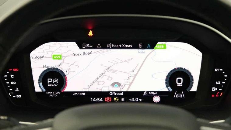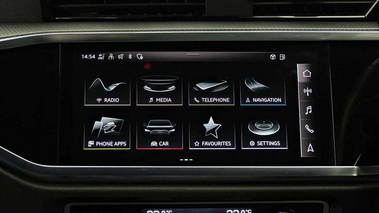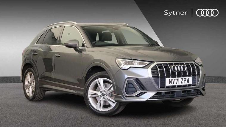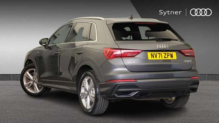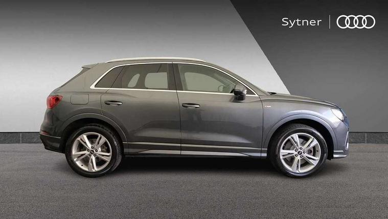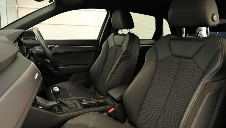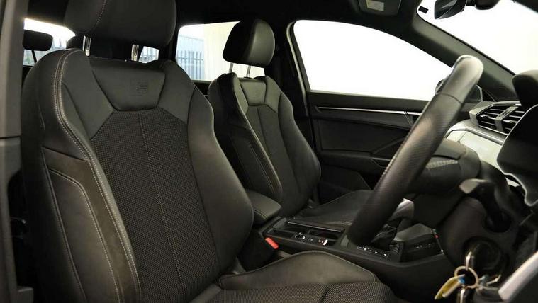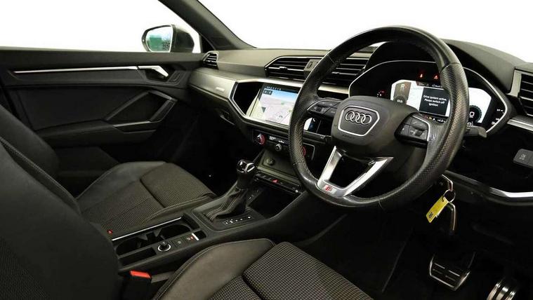 Amazon alexa Integration, Audi connect safety and service (e-call), Audi drive select, Audi lane departure warning, Audi Virtual Cockpit - 10.25" display, Bluetooth interface, Camera based traffic sign recognition, MMI Navigation Plus with high resolution 10.1 inch touchscreen colour display, Power operated tailgate, Progressive steering, Service interval indicator, Smartphone interface includes wireless Apple carplay/Android Auto, Start stop system with recuperation, Voice control system with natural language interaction, Sports suspension, 2 USB-C ports with charge and data functions, 6 passive loudspeakers, DAB digital radio module, Acoustic windscreen, Aluminium roof rails, Aluminium window trim, Auto dimming frameless rear view mirror, Body coloured bumpers, Electrically folding, adjustable and heated door mirrors with integrated LED side indicators and kerb view function for passenger side, Front and rear electric windows, Front fog lights, Front side air inlets in matt platinum grey, Front spoiler blade in matt platinum grey, Grille vertical bars in aluminium silver/Matt, High gloss black finish B and C pillars, LED headlights with LED daytime running lights and dynamic rear indicator, LED rear lights, Privacy glass dark tinted rear and rear-side windows (from B-pillar backwards), Rain and light sensors, Rear diffuser strip in matt titanium black, S line badges on front wings, S Line front and rear bumpers, Side skirt insert in matt Platinium grey, Silver chrome grille surround, Titanium black radiator grille, 12V socket in rear centre console, 40:20:40 folding with manual adjustment for 60:40 forwards/backwards position and backrest angle, Adjustable rear seat bench/backrest with centre armrest and cupholder, Black cloth headlining, Dual zone electronic climate control, Front and rear black floor mats with contrast stitching in rock grey, Front and rear headrests, Front and rear roof module including reading lights, Front centre armrest, Glove compartment lighting, Height and reach adjustable steering wheel, Illuminated door sill trims with S logo, ISOFIX child seat mounting for front passenger with airbag deactivation and outer rear seat including top tether attachment point for outer rear seats, Luggage compartment light, Manual front seats with height adjustment, Perforated leather gearknob, Stainless steel luggage compartment sill finisher, Stainless steel pedals, Non smoking pack - Q3, 3x3 point rear seatbelts, 6 airbags - Driver, front passenger, curtain and side windows, Audi pre-sense front with pedestrain and cyclist recognition, Electrically operated child locks on rear doors, Electromechanical parking brake, Electronic stabilisation control including ABS, ASR and EDL, Hill descent control, Hill hold assist, Pre sense basic, Seatbelt monitoring, Tyre pressure warning, Warning triangle and first aid kit, Anti theft alarm, Anti theft wheel bolts, Remote central locking, Dark matt brushed aluminium inlay, Detail dashboard around MMI touch colour display in glass look, black with surround in aluminium look, Leatherette door armrest,