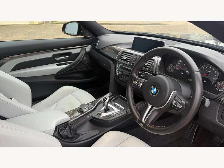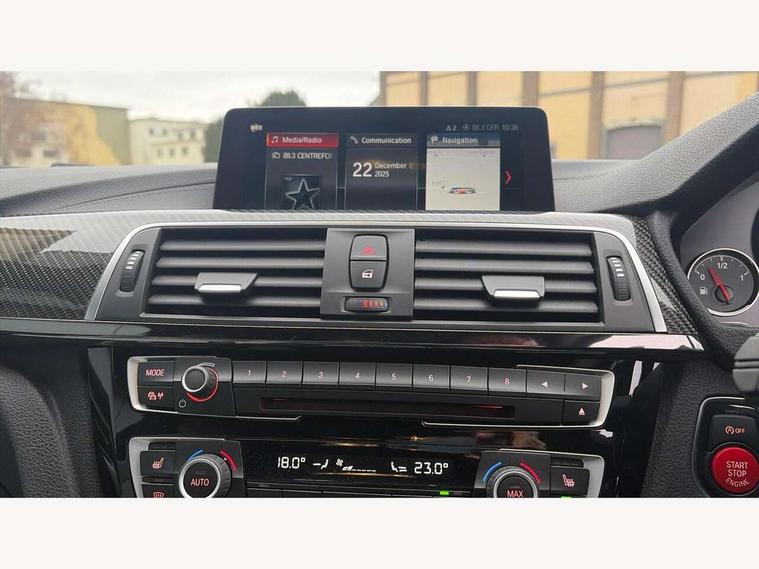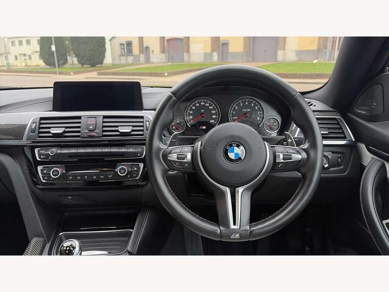Brake pad wear indicator warning light, Cruise control with brake assist, Door/boot open warning, Electric Power Steering (EPS) with Servotronic, Enhanced bluetooth with wireless charging, Lights on warning, Oil temperature gauge, On board computer, Outside temperature display, Service interval indicator, Stop/start button, Adaptive M Sport suspension, Drive Performance Control, M differential lock, Sport exhaust system, Auxiliary point for auxiliary devices, Bluetooth audio streaming, BMW professional radio/CD/MP3, DAB Digital radio, Wi-Fi hot spot, 2 speed adjustable intermittent wipers with wash/wipe function, Auto dimming rear view mirror, Body colour door handles, Daytime running lights, Door sill finishers, Dynamic brake lights, Electric adjustable heated door mirrors, Electric front windows/one touch facility, Exhaust tailpipes in high gloss black, Exterior mirrors - electrically folding with anti-dazzle, Follow me home headlights, Heat insulating tinted glass, Heated windscreen washer jets, High gloss black kidney grille, High gloss black M side strakes, Individual high gloss shadow line, LED tail lights, M aerodynamic bodystyling, Rain sensor including auto headlights activation, 12V sockets in front centre console and passenger footwell, 3 spoke leather M sport multifunction sports steering wheel, 4 grab handles, Anthracite headlining, Anthracite Velour floor mats, Driver + passenger electric lumbar support, Driver/passenger sunvisors with illuminated vanity mirrors + covers, Dual zone climate control, Electrically adjustable front seats - driver seat with memory, Folding front centre armrest + storage, Front centre armrest with storage compartment, Front cupholders x 2, Front head restraints, Front sliding armrest, Full black panel display, Glovebox with lid, Heated front seats, Integrated rear head restraints, ISOFIX child seat preparation+airbag deactivation, Lashing eyelets in boot, Leather gearknob, Leather handbrake grip, M Sports seats, Reach + rake adjustable steering column, Storage compartment in rear centre console, Toolkit located in luggage compartment, Extended lights package - M Series, Media pack - Professional - M4, 3 point seatbelts on all seats, ABS/EBD, Automatic Stability Control (ASC), Cornering brake control (CBC), Crash Sensor - activates hazard/interior lighting + unlocks doors, Driver seatbelt warning indicator, Driver/Front Passenger airbags, DSC+, Dynamic brake control, Dynamic Traction Control - DTC, Front seatbelt force limiters, Front seatbelt pretensioner, Front side airbags, Hill start assist, ITS head airbags for front/rear, M sport seatbelt, Tyre pressure monitor, Warning triangle and first aid kit, Drive away door locking, Electronic immobiliser, Keyless Start, Remote central locking, Remote control Thatcham category 1 alarm, M mobility system (flat-tyre repair system),
