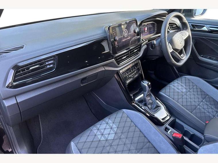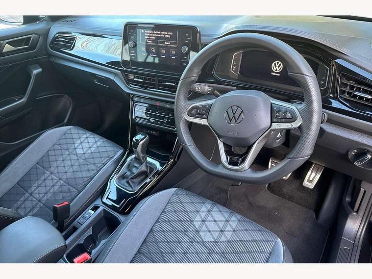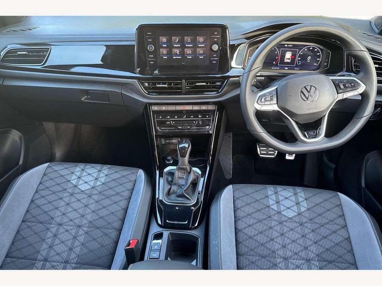 10.25" Digital cockpit pro, Advanced driver attention and drowsiness monitor, Emergency call service, Lane keeping system Lane Assist, Mobile phone interface, Modified key software - reduce switch off time for key status change to Long no motion, Online services, Park assist including front and rear parking sensors, Power assisted speed sensitive steering, Service interval indicator, Tailgate/trunk lid release from outside, Think blue trainer driver tips and journey analysis, Warning sound and light for front seatbelts unfastened, Wireless app connect, Battery regeneration during braking, Rear shock absorption chassis with increased ride height, Start/stop function with battery regeneration, DAB Digital radio, Diversity antenna for FM reception, Front and rear 6 speakers, Music playback - MP3, WMA and AAC files, Premium USB cable in choice of either Apple or Android smartphone compatibility, SD card slot, Simultaneous pairing of 2 compatible mobile devices, Title and cover art display, We Connect and We Connect Plus functionality, Auto dimming interior rear view mirror, Automatic hazard lights activation under emergency braking, Automatic headlight control with LED separate daytime running lights with coming/leaving home function, Dynamic cornering light, Electrically adjustable and heated door mirrors, Extended roof spoiler, Exterior mirrors aspherical on driver side, convex on front passenger side, External USB type C socket and charging sockets, Front windscreen wiper with intermittent wipe and 4 position delay, Heated rear window, Illuminated front grille, IQ LED matrix headlights, LED 3rd brake light, LED rear number plate lights, LED rear tail lights with dynamic turn signal, Light mode for poor weather, rain, fog or snow, Power windows with comfort operation and circuit breaker, R-Line design body coloured bumpers, Rain sensor, Rear exhaust tailpipe, Rear fog light on one side and reversing lights on both sides, Rear side wing doors, Rear wash/wipe with intermittent wipe setting, Remote electrically foldable door mirrors, puddle lights and reverse activated passenger's door mirror, 12V power socket in centre console, 3 rear head restraints, 3 seat bench in 2nd row, 4 load lashing points in luggage compartment, Air care climatronic air conditoning system with active combination filter and 2-zone temperature control, Artvelours cloth upholstery, Black roof lining, Chrome plated radiator grille inserts, air vent surrounds and light switch surrounds, Door and side trim panel with leatherette insert, Drawer under drivers seat, Driver seat height adjust, Driver's seat lumbar support, Front + rear carpet mats, Front centre armrest, Front comfort sports seats, Front cupholders x 2, Front footwell illumination, Front reading light, Front scuff plates with R Line logo, Front seat back storage pockets, Glove compartment door with light, Instrument lighting, white adjustable panel illumination, Interior ambient lighting and surround lighting, Interior light delay, Isofix child seat preparation, Leather gearshift handle, Leather wrapped multifunction steering wheel with paddle shift, Load-through provision with cup holder when folded down ('Unsplit rear seat bench, split folding backrest, with centre armrest), Luggage compartment lighting, Non-folding front passenger seat backrest, Passenger seat height adjuster, Passenger seat lumbar support, Single front passenger seat, Stainless steel pedals, Storage compartment in left and right luggage area, Storage compartment in rear doors, Storage compartments in driver and front passenger doors, Sunvisors with illuminated vanity mirrors, Variable boot floor, height adjustable and removable, Winter pack without heated windscreen washer jets - T-Roc, 3 point height adj front seatbelts + pretensioners, 3 point seatbelts in outer rear with ECE label, ABS, Child locks on rear doors, City emergency braking and pedestrian monitoring, Driver and front passenger airbag with front passenger airbag deactivation, Driver and front passenger safety-optimised head restraints, Drivers seatbelt reminder, Electronic parking brake, Electronic Stability Control (ESC) inc EDL (Electronic Differential Lock) and ASR (Traction Control), Front and rear passengers curtain airbag system including front side airbags, Front disc brakes, Hill start assist, Predictive pedestrian protection, Rear disc brakes, Two tone horn, Tyre pressure loss indicator, Volkswagen roadside assistance, Tool kit, Trims for alloy wheels, Tyre mobility kit including compressor and sealing foam,