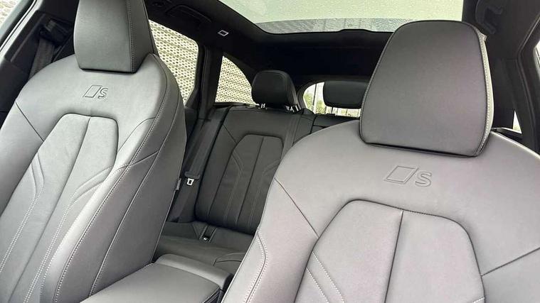 Audi application store, Audi assistant, Audi connect emergency call and service, Audi connect with Amazon Alexa Integration, Audi digital key, Audi drive select, Audi phone box with wireless charging, Audi virtual cockpit, Automatic start/stop system with coasting functionality, Bluetooth interface, Luggage compartment lid with Electric opening / closing, MMI navigation plus with high resolution 14.5" OLED touchscreen colour display, Power assisted steering, Service interval indicator, Smartphone interface includes wireless Apple carplay/Android Auto, Voice control system, Quattro with ultra technology, Sports suspension, Audi sound system impressive sound with 10 loudspeakers including centre speaker and subwoofer, 6-channel amplifier with a total output of 180 watts, DAB Digital radio, USB ports with charging function, Aluminium roof rails, Audi Matrix LED technology, Auto dimming rear view mirror, Automatic-dynamic headlight range control, Body colour door mirrors, Body coloured door handles, Dipped beam, main beam, position light, dynamic indicator and cornering light, Door mirrors - electrically adjustable, heated, folding and auto dimming on both sides, Dynamic light scenarios of the coming home/leaving home function when stationary, Electric front/rear windows, Frameless auto dimming interior rear view mirror, Front illuminated aluminium inlay door sill trims with S logo, Headlight cleaning system, LED headlights Plus incl. digital daytime running lights, turning light, all-weather light, motorway light, manouevring light and intersection light, LED rear lights pro incl. brake lights, tail lights, rear number plate lights, reversing lights, continuous light strip, LED third brake light, Privacy glass, Rain and light sensors, Rear and side windows with heat insulating glass, Rear side wing doors, Rear wiper, Roof spoiler, S line exterior styling, Sport exterior inc Radiator grille, air inlets and diffuser in scandium grey as well as inlay in diffuser in selenite silver, White rhombus logo projection light in exterior mirrors, Window trim strips in aluminium look, Windscreen with heat insulating and acoustic glazing, 3 seat bench in 2nd row, 3-spoke Sport leather steering wheel flat top and bottom with multifunction and shift paddles, 4 way electric lumbar support for driver and front passenger, 4 zone deluxe automatic climate control, 40:20:40 split folding rear seat bench with centre armrest and cup holders, Centre armrest, front- adjustable angle with four settings, Electrically adjustable front seats, Front head restraints, Heated front seats, i-Size child seat mounting on the front passenger side and outer rear seats, i-Size and top tether on the outer rear seats, Manual steering wheel adjustment, Net partition, Rear headrests, Single front passenger seat, Sport front seats, Stainless steel pedals and footrest, Steering wheel trim in chrome look, S emblem, steering wheel grips in perforated leather and contrasting stitching, Twin leather/artificial leather upholstery, Ambient lighting package plus - A6, Drive and Park assistance package - A6, Protective warning assistance package - A6, 3x3 point rear seat belts, Acoustic vehicle alerting system, Black seat belts, Convenience key with safelock, Driver and front passenger airbags, EBD - Electronic brakeforce distribution, Electric rear child safety lock, Electromechanical parking brake, Electronic Stability Control (ESC) including ABS, ASR and EDL, First aid kit with warning triangle and vests, Front passenger airbag deactivation, Seatbelt monitoring, Side airbags front with head airbag system and interaction airbag, Standard 18"steel disc brakes front and rear, Tyre pressure monitoring system, Anti theft alarm, Anti-theft wheel bolts, Immobiliser, Keyless Go, Remote central locking, Accents in the interior in aluminium look, Inlays in matt brushed aluminium with linear embossing, anthracite, Upper and lower interior elements in leatherette with contrasting stiching, Wraparound interior elements in artificial leather, Tyre repair kit,