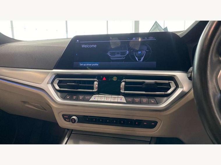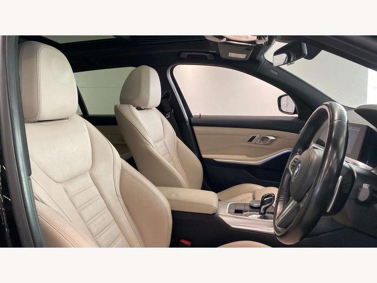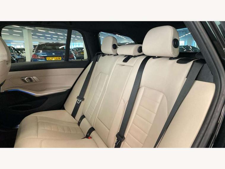 Active guard plus, Attentiveness assist, Auto start-stop, Bluetooth hands free facility with USB audio interface with audio streaming, BMW ConnectedDrive oline services with BMW apps, BMW iDrive controller on centre console, BMW service history, BMW Teleservices, Brake pad wear indicator in front and rear, Check Control warning system for monitoring of lights and door/luggage compartment open warning, Condition based service, Cruise control with brake function + speed limiter, Electric power steering with Servotronic steering optimised at all speed ranges, Gearshift time display in manual mode, Instrument cluster with speedometer with mph readout, tachometer, fuel gauge and oil temperature gauge, Integrated owners handbook, Oil sensor for level and grade, warning by check control system, On board computer - average speed+fuel consumption, service interval, clock/date, odometer/trip meter, outside temperature display and ice warning, Optimum shift indicator, Personal Profile - automatic lock when driving away selectable, Balanced 50/50 weight distribution, Battery cut-out switch, Charging cable - Mode 2, Drive performance control - ECO PRO, comfort and sport modes, EU6 emissions management, Stroke dependent dampers, DAB tuner, Electronic service booklet, Stereo speaker system with 2 mid range speakers in the front door trims and rear parcel shelf + 2 central bass speakers underneath the front seats, Acoustic glazing, Active airstream chrome frame kidney grille with 8 high gloss black vertical slats, Automatic headlight activation/adjustment, Automatic headlight beam throw control with load dependent regulating reaction, dynamic compensation of braking dive and acceleration squat, Black roof mouldings, Body colour door handles, Body colour fuel filler flap, Body colour mirror caps with bottom segment in matt black, Dynamic brake lights, Electric windows - front and rear, with open/close fingertip control, anti-trap facility and comfort closing, Exhaust tailpipe - split left and right, Exterior mirrors - electrically folding with anti-dazzle, Fading support, Front and rear bumper system with replaceable deformation elements, Front black door sill finishers with BMW designation, Green tinted heat protection glazing, High gloss black exterior B pillar, Interior rear view electrochromatic mirror with automatic anti dazzle function, LED daytime running lights, LED front fog lights, Lightweight engineering, M designation on front side panels, left and right, Model designation on right side of tailgate, Rear wiper, Shark fin antenna, Two part LED tailights in L-shape with components in smoked glass, brake light, LED turn indicator and rear fog light, Visible VIN plate, Welcome lights in interior and door handle area, Windscreen wipers with integrated washing jets, 12V power socket in front storage compartment, 2 front cupholder in centre console with clamping elements and matt black inlay, 3 zone automatic air conditioning, 4 pieces lashing eyelets in luggage compartment, 40:20:40 split folding rear seat with loading system, Ambient lighting with welcome carpet light, Anthracite headlining, Armrest integrated in front and rear door trim + front centre console armrest, Backrest width adjustment, Centred top Luggage compartment lights, Four grab handles integrated in roof lining, Front and rear door exit lighting (left / right), Front and rear door pockets, Front and rear reading lights, Front and rear velour floor mats, Front head restraints, Front sport seats, Heated front seats, Height adjustable mechanically and infinitely variable steering column, Illuminated armrest storage compartment, Illuminated glove compartment with separate small compartment, Interior lighting - front centre over interior mirror with soft light, rear centre and front and rear footwell lighting, Make-up mirror lights, Rear centre armrest with 2 cupholders, Rear centre console with storage compartment and ventilation grille, Sunvisors with vanity mirrors and ticket pocket, Three spoke multifunction M sport leather steering wheel, Toolkit located in luggage compartment, Connected pack professional - 3 Series Saloon/Touring, Live cockpit professional pack - 3 series, M sport exterior styling pack - 3 Series Saloon/Touring, 2 tone horn, 3 rear seats with non folding headrests, Airbags activation controlled with intensity and scope, BMW emergency call, Brake energy regeneration, Braking pre-tensioning, Child proof locking system in rear door, Child seat ISOFIX attachment rear outer seats, Coasting in idle in ECO PRO mode, Crash sensor activating of airbags, Unlocking doors, hazard warning lights, fuel cut off, interior lighting+activation of safety battery terminal clamp, Deactivation of fuel pump in the event of a crash, Driver and front passenger side airbags, integrated in the door side seat backrest bolsters for all seat variants, Driver/Front Passenger airbags, Dry braking, Dynamic brake control, Dynamic stability control + (DSC+) - Anti-lock Braking System (ABS) with brake assist and cornering brake control + Automatic Stability Control (ASC), Dynamic Traction Control - DTC, Electric parking brake including automatic hold function and automatic release of the parking brake when driving off, Electronic differential lock control (EDLC), Front passenger manual airbag deactivation, Head airbags for all 4 outer seats, Hill start assist, Seat belt security check for driver and front passenger, Side impact protection, Three 3 point seat belts on all seats including front belt stopper, pyrotechnic belt tensioners and belt force limiters, Tyre pressure monitoring with three level warning strategy, Ventilated front and rear disc brakes, Warning triangle and first aid kit, Alarm system (Thatcham 1) with remote control and electronic engine immobiliser, Central locking switch for all doors, fuel filler cap and luggage compartment, Remote control with integrated key one button open/close vehicle and windows, sole opening of the lugg