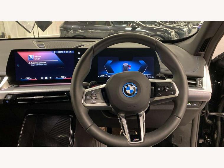 Attentiveness assist, Automatic start/stop function, BMW Live Cockpit Plus with 10.25" instrument cluster and 10.7" display, BMW Operating system 9 with BMW Maps, real-time traffic information, in-car experiences, remote services and smartphone integration, BMW Teleservices, Brake pad wear indicator, Condition based service, Connected eDrive Services, Drive off assistant, Electrically opening/closing tailgate with opening/closing with remote control and contactless opening and closing, iDrive controller, Language version English, My Modes, Parking Assistant with Reversing Assistant, active PDC, Lateral Parking Aid, Rear View Camera and Park Distance Control, Personal Profile - automatic lock when driving away selectable, Servotronic PAS, Tyre puncture warning system, Widescreen display, 11 kW AC charging power, eDrive exterior sound, EU6 emissions management, Fast charging cable professional mode 3 for public charging, M Adaptive suspension, Performance Control, Petrol Particulate Filter, Steptronic transmission with double clutch and gear shift paddles, xDrive intelligent four wheel drive system, BMW Personal eSim, DAB Digital radio, Badge on engine compartment lid and tailgate, Body colour door mirrors, Dynamic brake lights, Electric adjustable heated door mirrors, Electric windows - front and rear, with open/close fingertip control, anti-trap facility and comfort closing, Folding door handles integrated flush with surface, Follow me home headlights, Front and rear bumper panel with M specific design, in body colour with inserts in black high gloss, Front door exit lights, Heated rear window, High gloss shadowline, Invisible exhaust tailpipe, Key with M identification, LED 3rd brake light integrated in rear spoiler, LED daytime running lights, LED number plate light, M identification on the sides, M roof rails high gloss shadow line, M specific radiator grille in satinated aluminium, Matt black roof strips, Model inscription on right tailgate, Rain sensor including auto headlights activation, Rear side wing doors, Rear wiper, Sill cover in body colour, Trailer stabilisation logic, Windscreen washer nozzle for rear view camera, Windscreen wipers front with heated washer nozzles, 12V - Power sockets with front centre console and luggage compartment, 2 bag hooks in luggage compartment, 2 cup holders in front, 2 x USB Type C ports for charging in front centre console + 1 x USB Type C ports for charging in rear centre console, 3 rear headrests, 3 seat bench in 2nd row, 3 upper retaining strap clips integrated into rear panels of seat backrests, 4 grab handles, 40:20:40 split folding rear seats, Ambient interior lighting, Anthracite headlining, Anthracite Velour front and rear floormats, Bottle trays in all doors, Child seat ISOFIX attachment for two outer rear seats and front passenger seat with anchorage points, Clothes hook rear, Driver and front passenger heated seats, Dual zone automatic air conditioning, Front and rear door pockets, Front and rear footwell lighting, Front centre console storage compartment, Front/rear adjustable head restraints, Glove compartment, Interior door handle recess light on all doors, Light on right in luggage compartment, M sport leather steering wheel, Manual steering column height and depth adjustment, Middle centre console storage compartment, One piece parcel shelf opens together with tailgate and removable, Rear armrest in door trim panel, Single front passenger seat, Sport leather multifunction steering wheel with thumbrests and operation of instrument display, audio, telephone and driver assistance, Storage compartment net in left side trim panel, Storage compartment with folding cover under centre console armrest cushion, Storage tray in right side trim panel, Tilt adjustment incl. cargo function of 2nd row of seats, Vanity mirror lights, ABS/EBD, Automatic hold function, Automatic Stability Control (ASC), BMW emergency call, Braking readiness, Cornering brake control (CBC), Crash Sensor - activates hazard/interior lighting + unlocks doors, Driver/Front Passenger airbags, Driver/front passenger side airbags, Dry braking, Dynamic brake control, Dynamic stability control + (DSC+), Electromechanical parking brake, Energy recovery system, First aid kit, Front and rear brake discs, Front and rear head airbags, Front passenger airbag deactivation, Integrated brake system, PC iBrake PostCrash approach control warning with light braking function, Rear door child safety locks, Three point seat belts in all seats, Tyre pressure monitor, Warning triangle, Alarm system with tilt sensor, monitoring doors, bonnet interior and tailgate, Closing system with central locking, Locking wheel bolts, Luxury instrument panel, Tyre repair kit plus,