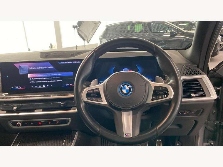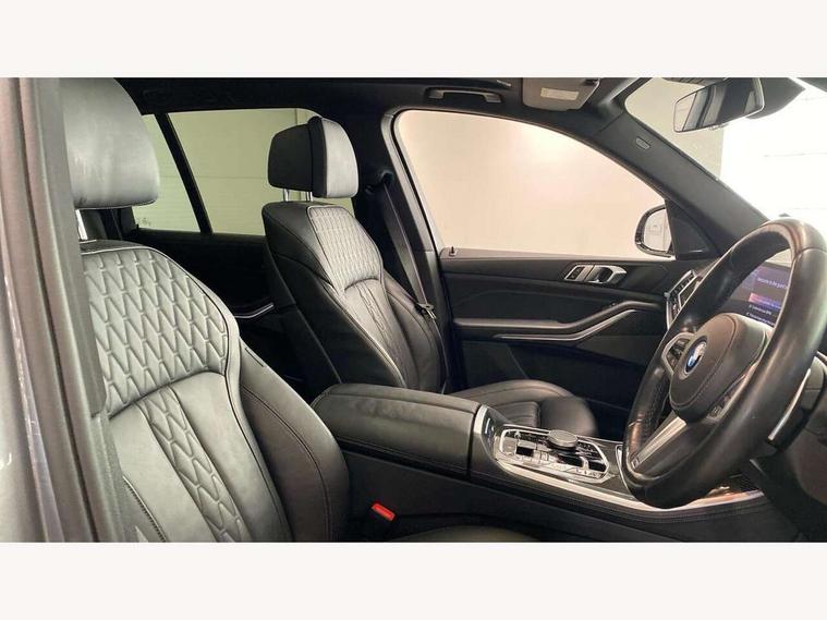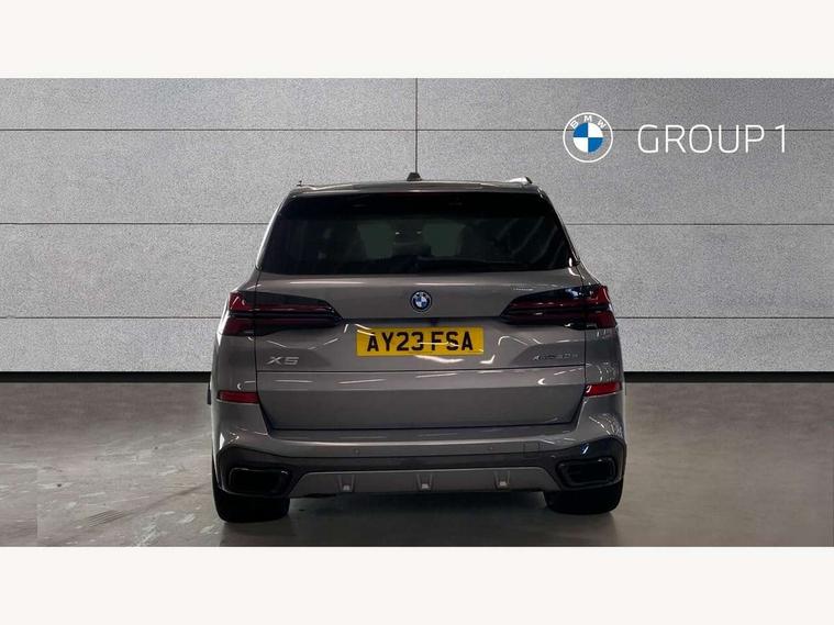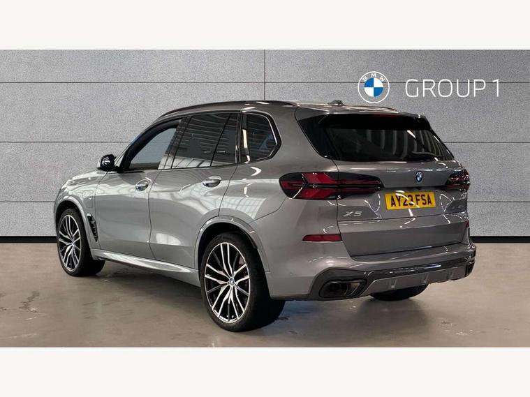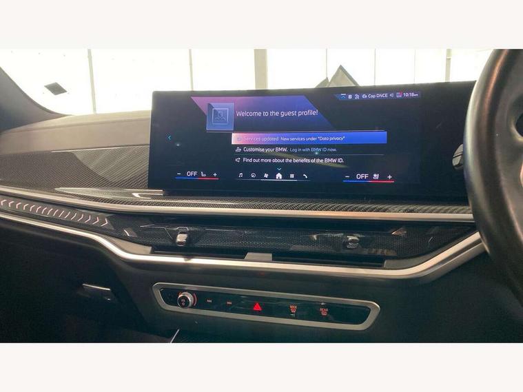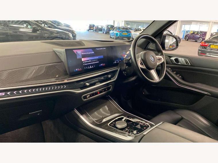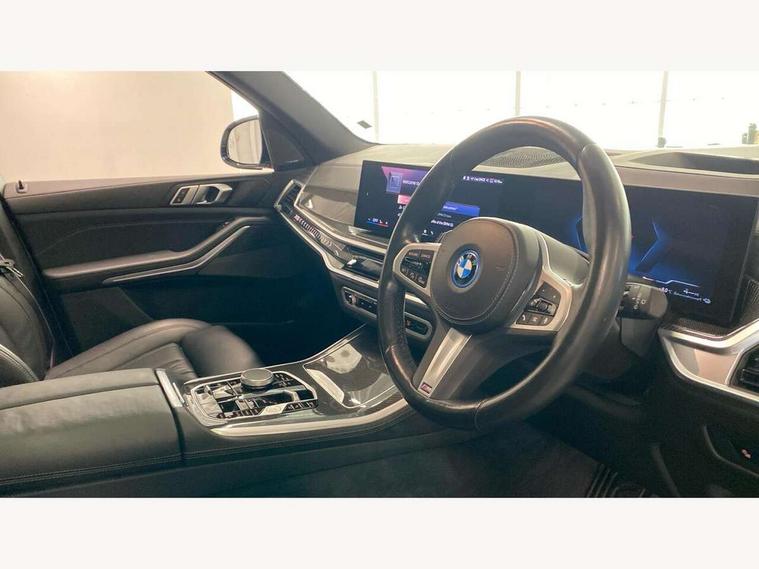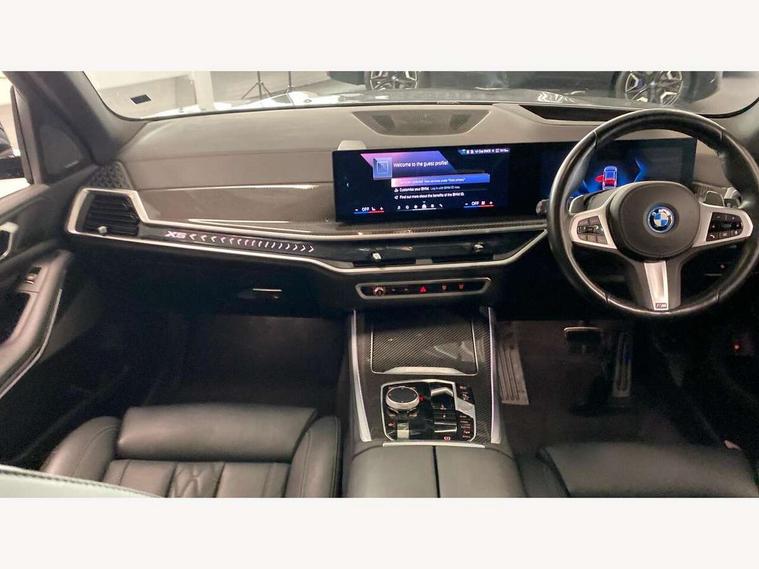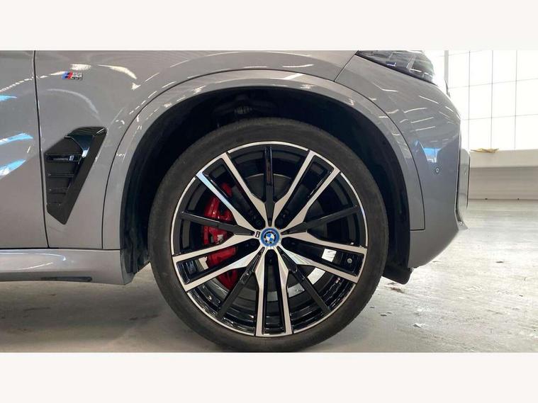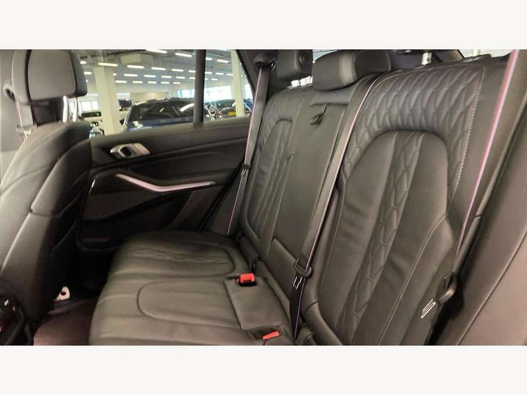 Attentiveness assist, Automatic tailgate operation, BMW ConnectedDrive online services, BMW live cockpit + with curved 12.3 instrument cluster/14.9 central display, nav/Tuner with diversity reception, RDS/4GLTE/remote software upgrade, BMW Teleservices, Condition based service, Cruise control with brake assist, eCall emergency call system, Enhanced bluetooth with wireless charging, Integrated owner's handbook, PAS, Speed limiter, Wi-Fi hotspot, Adaptive 2-axle Front and rear air suspension, Drive performance control with ECO PRO comfort + sport mode, Eight speed steptronic sport automatic transmission and gearshift paddles on the steering wheel, Flexible charger (Mode 2), Hi-Fi loudspeaker system, Adaptive LED Headlights, Front and rear electric windows, High beam assistant, High gloss black shadow line roof rails, LED daytime running lights, Rear side wing doors, Third brake light in rear spoiler, Variable intermittent rear wash/wipe, 12V - Power sockets with 2x centre console and 1x luggage compartment, 3 seat bench in 2nd row, Foldable rear centre armrest with 2 cupholders and storage compartment, Front and rear side armrest integrated into door trim, Headrests for all seats, Luggage compartment separating net, Single front passenger seat, Three spoke sport M leather steering wheel, Velour floormats, Ambient light interior pack - X5, Driving assistant pack with radar based driver assistance system - X5, Expanded exterior mirror pack - X5/X5 M, M aerodynamics pack - X5, 3 rear seatbelts, Acoustic protection for pedestrians, Active protection, Airbags - driver/front passenger, rear and side, first and second row seats head airbags, front passenger seat airbag deactivation + knee airbag, Anti-lock braking system (ABS), Automatic Stability Control (ASC), Brake energy regeneration, Cornering brake control (CBC), Crash sensor activating central locking release, hazard warning lights, fuel cut off, interior lighting + activation of safety battery terminal clamp, DSC - Dynamic Stability Control, Dynamic Traction Control - DTC, Electromechanical parking brake with automatic drive away release and auto hold function, Electronic brake force distribution, Hill start assistant, M Sport blue painted brake calipers with 'M' designation, Mechanical child proof lock on rear doors, Tyre pressure monitoring system, Tyre pressure sensors, Ventilated front and rear disc brakes, Warning triangle and first aid kit, Closing system with central locking, Comfort access system, Locking wheel bolts, Sensatec instrument panel,