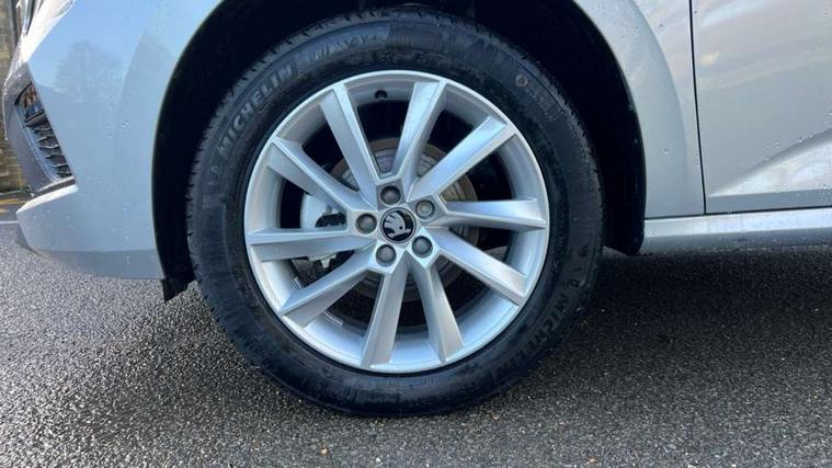 Advanced driver attention and drowsiness monitor, Bluetooth system, E-call, Front assist system, PAS, Rear parking sensors, Rear view camera, Service indicator, Speed limiter, Traffic sign recognition, Virtual cockpit with 10.25" display, Wireless smartlink, 4 USB C ports, 8 Speakers, 9.2" Skoda navigation display, DAB Digital radio, Auto dimming rear view mirror, Automatic headlight control with coming home and leaving home feature, Black roof rails, Body colour bumpers, Body colour door mirrors and handles, Chrome grille surround, Front and rear electric windows, Full LED headlights, Heated rear window, LED brake lights, LED daytime running lights, LED front turning lights, LED high beam, LED low beam, LED third brake light, Rear LED fog light, Rear side wing doors, Rear wiper, Ticket holder inside windscreen, 12V socket in luggage compartment, 3 seat bench in 2nd row, Black hotstamping, Cargo elements, Chrome inner door handles, Driver and passenger sun visors with vanity mirror, Dual zone climate control, Front and rear roof lights, Front centre armrest, Front head restraints, Glove compartment with illumination, Height adjustable driver seat, Height adjustable front passenger seat, Ice scraper, Inner circulation control with pollen filter, ISOFIX on front passenger seat, Isofix preparation for back seats, Krepp recycled decor inserts, Leather gearknob and handbrake lever, Loft cloth upholstery, Manual lumbar support for front seats, Net package and top tether hooks in boot space, Net under rear shelf, Overhead glasses storage compartment, Pocket on the back of both front seats include mobile phone pockets, Rake/reach adjustable steering wheel, Reading lights, Satin black door inserts, Single front passenger seat, Textile floor mats, Third rear headrest, Top tether for front passenger seat, Umbrella in driver's door, 3x3 point rear seatbelts, Airbags - driver and front passenger, Disc brakes, ESP, Extended and predictive pedestrian/cyclist protection, Front passenger airbag deactivation switch, Front side airbags with curtain airbags, Hill hold control, Manual leather parking brake, Manual rear child locks, One tone horn, Seatbelt reminder for driver an co-driver, Traction control, Tyre pressure monitor, Anti-theft alarm system with interior monitoring, backup horn, towing protection and remote central locking with SAFE system, Anti-theft wheel bolts, Electronic engine immobilizer,