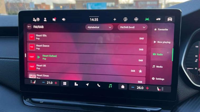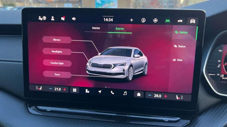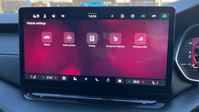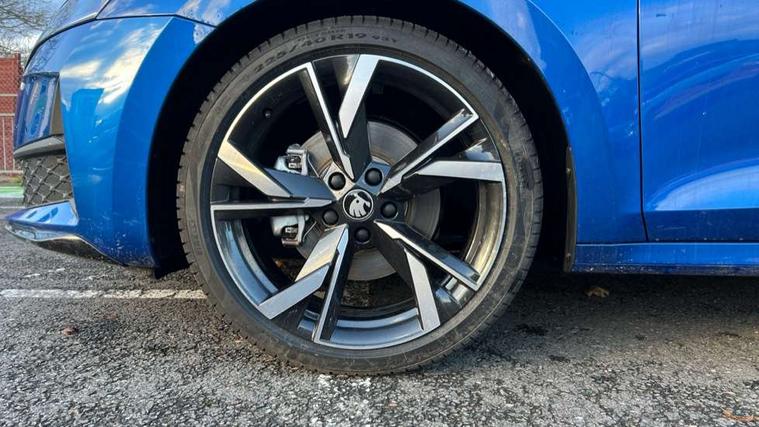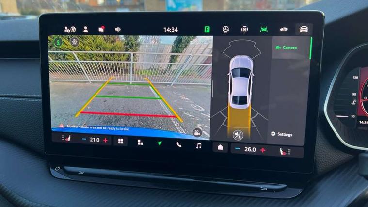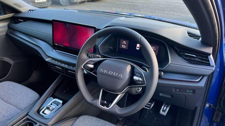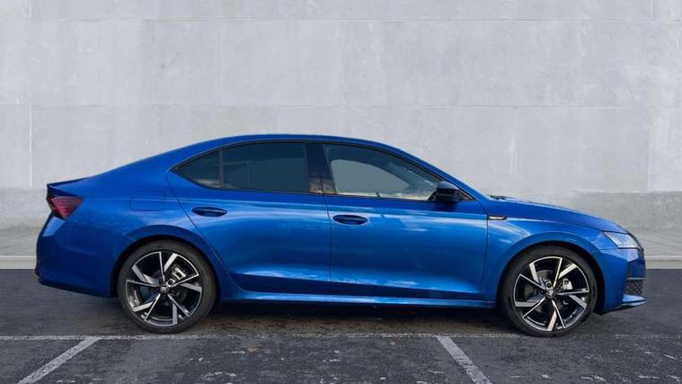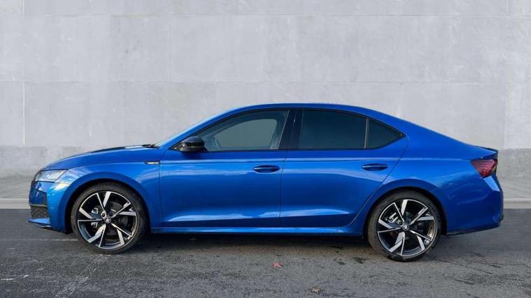 1x USB Typc C port in rear view mirror, 4x USB Type C ports - 2x in front centre console and 2x in rear (45W), Drive mode selection, Driver fatigue sensor, eCall emergency system, Front assist system, Progressive dynamic steering, Traffic sign recognition, Turn Assist, Virtual Cockpit - 10.25" digital display, Voice control system, Wireless charging (15W) with cooling function, Wireless SmartLink for Apple CarPlay and Android Auto, Sports suspension with 15mm lower, 13" touchscreen display with navigation, DAB Digital radio, Aero front windscreen wipers with intermittent function, Auto dimming rear view mirror, Body colour bumpers, Body colour door handles, Chrome strip in lower front bumper, Electric front and rear windows, Exterior gloss black sports styling including front grille, window surrounds, door mirrors and badging, Gloss black diffuser, Gloss black spoiler, Heated rear windscreen, High beam control, High level third brake light, Ice scraper in fuel cap, LED daytime running lights, Logo projection in front doors, Rain and light sensors, Rear fog light on one side and reversing lights on both sides, Rear privacy glass, Rear side wing doors, 12 volt socket in boot, 3 rear headrests, 3 seat bench in 2nd row, 4 foldable roof handles, Aluminium pedals, Boot net programme, Front head restraints, Front sport seats, Heated front seats, Illuminated glovebox, Interior door handles in dark chrome, Jumbo Box storage, Luggage compartment lighting x2 lights, Mechanical rear seat release from boot, Parcel shelf - folding, Single front passenger seat, Steering wheel in black leather with black stitching, Storage compartments in left and right of boot, Sun visors with mirrors, Sunglasses storage, Three spoke leather sports multifunction steering wheel with paddles, Ticket holder, Umbrella in door panel, Unsplit rear bench seat, split folding backrest with centre armrest with cupholder, SportLine Design Selection pack - Octavia, 3x3 point rear seat belts, Alarm with interior monitoring, tilt sensor and back up horn, Curtain airbags and front side airbags, Driver and front passenger airbags, Drivers knee airbag, Electronic parking brake, ESC including ABS, EBV, MSR, ASR, EDS, HBA, DSR, Front central airbag, Hill hold assist, ISOFIX on front passenger seat and outer rear seats, Passenger airbag deactivate switch, Three point seat belts in front and rear, Two tone horn, Tyre pressure monitor, Visual and acoustic seat belt reminder, Warning reflectors in front door, Anti-theft wheel bolts, Keyless entry and start/stop, Remote central locking, Gloss black air vent surrounds,
