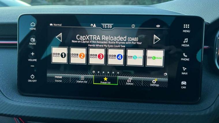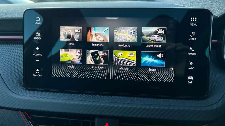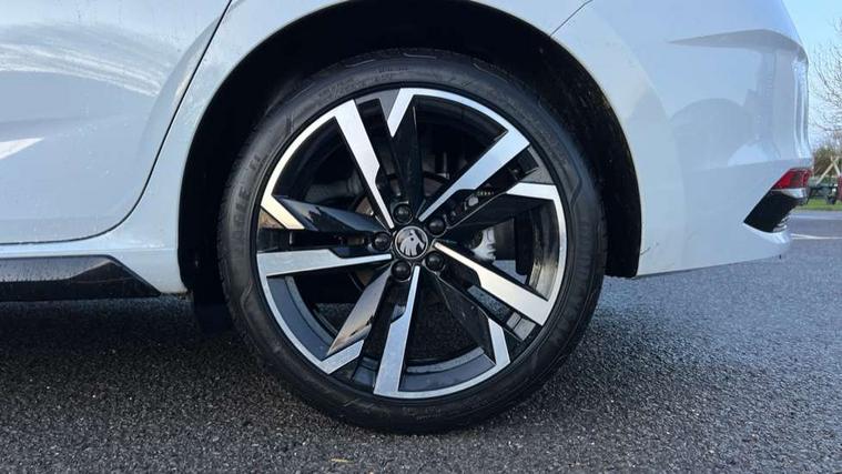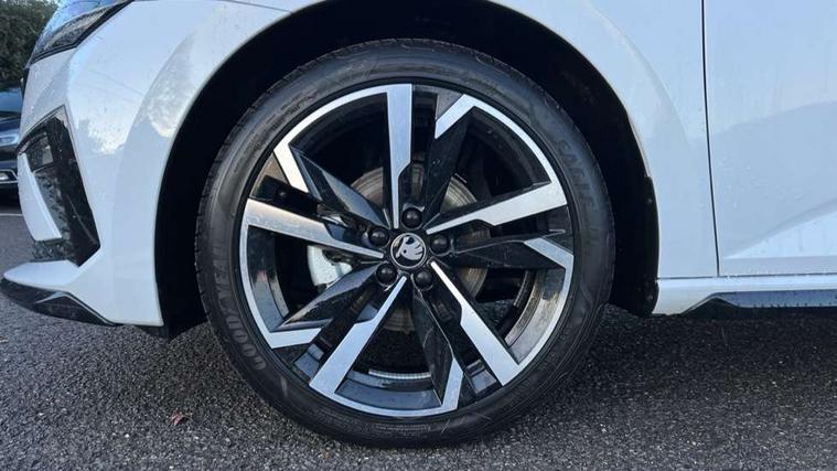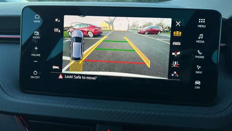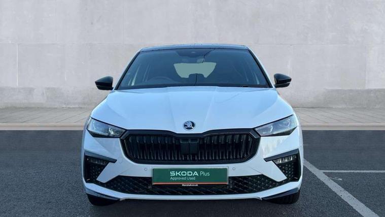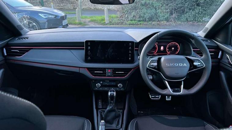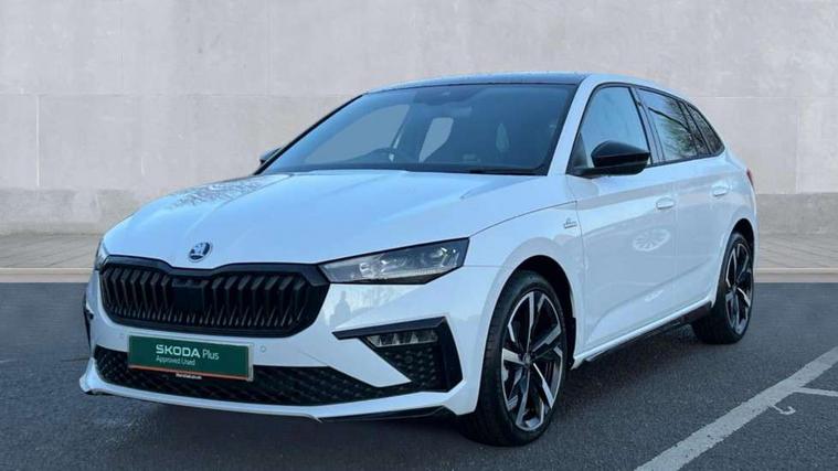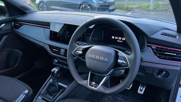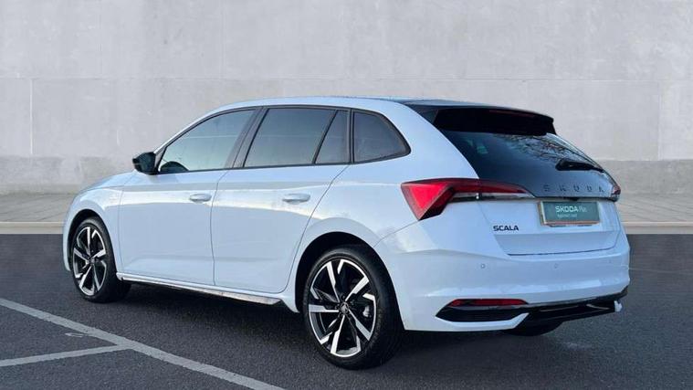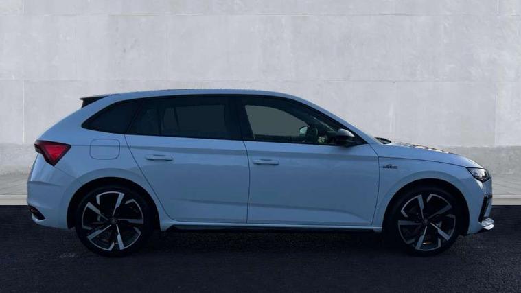 Advanced driver attention and drowsiness monitor, Bluetooth, e-Call (emergency call), Front assist system, PAS, Rear parking sensors, Rear view camera, Speed limiter, Tailgate, Traffic sign recognition, Virtual Cockpit - 10.25" digital display, Voice control system, Wireless smartlink, Drive mode select with Sport Chassis Control and ECO mode, 4 USB C ports, 8 Speakers, 9.2" Skoda navigation display, DAB radio, Auto dimming rear view mirror, Automatic headlight control with manual coming and leaving home feature, Automatic intermittent wipers, Black door mirrors, Black lettering on boot lid, Black radiator grille, Black rear diffuser, Black roof spoiler, Black window frames, Body colour bumpers, Body colour door handles, Extended tailgate glass, Front and rear electric windows, Heated rear window, LED 3rd brake light, LED daytime running lights, LED high beam, LED low beam, Light sensors, Monte carlo plaque, Panoramic glass roof, Privacy glass, Rear LED fog light, Rear side wing doors, Rear wiper, Tinted windows, Unique dark chrome design logo on alloy wheels, 12V socket in luggage compartment, 3 seat bench in 2nd row, Aluminium pedals, Ambient lighting in white/red, Black / White armrest stitching, Black roof headlining, Cargo elements, Chrome inner door handles, Door inserts in art.leather carbon, Driver and passenger sun visors with vanity mirror, Dual zone climate control, Front and rear roof lights, Front centre armrest, Front head restraints, Height adjustable driver seat, Height adjustable passenger seat, Ice scraper, Illuminated glove compartment, Inner circulation control with pollen filter, ISOFIX for front passenger seat, Isofix preparation for back seats, Leather gearknob and handbrake lever, Luggage net under rear parcel shelf, Manual lumbar support for front seats, Monte Carlo cloth upholstery, Net package and top tether hooks in boot space, Pocket on the back of both front seats, incl. mobile phone pockets, Rear centre armrest, Red hotstamping, Single front passenger seat, Skoda lettering on steering wheel, Sport seats, Textile floor mats, Third rear headrest, Ticket holder, Top tether for front passenger seat, Umbrella in driver's door, Light and view plus pack - Scala, 3x3 point rear seatbelts, ABS, Child locks, Curtain airbags and front side airbags, Disc brakes, Driver and front passenger airbags, ESP, Hill hold control, Manual leather parking brake, One tone horn, Passenger airbag switch off function, Seatbelt reminder for driver and front passenger, Tyre pressure monitoring system, Anti theft alarm system with interior monitoring, backup horn and towing protection, Anti-theft wheel bolts, Remote central locking with 2 remote folding keys, SAFE function for remote central locking, Carbon effect decorative inserts, 18" Ursa black diamond cut alloy wheels,