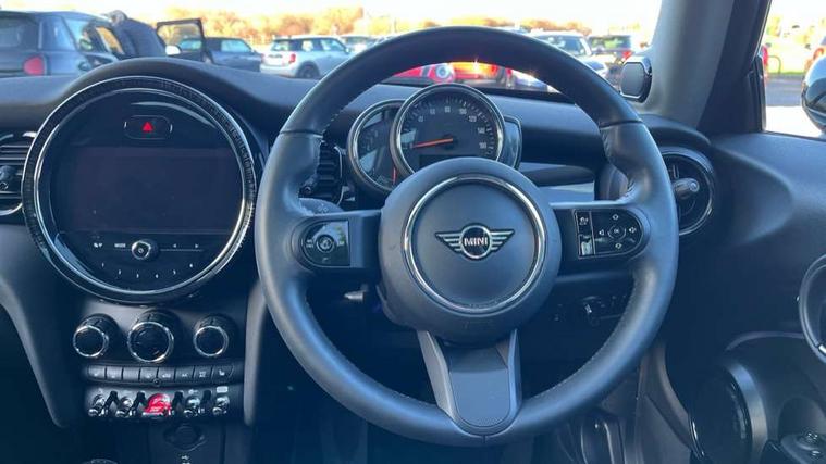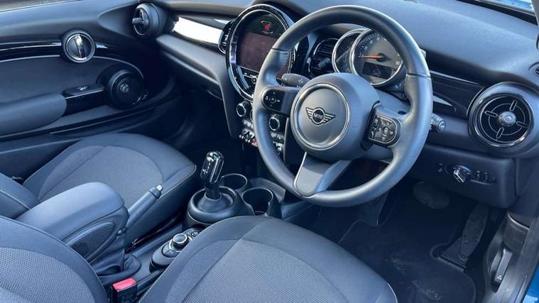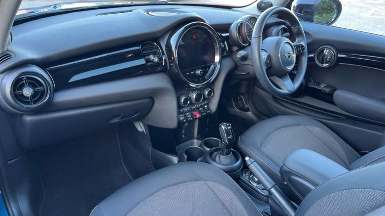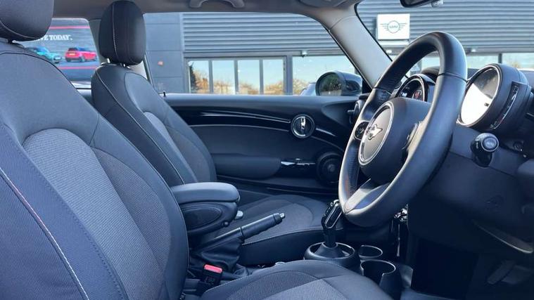Apple CarPlay, Automatic start/stop function with brake energy recuperation, Compatible mobile phone bluetooth with audio streaming, Cruise control with brake assist, Electro-mechanical speed dependant steering assistance, Flexible car sharing preparation, Instrument cluster, Mini E-call, MINI TeleServices, On board computer, Service interval indicator, Double Vanos system, Fully variable valve control, High precision injection, Performance Control, Steptronic transmission with double clutch, 8.8" touchscreen with LED ring, FM tuner and DAB digital radio, 3rd brake light, Automatic headlight activation switch, Body colour fuel filler cap, Chrome border high gloss black slats radiator grille, Dynamic brake lights, Electric front windows, Exhaust tailpipe on left with chrome finisher, Heated rear window, Heated windscreen washer jets, LED headlight with closed ring and daytime driving lights, Metal door sill strips with MINI imprint, Model logo Cooper on right of tailgate, Rain sensor window wipers, Rear fog lights, Rear LED lights with union jack design, Rear window wiper, Side scuttle panel with integrated indicator, Sun/heat protection glass, White indicator lenses, 12V Accessory socket in centre console, 2 seat bench in 2nd row, 4 lashing eyes in luggage compartment, 60/40 split folding rear seat, Ambient lighting, Carbon black colour line - Knee roll and door armrest, Chrome interior highlights, Cupholders, Front and rear head restraints, Front and rear isofix with front passenger airbag deactivation, Front floor mats in velour, Glove compartment, Height and length steering column adjustment, Interior lighting with 12 different colours across the dashboard, underneath door bezel with illuminated laser-engraved design on central display, Leatherette gearshift lever and handbrake gaiters, LED reading lights, vanity mirror lights, front foot well light and spotlight on front seats, Manual air conditioning, Mechanical seat adjustment - forward/back & backrest for front seats and driver seat height adjust, Multifunction steering wheel, Passenger seat height adjuster, Satellite grey headlining including grab handles and clothes hooks, Single front passenger seat, Sport leather steering wheel with speed limiter and audio/communication controls, Storage compartments in doors, Sunvisors with vanity mirrors, 3 point seatbelts on all four seats, 6 Airbags - front, side, head and seat belt tensioners, Anti-lock braking system (ABS), DSC - Dynamic Stability Control, Front and rear disc brakes, Single tone fanfare horn, Tyre pressure monitoring system, Alarm system with tilt sensor, monitoring doors, bonnet interior and tailgate, Electronic vehicle immobiliser, Start/stop toggle with keyless go, Piano black interior trim, Tool kit, Tyre repair kit,