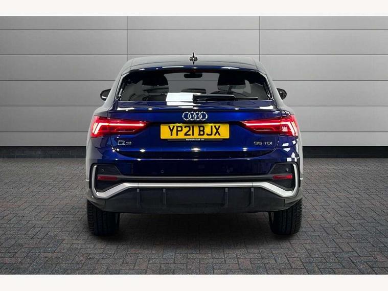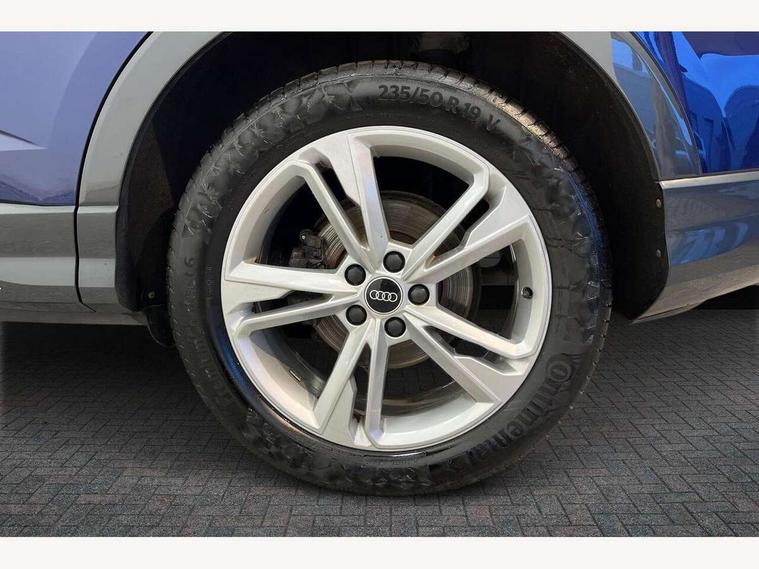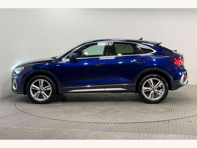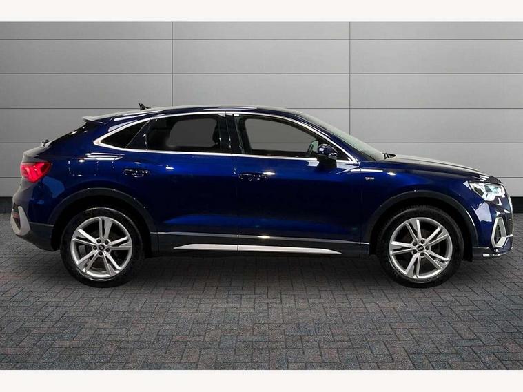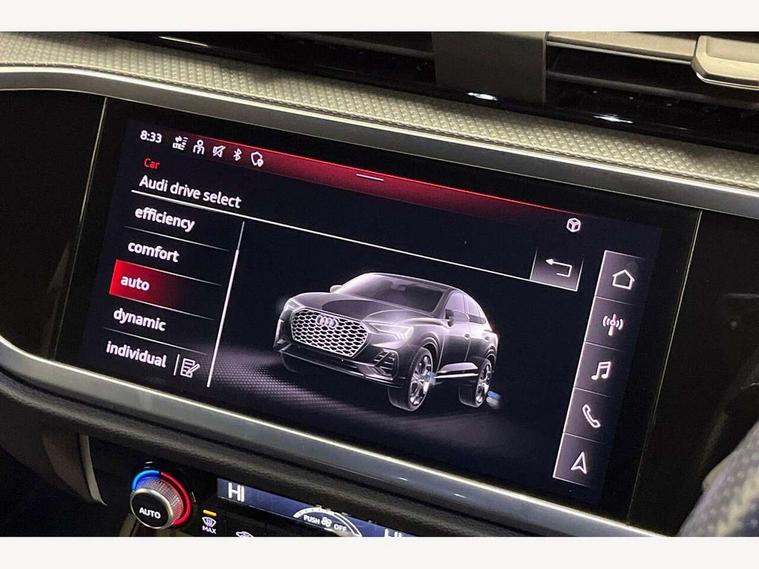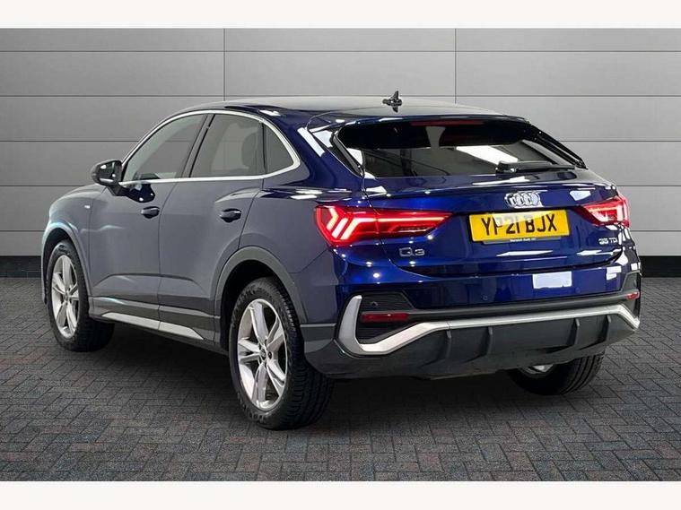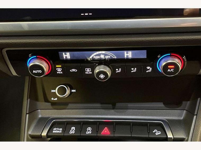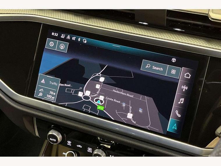 Audi connect safety and service (e-call), Audi drive select, Audi lane departure warning, Audi smartphone interface includes wireless Apple carplay/Android Auto, Audi Virtual Cockpit - 10.25" display, Bluetooth interface, Camera based traffic sign recognition, MMI Navigation Plus with high resolution 10.1 inch touchscreen colour display, Power operated tailgate, Progressive steering, Service interval indicator, Start stop system with recuperation, Voice control system with natural language interaction, Diesel particulate filter, Sports suspension, 2 USB-C ports with charge and data functions, 6 passive loudspeakers, DAB digital radio module, Acoustic windscreen, Aluminium window trim, Auto dimming frameless rear view mirror, Diffuser grille in grained matt black, Diffuser trim in selenite silver, Electrically folding, adjustable and heated door mirrors with integrated LED side indicators and kerb view function for passenger side, Front and rear electric windows, Front fog lights, Front side air inlets in selenite silver, Front underbody protection in manhattan grey paint finish, Grille surround in aluminium silver matt, High gloss black finish B and C pillars, LED headlights with LED daytime running lights and dynamic rear indicator, LED rear lights, Privacy glass dark tinted rear and rear-side windows (from B-pillar backwards), Radiator grille in titanium black with inlay in matt aluminium silver, Rain and light sensors, Rear underbody protection in matt black, S line badges on front wings, Side skirt insert in matt Platinium grey, 12V socket in rear centre console, 40:20:40 folding with manual adjustment for 60:40 forwards/backwards position and backrest angle, Adjustable rear seat bench/backrest with centre armrest and cupholder, Black cloth headlining, Dual zone electronic climate control, Front and rear black floor mats with contrast stitching, Front and rear headrests, Front and rear roof module including reading lights, Front centre armrest, Glove compartment lighting, Height and reach adjustable steering wheel, Illuminated door sill trims with S logo, ISOFIX child seat mounting for front passenger with airbag deactivation and outer rear seat including top tether attachment point for outer rear seats, Luggage compartment light, Manual front seats with height adjustment, Perforated leather gearknob, Stainless steel luggage compartment sill finisher, Stainless steel pedals, Non smoking pack - Q3, 3x3 point rear seatbelts, 6 airbags - Driver, front passenger, curtain and side windows, Audi pre-sense front with pedestrain and cyclist recognition, Electrically operated child locks on rear doors, Electromechanical parking brake, Electronic stabilisation control including ABS, ASR and EDL, Hill descent control, Hill hold assist, Pre sense basic, Seatbelt monitoring, Tyre pressure warning, Warning triangle and first aid kit, Anti theft alarm, Anti theft wheel bolts, Remote central locking, Black dashboard, Dark matt brushed aluminium inlay, Detail dashboard around MMI touch colour display in glass look, black with surround in aluminium look, Leatherette door armrest,