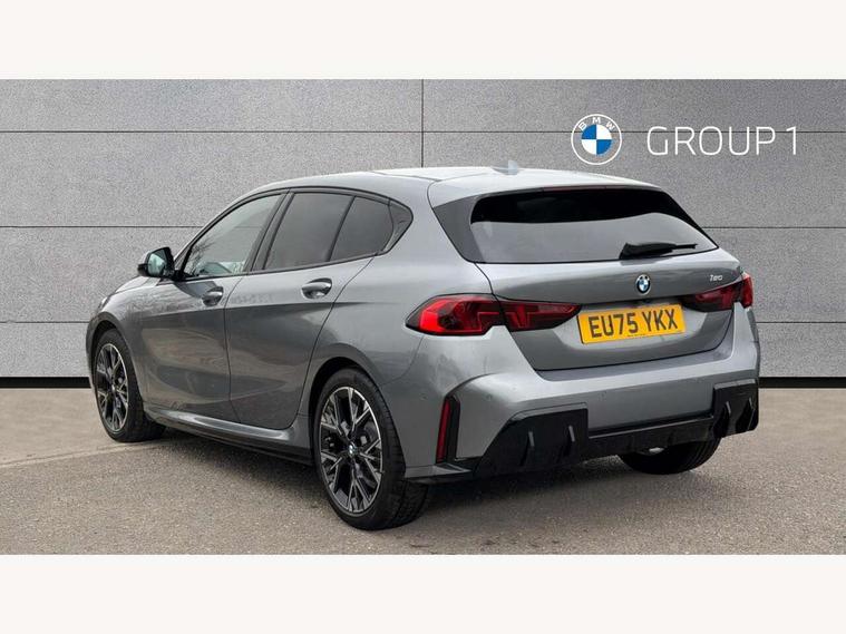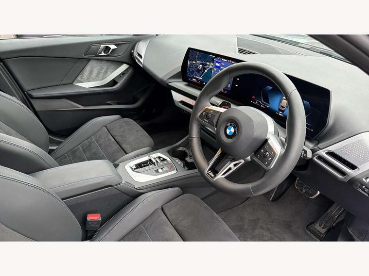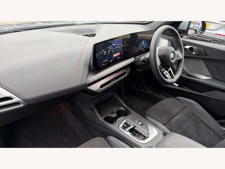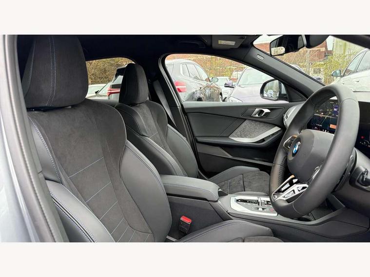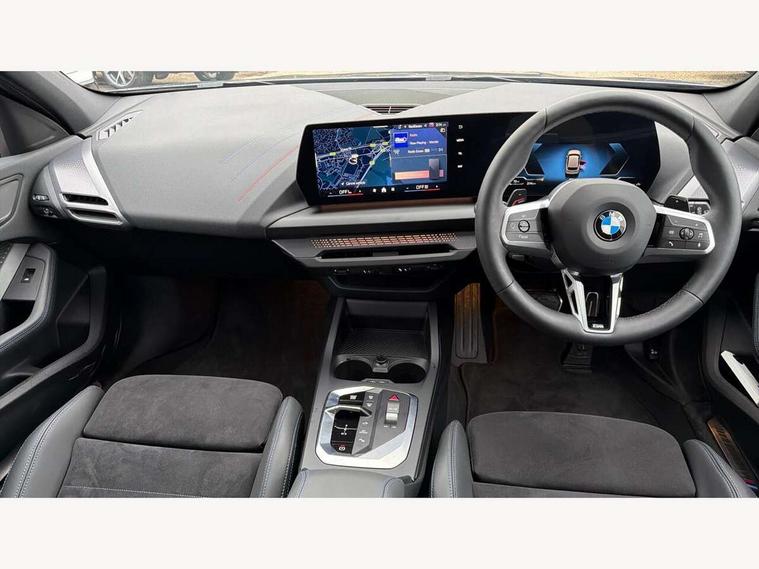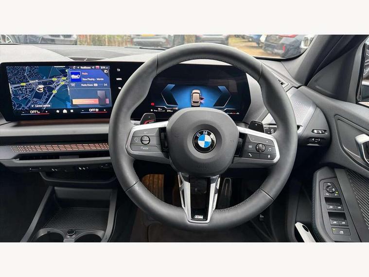Active guard plus, Attentiveness assist, Bluetooth / WiFi interface for wireless connection of mobile terminal devices and audio streaming, BMW ConnectedDrive online services, BMW Live cockpit plus, BMW Teleservices, Check Control warning system for monitoring of lights and door/luggage compartment open warning, Eco pro mode, Electric power steering with Servotronic steering optimised at all speed ranges, Evasion assistant, Flat airvents in instrument panel with adjustable slats, Front and rear parking sensors, Front axle single joint with specific axle kinematics to minimise drive influences on steering + provide increased rigidity agile driving behaviour, Gearshift time display in manual mode, Integrated owners handbook, Left turn warning with brake function, My modes (Personal / Efficient / Sport), Oil sensor for level and grade, On board computer, Optimum shift indicator, Park assist including reversing assistant, lateral parking aid and reversing assist camera, Personal e-SIM, Personal Profile, Pull away assistant, Rigidly mounted rear subframe - Multi link construction with separate spring / damper configuration and excellent driving characteristics, Speed limit Info including no-overtaking indicator, Speed limiter, 49 litre fuel tank, Aluminium lightweight construction, Anti roll bar front and rear, Balancer shaft, Double VANOS twin scroll turbocharging system, Drive Performance Control, Electronic differential lock, Electronic selector lever, High precision injection, M Adaptive suspension, Petrol Particulate Filter, Steptronic transmission with double clutch, Twin tube gas filled shock absorbers with degressive characteristic curve, VALVETRONIC engine management, DAB Digital radio, Auto dimming rear view mirror, Automatic windscreen wipers and automatic headlight, Body colour door handles, Body colour roof trims, Chrome 'M' logo side designation, Chrome exhaust twin tailpipes round 90mm in left, Chrome kidney grille frame with Satin Aluminium struts, Direction indicator side lights in exterior mirrors, Electrically adjustable exterior mirror with mirror adjustment switch on drivers armrest and aspheric on driver side, convex on passenger side, Exterior M sport design elements, Fading support, Folding side mirrors with auto dimming/folding wing mirrors with auto dimming, Follow me home headlights, Front and rear bumper system with replaceable deformation elements, Front and rear electric windows with open and close fingertip control, anti trap facility and comfort closing, Front bumper panel with M specific design in vehicle colour with inserts in black high gloss, Front door sill finishers in black plastic with M designation in metallic look, Green tinted heat protection glazing, Heated rear window, High gloss black exterior mirrors, High gloss shadowline window frame, Recess cover mirror frames and B/C pillar embelisher trim, High level third brake light, Integrated front windscreen with washer jets, LED daytime running lights, LED eyebrow turn indicators, LED front fog lights, LED Headlights, Lightweight engineering, Matt black air guide grilles, Matt black wheel arch trim, Model badge on tailgate right, Nearside reverse light in rear light cluster, Preparation for high beam assistant, Rain sensor, Rear bumper panel with M-specific design in vehicle colour with inserts in black high gloss, Rear fog lights, Rear side wing doors, Rear window wiper, Shark fin antenna, Side sill covers with M specific design in body colour, Trailer stabilisation logic, Visible VIN plate, Welcome lighting, 12V power socket in front centre console with blanking plug, 3 rear seat head restraints, 3 seat bench in 2nd row, 3 spoke sports leather steering wheel with black leather and stitching, pearl chrome decorative finish, specific M Badge, Anthracite front and rear floor mats, Anthracite headlining, Black boot net with lashing eyes, Cargo function on 2nd seat row, Child seat ISOFIX attachment for two outer rear seats and front passenger seat with anchorage points, Conditioned based service, Driver and front passenger backrest net on rear, Driver and front passenger seat heating, Driver side folding compartment in instrument panel, Folding rear clothes hook, Footrest and pedals in black plastic, Four grab handles integrated in roof lining, Front and rear door pockets with bottle holders, Front and rear side armrest integrated into door trim, Front armrest with storage compartment, Gearshift paddles on steering wheel, Glove compartment, Height adjustable front head restraints, Luggage compartment for bag hooks on left and right, foldable luggage compartment liner and four lashing eyelets, Manual adjust steering wheel, Multi-function controls for steering wheel, Rear seat backrest with manual 60:40 split folding with 3 top tether clips integrated on rear of seat panels, Single front passenger seat, Storage compartment in centre console, Storage compartment in luggage compartment, Stowage of the parcel shelf in luggage compartment trim, Sun visors with vanity mirrors and insert tab, Two front centre console cupholders, Type C two USB ports in rear centre console, Upper retaining strap integrated into backrest rear panels, Connected pack professional - 1 Series, Interior lights pack - 1 Series, M Sport exterior styling aerodynamics pack - 1 Series, 2 tone horn, 3 point seatbelts on all seats, front pyrotechnic belt tensioners, stopper and belt force limiters, rear coded belt buckles, Airbags - Front driver/passenger, front and rear curtain head protection, front side, manual deactivation of front passenger airbag, Anti lock braking system (ABS) with brake assist, BMW emergency call, Brake drying, Braking readiness, Child proof locking system in rear door, Comfort modes, Cornering brake control, Crash sensor activating of airbags, Unlocking doors, hazard warning lights, interior light, safety battery terminal, Driver and front passenger seat belt security check, Dynamic stability control + (DSC+), Dynamic