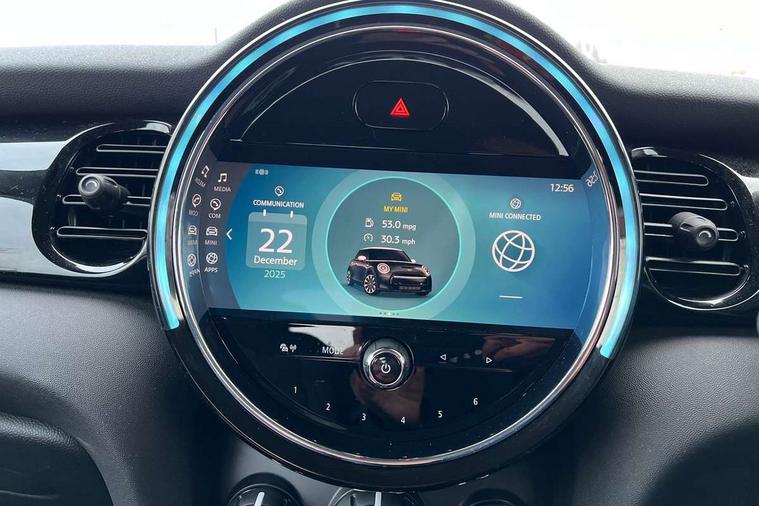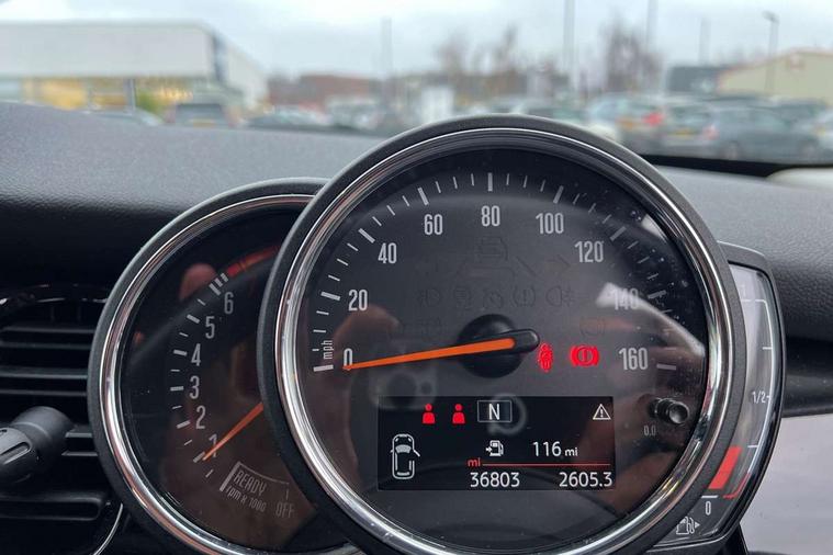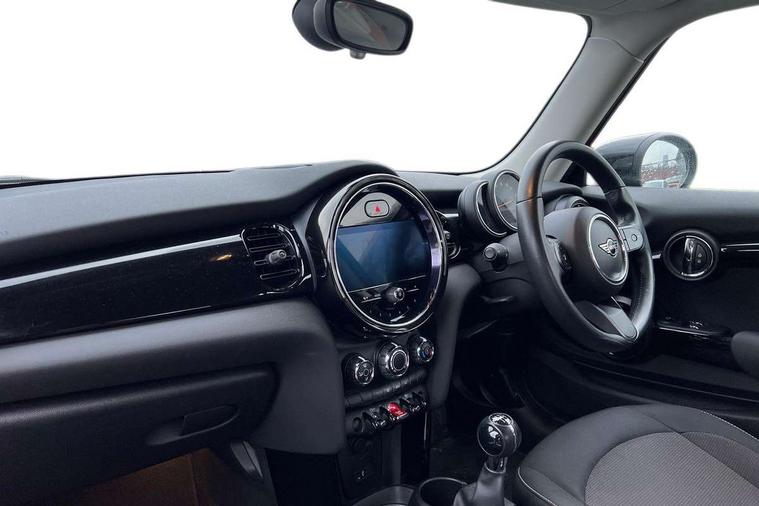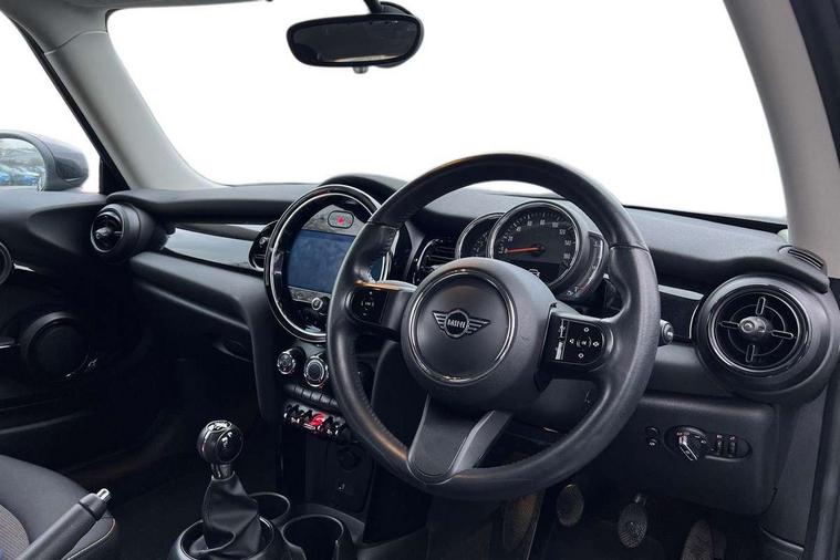 Automatic start/stop function with brake energy recuperation, Compatible mobile phone bluetooth with audio streaming, Electro-mechanical speed dependant steering assistance, Flexible car sharing preparation, Instrument cluster, Mini E-call, MINI TeleServices, On board computer, Service interval indicator, 6 Speed manual transmission including gear change indicator display, Double Vanos system, Fully variable valve control, High precision injection, Performance Control, 8.8" touchscreen with LED ring, FM tuner and DAB digital radio, Automatic headlight activation switch, Body colour fuel filler cap, Chrome border high gloss black slats radiator grille, Dynamic brake lights, Electric front windows, Exhaust tailpipe on left with chrome finisher, Heated rear window, Heated windscreen washer jets, LED headlight with closed ring and daytime driving lights, Metal door sill strips with MINI imprint, Model logo Cooper on right of tailgate, Rain sensor window wipers, Rear fog lights, Rear LED lights with union jack design, Rear window wiper, Side scuttle panel with integrated indicator, Sun/heat protection glass, White indicator lenses, 12V Accessory socket in centre console, 4 lashing eyes in luggage compartment, 60/40 split folding rear seat, Carbon black colour line - Knee roll and door armrest, Chrome interior highlights, Cupholders, Front and rear head restraints, Front and rear isofix with front passenger airbag deactivation, Glove compartment, Height and length steering column adjustment, Leatherette gearshift lever and handbrake gaiters, LED reading lights, vanity mirror lights, front foot well light and spotlight on front seats, Manual air conditioning, Mechanical seat adjustment - forward/back & backrest for front seats and driver seat height adjust, Multifunction steering wheel, Passenger seat height adjuster, Satellite grey headlining including grab handles and clothes hooks, Sport leather steering wheel with speed limiter and audio/communication controls, Storage compartments in doors, Sunvisors with vanity mirrors, Tool kit, Velour floor mats, 3 point seatbelts on all four seats, 6 Airbags - front, side, head and seat belt tensioners, Anti-lock braking system (ABS), DSC - Dynamic Stability Control, Front and rear disc brakes, Single tone fanfare horn, Tyre pressure monitoring system, Alarm system with tilt sensor, monitoring doors, bonnet interior and tailgate, Electronic vehicle immobiliser, Start/stop toggle with keyless go, Piano black interior trim, Tyre repair kit,