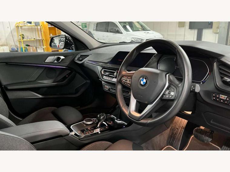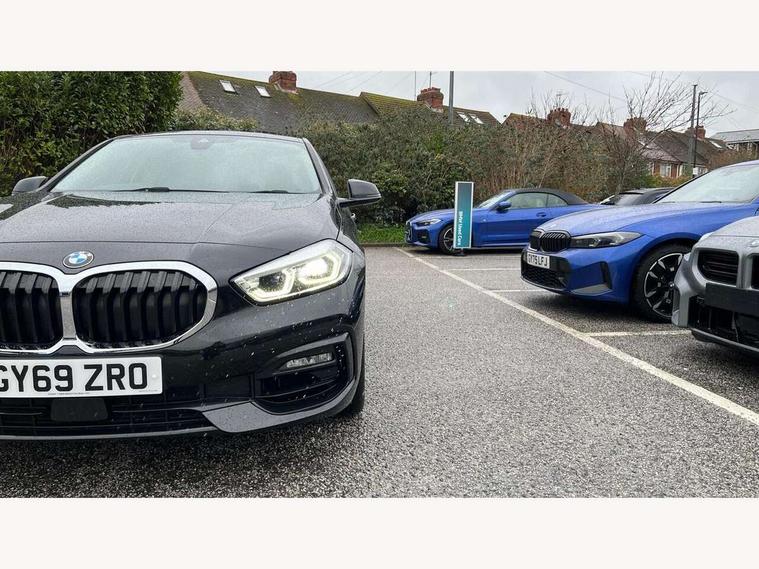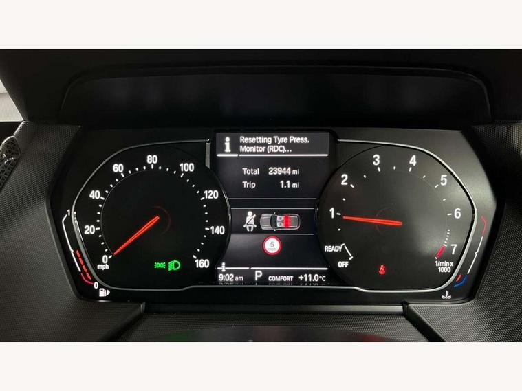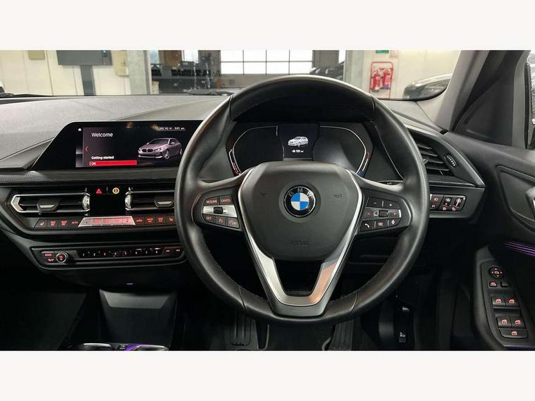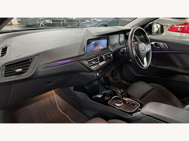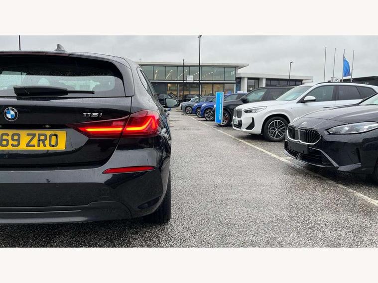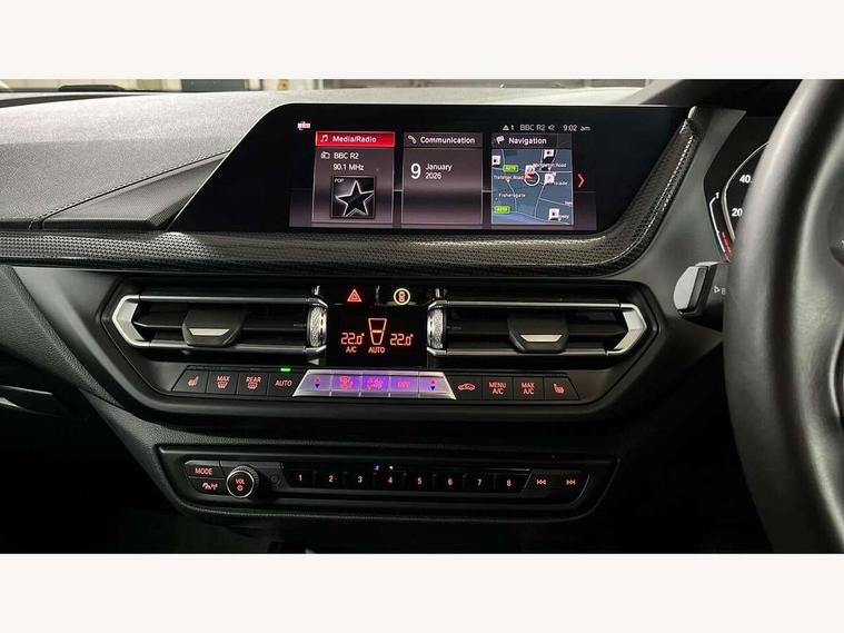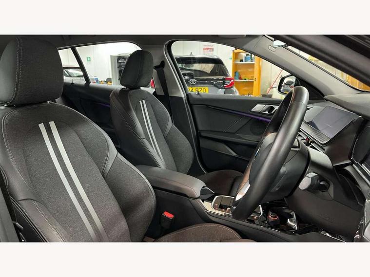 Active guard plus, Attentiveness assist, BMW Online services, BMW Teleservices, Check Control warning system for monitoring of lights and door/luggage compartment open warning, Connected eDrive Services, Eco pro mode, Electric power steering, Integrated owners handbook, On board computer, Optimum shift indicator, Personal Profile, Pull away assistant, Speed limiter, Anti roll bar front and rear, Balancer shaft, Double VANOS, Drive Performance Control, Electronic differential lock, Petrol Particulate Filter, VALVETRONIC engine management, Bluetooth audio streaming, DAB Digital radio, Auto dimming rear view mirror, Body colour door handles, Body colour mirror caps, Chrome exhaust tailpipe in single, round (Exhaust tailpipe, stainless steel - single, round), Chrome kidney grille with extra wide black, high gloss black vertical slats, Direction indicator side lights in exterior mirrors, Fading support, Follow me home headlights, Front and rear electric windows with open and close fingertip control, anti trap facility and comfort closing, Front bumper in Body colour with exclusive Sport air inlets finished in High gloss Black, Front door sill finishers in black plastic with BMW designation, Green tinted heat protection glazing, Headlight beam throw control, Heated, electrically adjustable exterior mirror aspheric on driver side, convex on passenger side, High gloss shadow line exterior trim, High level third brake light, LED daytime running lights, LED front fog lights, Lightweight engineering, Matt black air guide grilles, Matt black roof moulding, B pillar finisher and wheel arch trim, Matt black window frame, Model designation on right side of tailgate, Nearside reverse light in rear light cluster, Rain sensor including auto headlights activation, Rear bumper in Body colour with exclusive Sport design elements finished in High gloss Black, Rear fog lights, Rear window wiper, Shark fin antenna, Visible VIN plate, Welcome lighting, Windscreen wipers with integrated washing jets, 12V power socket in centre console, 2 cupholders in front centre console, 3 rear seat head restraints, 3 spoke sports leather steering wheel in pearl Chrome, Child seat ISOFIX attachment for two outer rear seats and front passenger seat with anchorage points, Conditioned based service, Driver side folding compartment in instrument panel, Folding rear clothes hook, Folding rear seats, Four grab handles integrated in roof lining, Front and rear door pockets, Front and rear side armrest integrated into door trim, Front armrest foldable with integrated storage compartment, Front sports seats with electric side bolster adjustment, Glove compartment, Height adjustable front head restraints, Manual adjust steering wheel, Multi-function controls for steering wheel, Rear seat backrest with manual 60:40 split folding with 3 top tether clips integrated on rear of seat panels, Storage compartment in centre console, Sun visors with vanity mirrors and insert tab, Two zone automatic air conditioning, Velour floor mats, Extended storage pack - 1 Series, Interior lights pack - 1 Series, 2 tone horn, 3 point seatbelts on all seats, front pyrotechnic belt tensioners, stopper and belt force limiters, rear coded belt buckles, Airbags - Front driver and passenger, front and rear head, front side, curtain head protection, Anti lock braking system (ABS) with brake assist, BMW emergency call, Brake drying, Braking readiness, Crash sensor activating central locking release, hazard warning lights, fuel cut off, interior lighting + activation of safety battery terminal clamp, Driver and front passenger seat belt security check, Dynamic stability control + (DSC+), Dynamic Traction Control - DTC, Electrically operated hand brake, Front passenger manual airbag deactivation, Rear child proof door locks, Seatbelt warning, Side impact protection, Tyre pressure monitoring system, Warning triangle and first aid kit, Automatic drive away locking facility, Central locking switch for all doors, fuel filler cap and luggage compartment, Deadlocking function system to all doors, Locking wheel bolts, Remote central locking with two Integrate key, one button for opening and closing all lock, open and close window, button for open luggage compartment, Start/stop button with comfort go keyless engine start and auto start stop deactivation button, Thatcham Cat.1 alarm and immobiliser, Contrast stitching on instrument panel, Illuminated Berlin interior trim, Reduced rolling resistance tyres,