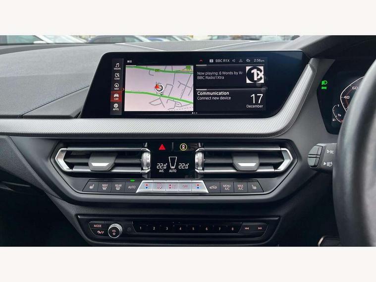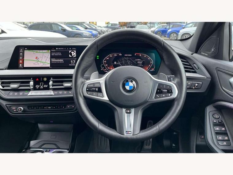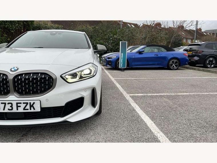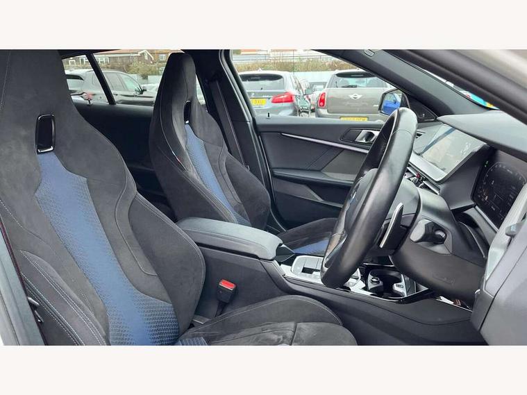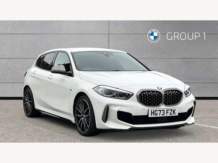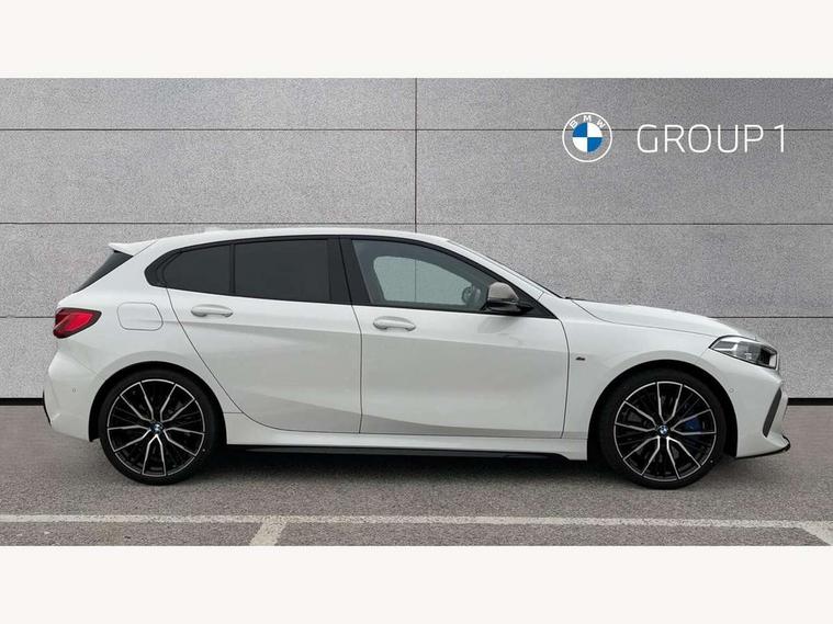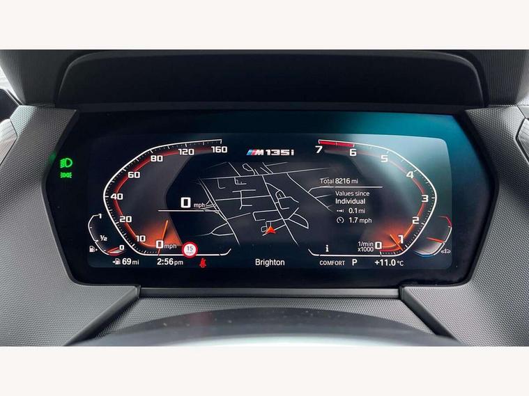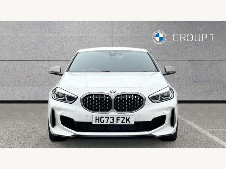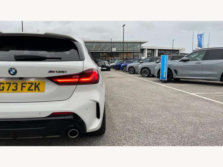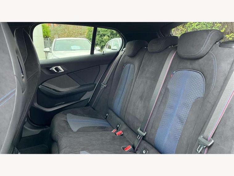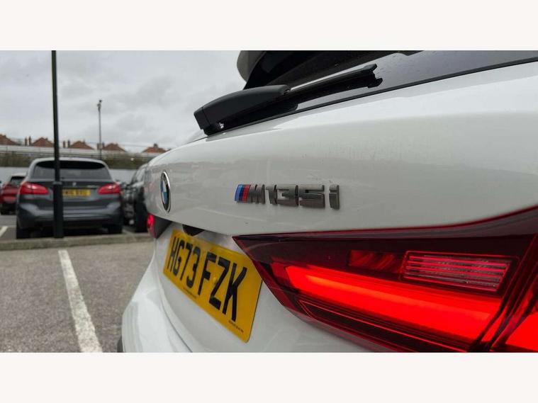 Active guard plus, Attentiveness assist, BMW ConnectedDrive online services, BMW Teleservices, Check Control warning system for monitoring of lights and door/luggage compartment open warning, Cruise control with speed limiter, Eco pro mode, Electric power steering, Electro hydraulically controlled multi-plate clutch transfers drive to rear axle and with power take-off device located on the front differential., Energy efficient operating strategy, Front axle single joint with specific axle kinematics to minimise drive influences on steering + provide increased rigidity agile driving behaviour, Gearshift time display in manual mode, Integrated owners handbook, Lane departure warning system, M Sports steering with M135i xDrive specific settings, Oil sensor for level and grade, On board computer, Optimum shift indicator, Personal Profile, Pull away assistant, Rigidly mounted rear subframe - Multi link construction with separate spring / damper configuration and excellent driving characteristics, Speed limit Info including no-overtaking indicator, Sporty fast gear shifting in sport mode, Aluminium lightweight construction, Anti roll bar front and rear, Balancer shaft, Double VANOS, Drive Performance Control, Eight speed sport automatic transmission with gearshift paddle switches, Electronic differential lock, Electronic selector lever, Engine cover with M performance designation, High precision injection, Larger fuel tank capacity (50 litres), Launch control, M135i specific heavily de-throttled engine intake air guide, M135i specific high-performance cooling package, M135i specific larger turbocharger with integrated divert-air valve, Petrol Particulate Filter, Twin tube gas filled shock absorbers with degressive characteristic curve, VALVETRONIC engine management, Variable, stepless and infinitely adjustable distribution of drive torque between the front and rear axles, xDrive intelligent all wheel drive with M135i specific reinforced components, DAB Digital radio, Auto dimming rear view mirror, Automatic headlight beam throw control, Automatic windscreen wipers and automatic headlight, Body colour door handles, Body colour roof trims, Cerium grey exterior mirror caps, Direction indicator side lights in exterior mirrors, Electrically adjustable exterior mirror with mirror adjustment switch on drivers armrest and aspheric on driver side, convex on passenger side, Exhaust tailpipe, Cerium Grey with bevelled finish - twin, round 100mm, left and right split, Fading support, Folding side mirrors with auto dimming/folding wing mirrors with auto dimming, Follow me home headlights, Front and rear bumper system with replaceable deformation elements, Front and rear electric windows with open and close fingertip control, anti trap facility and comfort closing, Front door sill finishers with M135i designation, Green tinted heat protection glazing, High gloss shadowline window frame, Recess cover mirror frames and B/C pillar embelisher trim, High level third brake light, Integrated front windscreen with washer jets, Kidney grille frame in Cerium Grey with Mesh design, LED daytime running lights, LED eyebrow turn indicators, Lightweight engineering, M logo designation side in cerium grey, M Performance exhaust system with valve control and minimised exhaust back pressure, M Performance specific setup, M Sport spoiler, Matt black air guide grilles, Matt black wheel arch trim, Model designation on electric bootlid includes xDrive designation for M135i xDrive, Nearside reverse light in rear light cluster, Preparation for high beam assistant, Rear fog lights, Rear side wing doors, Rear window wiper, Reinforced crank drive, new pistons and adapted con rods, Shark fin antenna, Trailer stabilisation logic, Visible VIN plate, Welcome lighting, 12V power socket in front centre console with blanking plug, 3 rear seat head restraints, 3 seat bench in 2nd row, 3 spoke sports leather steering wheel with black leather and stitching, pearl chrome decorative finish, specific M Badge, Anthracite headlining, Black boot net with lashing eyes, Cargo function on 2nd seat row, Child seat ISOFIX attachment for two outer rear seats and front passenger seat with anchorage points, Conditioned based service, Driver and front passenger backrest net on rear, Driver and front passenger seat heating, Driver side folding compartment in instrument panel, Folding rear clothes hook, Four grab handles integrated in roof lining, Front and rear door pockets with bottle holders, Front and rear side armrest integrated into door trim, Front armrest, Front M sports seats, Glove compartment, Height adjustable front head restraints, Luggage compartment for bag hooks on left and right, foldable luggage compartment liner and four lashing eyelets, Manual adjust steering wheel, Multi-function controls for steering wheel, Single front passenger seat, Storage compartment in centre console, Storage compartment in luggage compartment, Stowage of the parcel shelf in luggage compartment trim, Sun visors with vanity mirrors and insert tab, Two front centre console cupholders, Two zone automatic air conditioning, Type C two USB ports in rear centre console, Velour floor mats, Additional interior lighting pack - 1 Series M135i, BMW live cockpit professional pack- 1 Series, Connected pack professional - 1 Series, Interior lights pack - 1 Series, M Sport exterior styling aerodynamics pack - 1 Series 135i, 2 tone horn, 3 point seatbelts on all seats, front pyrotechnic belt tensioners, stopper and belt force limiters, rear coded belt buckles, Airbags - Front driver/passenger, front and rear curtain head protection, front side, manual deactivation of front passenger airbag, Anti lock braking system (ABS) with brake assist, BMW emergency call, Brake drying, Braking readiness, Child proof locking system in rear door, City braking function, Comfort modes, Cornering brake control, Crash sensor activating of airbags, Unlocking doors, hazard warning lights, interior light