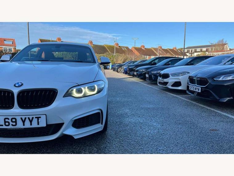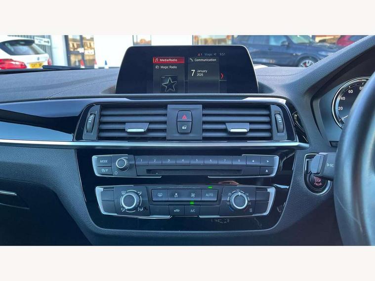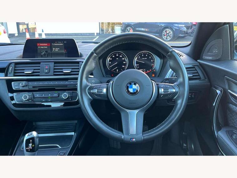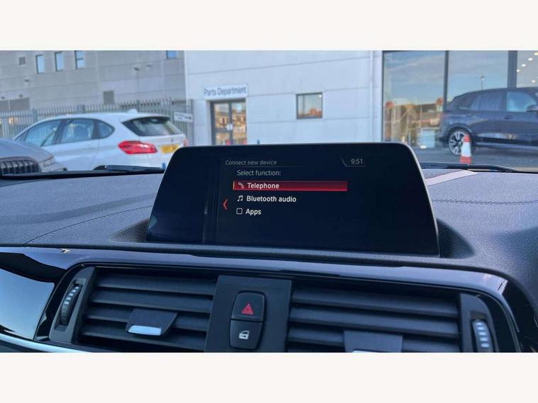 Auto start-stop, BMW Online services, BMW remote services, BMW Teleservices, Door/boot open warning, Front and rear Brake pad wear indicator, Instrument cluster with speedometer with miles per hour read out, tachometer and fuel gauge, Lights on warning by audio warning signal when ignition is switched off, Oil temperature display via on board computer in instrument cluster, On board computer - average speed+fuel consumption, service interval, clock/date, odometer/trip meter, outside temperature display and ice warning, Optimum shift indicator, Personal Profile - automatic lock when driving away selectable, Real time traffic information, Speed limiting function, Traffic message channel (TMC), 8 speed automatic transmission, Battery age recognition function, Drive performance control - ECO PRO, comfort, sport and sport+ modes, Engine cover with BMW roundel twin power turbo designation, Oil dipstick, DAB Digital radio, 2 speed adjustable intermittent wipers with wash/wipe function, Automatic headlight beam throw control, Automatically dimming rear view mirror, Body colour door handles, Body colour door mirrors, Body colour front bumper, Body colour roof mouldings, Chrome single exhaust tailpipe, round, left, Clear lenses direction indicator lights, Darkened rear lights with LED light bars, Daytime driving lights, Direction indicator side lights integrated exterior mirrors, Dynamic brake lights, Electric windows - front and rear, with open/close fingertip control, anti-trap facility and comfort closing, Follow me home headlights, Front air inlet with high gloss black finish, Front and rear bumper system with replaceable deformation elements, Green tinted heat protection glazing, Headlight range control, Heated windscreen washer jets, Heated, electrically adjustable exterior mirror aspheric on driver side, convex on passenger side, High gloss shadow line, High level third brake light, LED Headlights, LED welcome home lights, Lightweight engineering, M aerodynamic body styling, M logo designation in chrome on left and right front wings, Model designation, Model specific design elements, Rain sensor with automatic headlight activation, Rear bumper with high gloss black finish, Rear fog lights, Rear window aerial, Reversing light in rear light cluster, Shark fin roof aerial, Visible VIN plate, 12V power socket in centre console, 12V power socket in passenger footwell, 3 spoke nappa leather steering wheel, Anthracite headlining, Conditioned based service, Front and rear side armrests integrated into door trim, Front door sill finishers with M designation, Front door storage bins, Front floor mats in velour, Front head restraints, Front sliding armrest, Front sports seats with electric side bolster adjustment, Glove box handle with chrome surround, Interior lighting, front centre over interior mirror and rear centre automatic interior light activation when door is opened, Isofix child seat for two outer rear seats, Leather gearknob, Leather handbrake lever, Luggage compartment access via BMW roundel, Manually adjustment steering wheel column, Multi-function controls for steering wheel, Rear coat hooks, Rear folding head restraints, Storage compartment in rear centre console, Two cupholders with sliding cover and inlay mat, 2 rear 3 point safety belts, Active differential brake (ADB), electronic differential lock in DSC-OFF mode, Airbag - Front driver and passenger, front and rear head, front side, curtain head protection, manual deactivation of front passenger airbag possible, Anti lock braking system (ABS) with brake assist, Automatic Stability Control (ASC), BMW emergency call, Brake drying, Brake energy regeneration, Braking readiness, Cornering brake control (CBC), Crash sensor activating central locking release with hazard warning lights and interior lighting + battery safety cut-off, Dynamic brake control, Dynamic stability control + (DSC+), Dynamic Traction Control - DTC, Front pyrotechnic belt tensioners and belt force limiter, rear coaded belt buckles, Hill start assist, Rear brake discs, Seat belt security check for driver and front passenger, Side impact protection, Twin horns, Tyre pressure monitoring with 3 level warning strategy, Ventilated front disc brakes, Warning triangle and first aid kit, Central locking switch for all doors, fuel filler cap and luggage compartment, Check control system for monitoring of lights and door/luggage compartment open warning, Locking wheel bolts, Remote control including integrated key with blue insert, Start/stop button with Comfort Go keyless engine start and auto Start/stop deactivation button, Thatcham category 1 alarm + immobiliser, Reduced rolling resistance tyres,