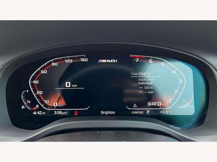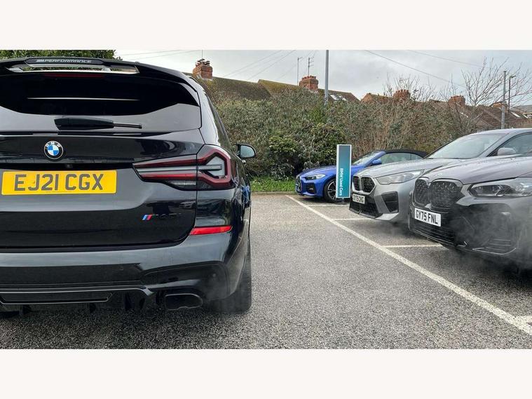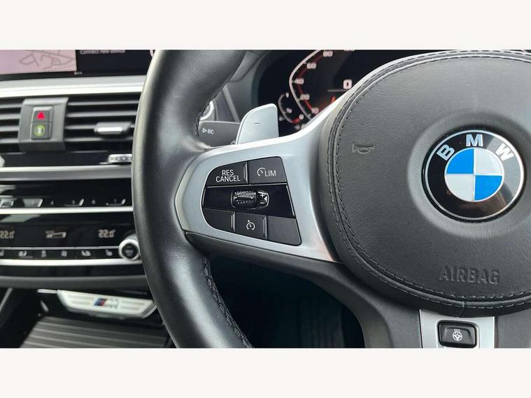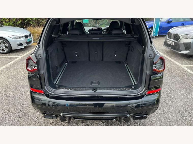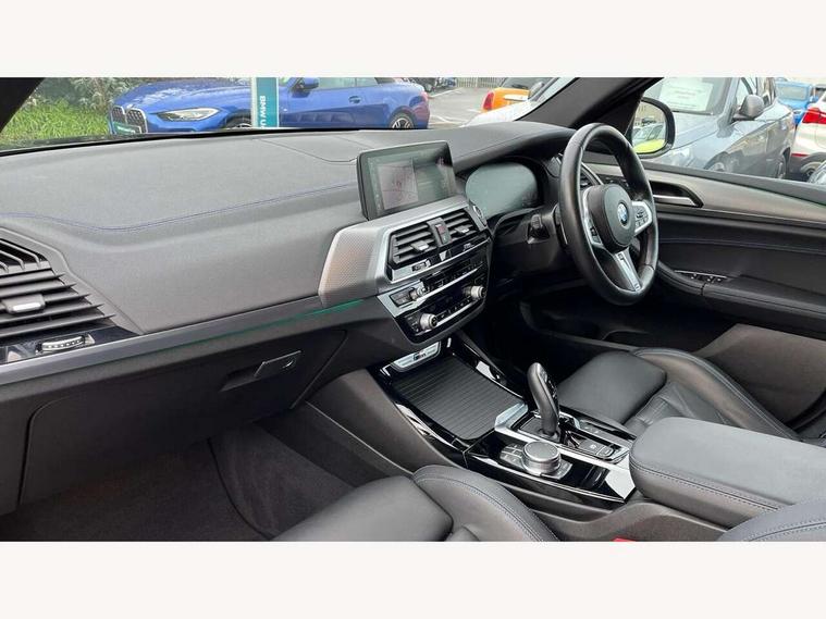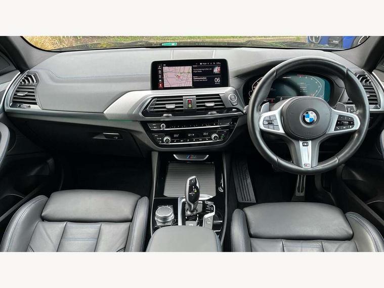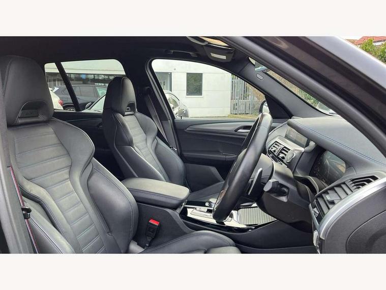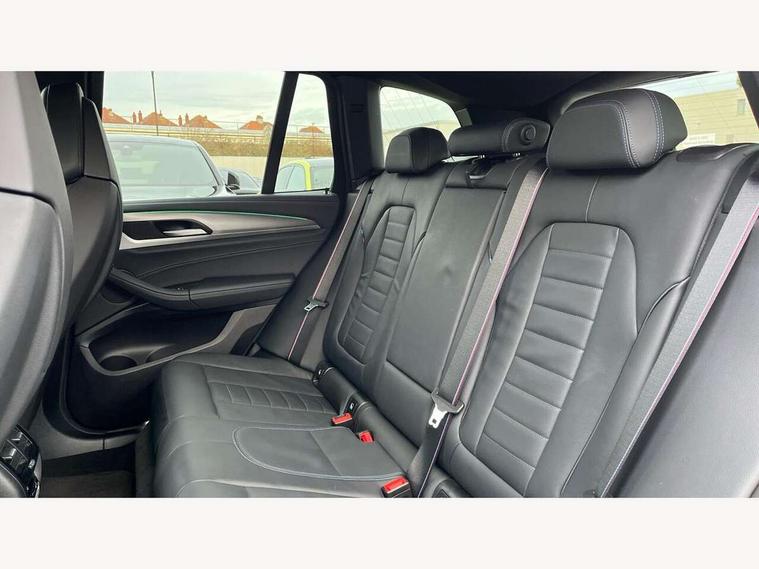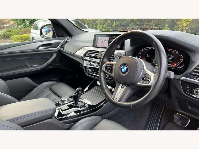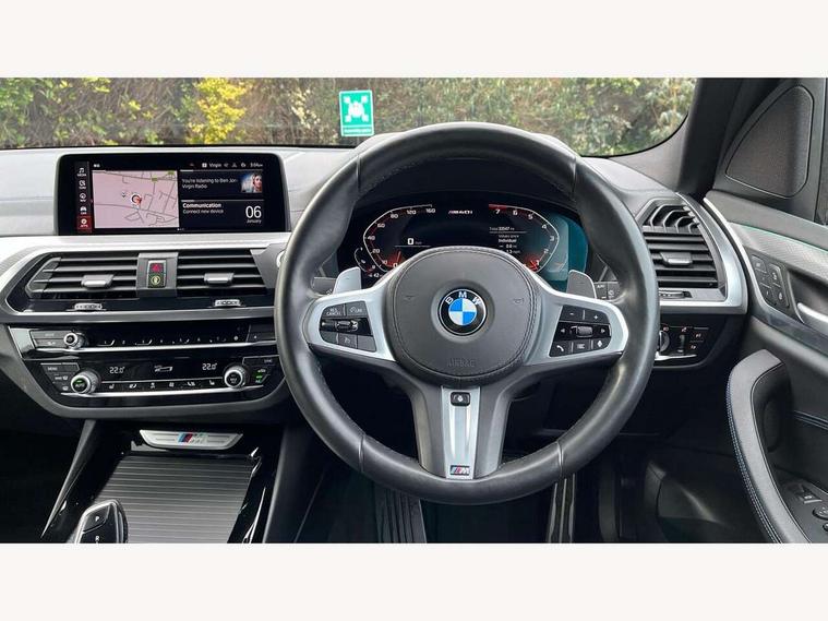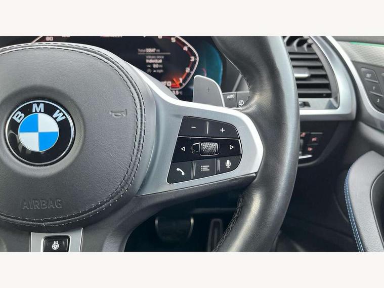 Attentiveness assist, Automatic tailgate operation, Bluetooth hands free telephone connection with USB audio interface + audio streaming, BMW Live Cockpit Professional sat nav system including 10.25" high resolution display and Intelligent Voice Assistant, BMW Online services, BMW Teleservices, Brake pad wear indicator in front and rear, Check Control warning system for monitoring of lights and door/luggage compartment open warning, Control display - 6.5" colour display screen, iDrive Controller with 8 favourite buttons, Lights on warning by audio warning signal when ignition is switched off, Navigation system - BMW Professional multimedia with Hard disc drive (HDD) and 10.25" touch display, Oil sensor for level and grade, warning by check control system, On board computer - average speed+fuel consumption, service interval, clock/date, odometer/trip meter, outside temperature display and ice warning, Optimum shift indicator, Personal Profile - automatic lock when driving away selectable, Semi digital instrument cluster, Stop/start system, Variable sports power steering, Drive performance control with ECO PRO comfort + sport mode, Incorrect fuelling protection, M Sport differential, Multi-link rear suspension, Performance Control, Sport automatic transmission with gearshift paddles, Auxiliary socket for external MP3 player, BMW professional radio/CD/MP3, DAB Digital radio, Acoustic glazing, Black finish on B pillars, Body colour door handles, Body colour roof mouldings, Body coloured bumpers, Cerium grey frame and kidney grille with high gloss black vertical slats, Direction indicator, side repeaters, integrated in exterior mirrors, Dual black chrome quadrilateral exhaust tips, Dynamic brake lights, Electric adjustable heated door mirrors, Exterior air inlets, mirror caps and air breather in cerium grey, Exterior mirrors - electrically folding with anti-dazzle, Fingertip control / anti-trap function on electric window, Follow me home headlights, Front and rear bumper system with replaceable deformation elements, Front and rear electric windows, Green tinted heat insulating glass, Heated windscreen washer jets, Height adjustable headlamps, High gloss black door sill finishers, High gloss black shadow line roof rails, High level 3rd brake light incorporating LED Technology, Interior rear view electrochromatic mirror with automatic anti dazzle function, LED daytime running lights, corona ring style, LED front fog lights, LED Indicators, LED tail lights, Lightweight engineering, M aerodynamic bodystyling, Model designation, Rain sensor including auto headlights activation, Rear wiper, Shark fin antenna, Side exterior M designation badges, Sun protection glass, Visible VIN plate, Welcome lighting, Windscreen wipers with adjustable interval, 12V socket in centre console and luggage area, 3 rear headrests, 3 zone automatic air conditioning, 4 lashing points to secure luggage, Ambient lighting, Anthracite headlining, Anthracite Velour floor mats, Door sill finishers with BMW Individual designation, Driver/passenger sunvisors with ticket holders + illuminated vanity mirrors, Electric adjustable seats with memory function, Foldable boot floor with storage compartment, Four grab handles integrated in roof lining, Front and rear bottle holders integrated into door trim storage compartments, Front and rear side armrests integrated into door trim, Front centre armrest with storage compartment, Front footwell lights, Front/rear courtesy lights with soft on/off dimming, Front/rear reading lights, Height adjustable front/rear head restraints, Illuminated glovebox with lock, Isofix rear child seat preparation, Leather gear knob, Luggage area underfloor compartment, Luggage compartment lighting, M sport leather steering wheel, Parcel shelf removeable and storable under boot floor, Reach and rake adjustable steering column, Rear centre armrest with 2 cupholders, Removable / retractable luggage cover, Slope adjustable rear seats, Storage compartment in rear centre console and front/rear door trims, Through loading system with 40/20/40 split folding rear seat, Toolkit located in luggage compartment, Two front cupholders with removable oddments tray/lid, Vernasca leather upholstery, Connected pack professional - X3, Visibility pack - X3, ABS/EBD, ADB - Automatic Differential Brake, Automatic Stability Control (ASC), Battery safety cut-off, BMW emergency call, Brake assist, Brake drying, Brake energy regeneration, Braking pre-tensioning, Child locks on rear doors, Cornering brake control (CBC), Crash Sensor - activation of central locking release, hazard warning light and interior lighting, Deactivation of fuel pump in the event of a crash, Driver and front passenger front and side airbags with passenger deactivation and ITS front and rear head airbags, DSC+, Dynamic brake control, Dynamic Traction Control - DTC, Electromechanical parking brake, Front seat belts warning, Hill descent control, Hill start assist, Seatbelt security check for front seats, Side impact protection, Three point seatbelts to all seats with front and outer rear pyrotechnic belt tensioners and seat belt force limiters, Two tone horn, Tyre pressure monitoring system, Ventilated front and rear disc brakes, Warning triangle and first aid kit, Central locking switch for all doors, fuel filler cap and luggage compartment, Electronic engine immobiliser, Locking wheel nuts, Remote control including two integrated key - one button for open/close all lockable content, windows and separate button for open luggage compartment, Remote control Thatcham category 1 alarm, Start/stop button with Comfort Go keyless engine start and auto Start/stop deactivation button, Sensatec instrument panel, Low rolling resistance tyres,