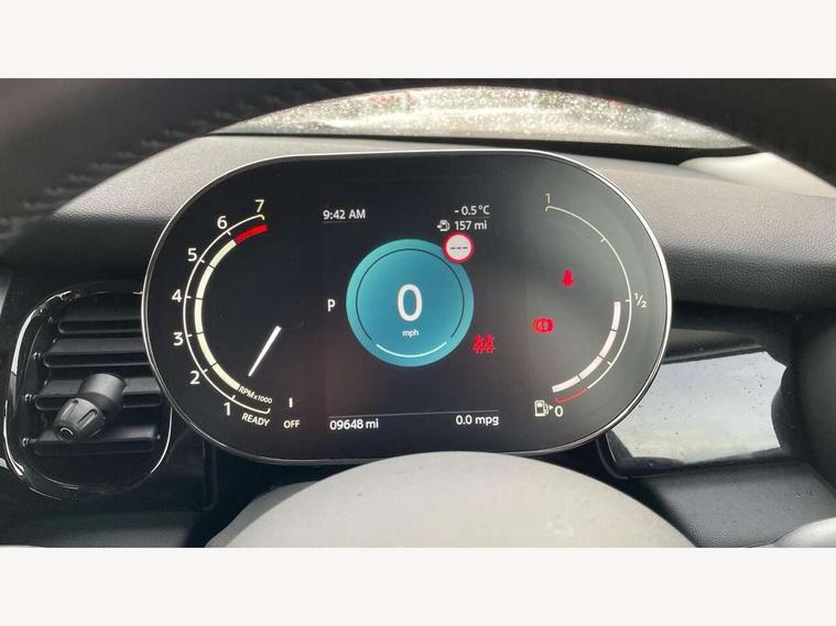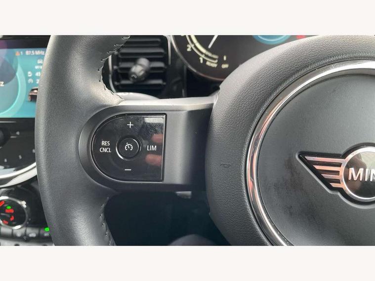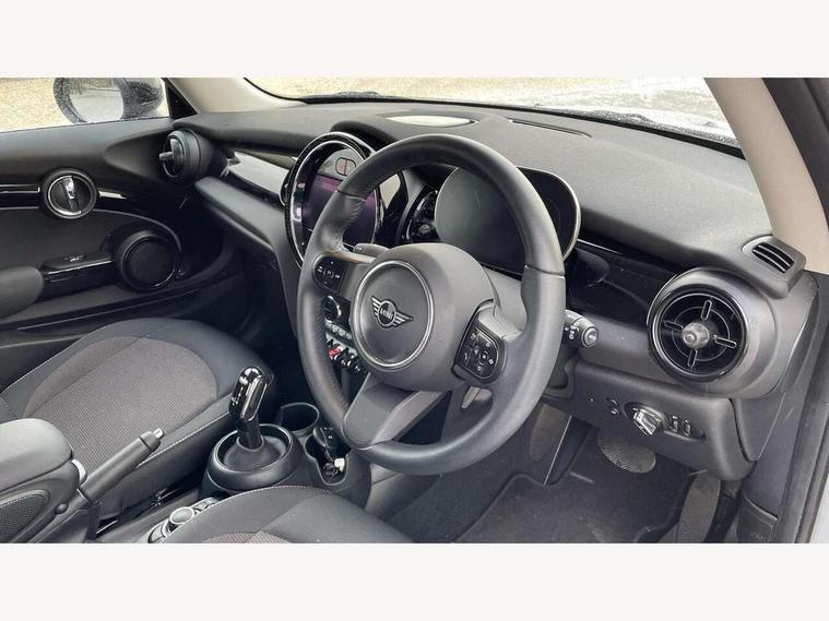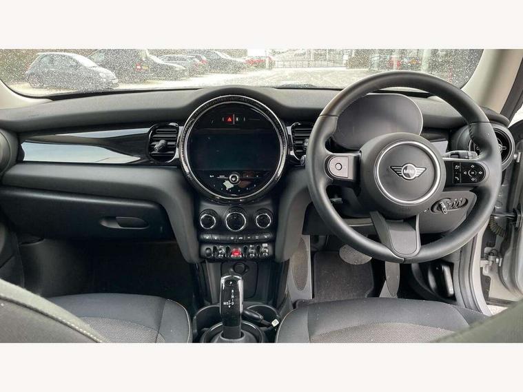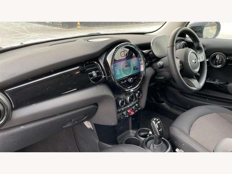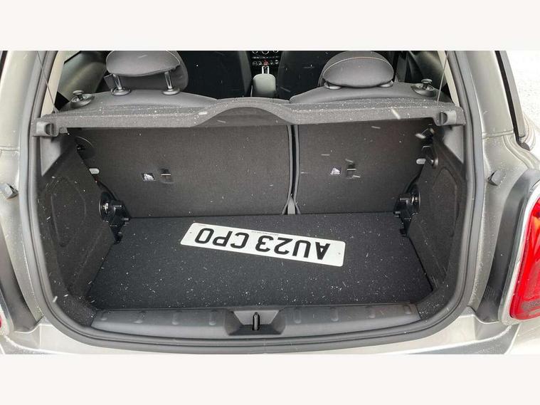 Apple CarPlay, Automatic start/stop function with brake energy recuperation, Compatible mobile phone bluetooth with audio streaming, Cruise control with brake assist, Electro-mechanical speed dependant steering assistance, Flexible car sharing preparation, Instrument cluster, Mini E-call, MINI TeleServices, On board computer, Service interval indicator, Double Vanos system, Fully variable valve control, High precision injection, Performance Control, Steptronic transmission with double clutch, 8.8" touchscreen with LED ring, FM tuner and DAB digital radio, 3rd brake light, Automatic headlight activation switch, Body colour fuel filler cap, Chrome border high gloss black slats radiator grille, Dynamic brake lights, Electric front windows, Exhaust tailpipe on left with chrome finisher, Heated rear window, Heated windscreen washer jets, LED headlight with closed ring and daytime driving lights, Metal door sill strips with MINI imprint, Model logo Cooper on right of tailgate, Rain sensor window wipers, Rear fog lights, Rear LED lights with union jack design, Rear window wiper, Side scuttle panel with integrated indicator, Sun/heat protection glass, White indicator lenses, 12V Accessory socket in centre console, 2 seat bench in 2nd row, 4 lashing eyes in luggage compartment, 60/40 split folding rear seat, Ambient lighting, Carbon black colour line - Knee roll and door armrest, Chrome interior highlights, Cupholders, Front and rear head restraints, Front and rear isofix with front passenger airbag deactivation, Front floor mats in velour, Glove compartment, Height and length steering column adjustment, Interior lighting with 12 different colours across the dashboard, underneath door bezel with illuminated laser-engraved design on central display, Leatherette gearshift lever and handbrake gaiters, LED reading lights, vanity mirror lights, front foot well light and spotlight on front seats, Manual air conditioning, Mechanical seat adjustment - forward/back & backrest for front seats and driver seat height adjust, Multifunction steering wheel, Passenger seat height adjuster, Satellite grey headlining including grab handles and clothes hooks, Single front passenger seat, Sport leather steering wheel with speed limiter and audio/communication controls, Storage compartments in doors, Sunvisors with vanity mirrors, 3 point seatbelts on all four seats, 6 Airbags - front, side, head and seat belt tensioners, Anti-lock braking system (ABS), DSC - Dynamic Stability Control, Front and rear disc brakes, Single tone fanfare horn, Tyre pressure monitoring system, Alarm system with tilt sensor, monitoring doors, bonnet interior and tailgate, Electronic vehicle immobiliser, Start/stop toggle with keyless go, Piano black interior trim, Tool kit, Tyre repair kit,