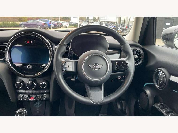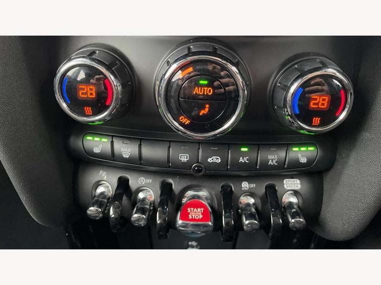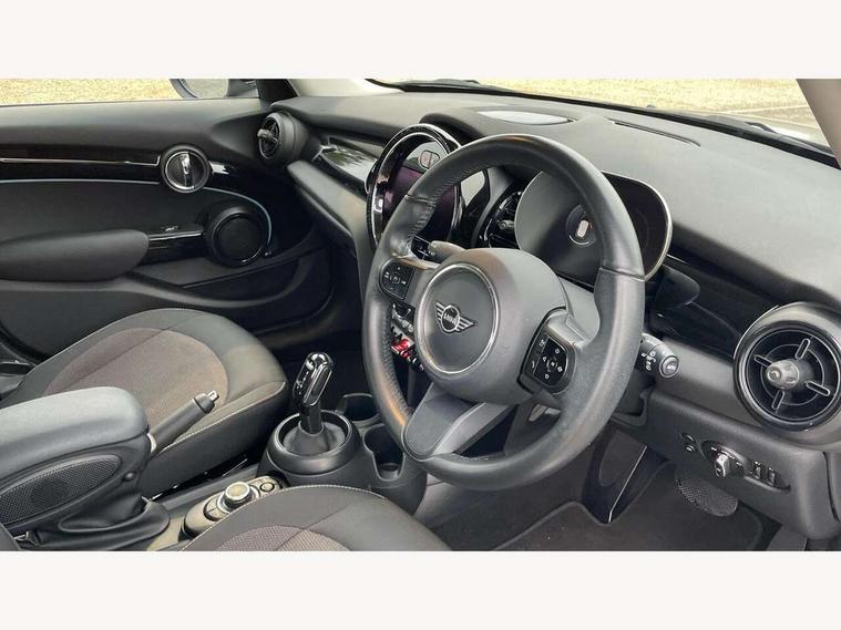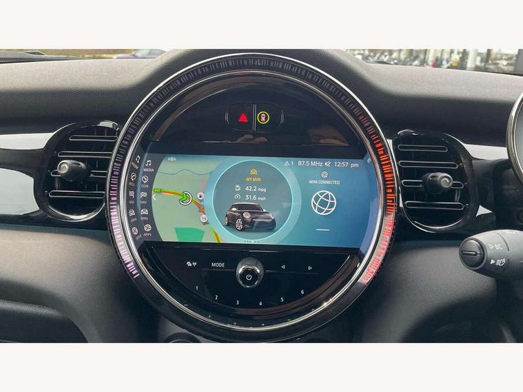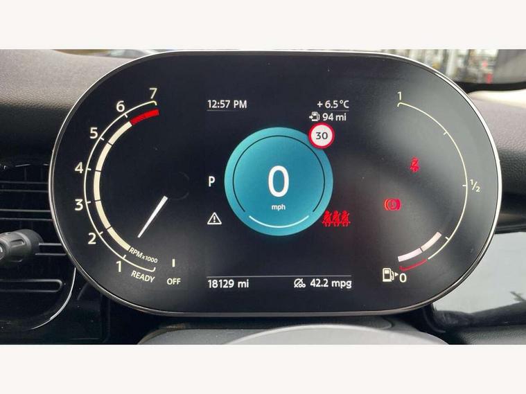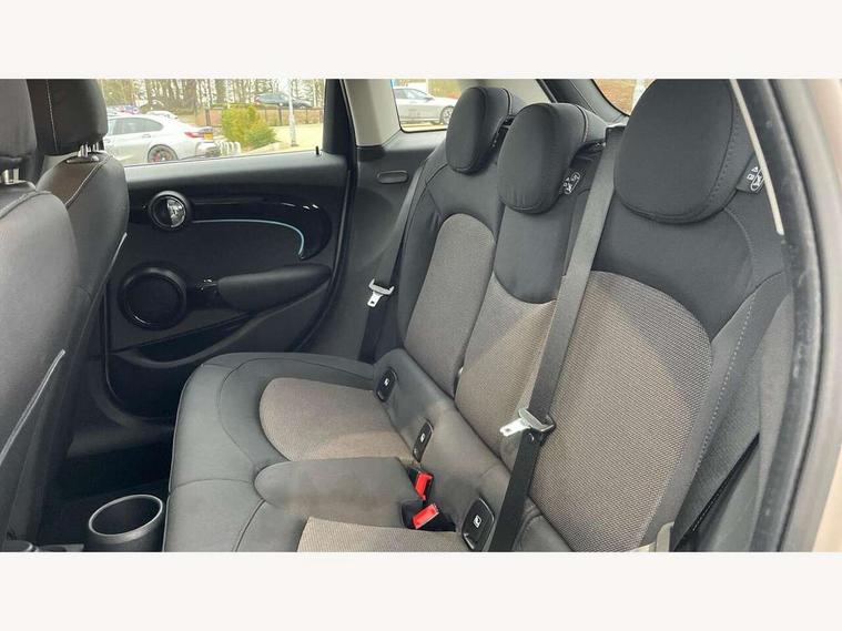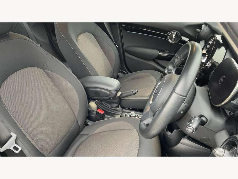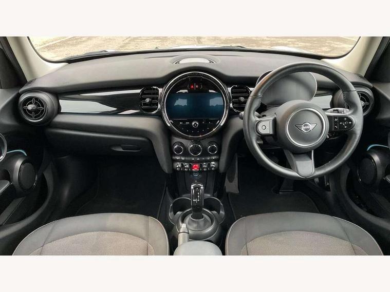 Apple CarPlay, Automatic start/stop function with brake energy recuperation, Compatible mobile phone bluetooth with audio streaming, Electro-mechanical speed dependant steering assistance, Flexible car sharing preparation, Mini E-call, MINI TeleServices, On board computer, Service interval indicator, Double Vanos system, Fully variable valve control, Gear change indicator display, High precision injection, Performance Control, Steptronic transmission with double clutch, 8.8" touchscreen with LED ring, FM tuner and DAB digital radio, 3rd brake light, Automatic headlight activation switch, Body colour fuel filler cap, Chrome border high gloss black slats radiator grille, Dynamic brake lights, Electric front+rear windows, Exhaust tailpipe on left with chrome finisher, Heated rear window, Heated windscreen washer jets, Metal door sill strips with MINI imprint, Model logo Cooper on right of tailgate, Rain sensor window wipers, Rear fog lights, Rear LED lights with union jack design, Rear side wing doors, Rear window wiper, Side scuttle panel with integrated indicator, Sun/heat protection glass, White indicator lenses, 12V Accessory socket in centre console, 3 seat bench in 2nd row, 4 lashing eyes in luggage compartment, 60/40 split folding rear seat, Ambient lighting, Carbon black colour line - Knee roll and door armrest, Chrome interior highlights, Cupholders, Front and rear head restraints, Front and rear isofix with front passenger airbag deactivation, Front and rear velour floor mats, Glove compartment, Height and length steering column adjustment, Interior lighting with 12 different colours across the dashboard, underneath door bezel with illuminated laser-engraved design on central display, Leatherette gearshift lever and handbrake gaiters, LED reading lights, vanity mirror lights, front foot well light and spotlight on front seats, Mechanical seat adjustment - forward/back & backrest for front seats and driver seat height adjust, Multifunction steering wheel, Satellite grey headlining including grab handles and clothes hooks, Single front passenger seat, Sport leather steering wheel with speed limiter and audio/communication controls, Storage compartments in doors, Sunvisors with vanity mirrors, 3 point seatbelts on all five seats, 6 Airbags - front, side, head and seat belt tensioners, Anti-lock braking system (ABS), Child locks on rear doors, DSC - Dynamic Stability Control, Front and rear disc brakes, Hill start assist, Single tone fanfare horn, Tyre pressure monitoring system, Alarm system with tilt sensor, monitoring doors, bonnet interior and tailgate, Electronic vehicle immobiliser, Start/stop toggle with keyless go, Piano black interior trim, Tool kit, Tyre repair kit,
