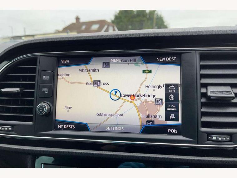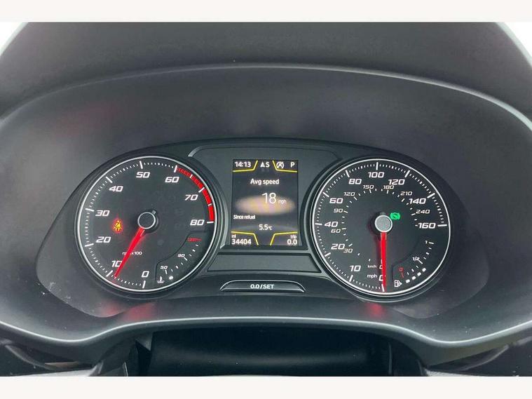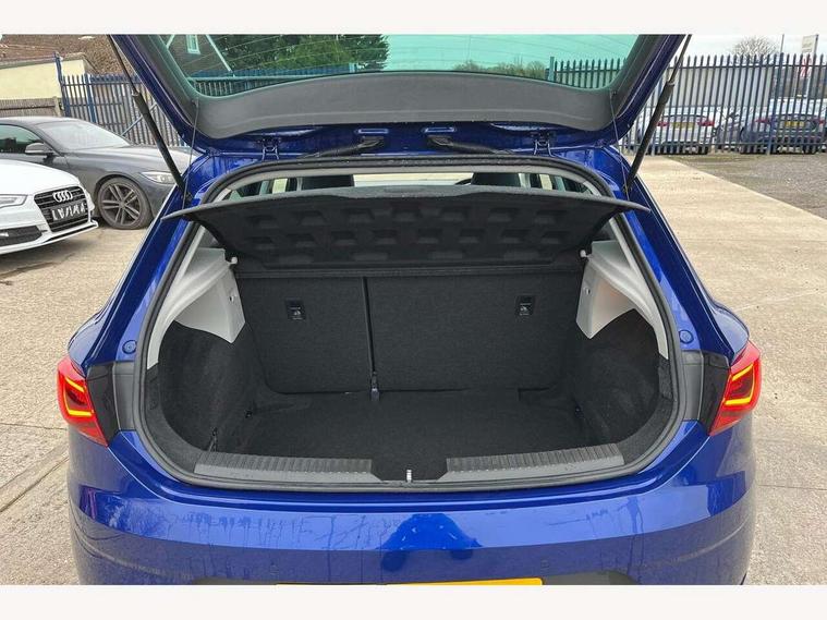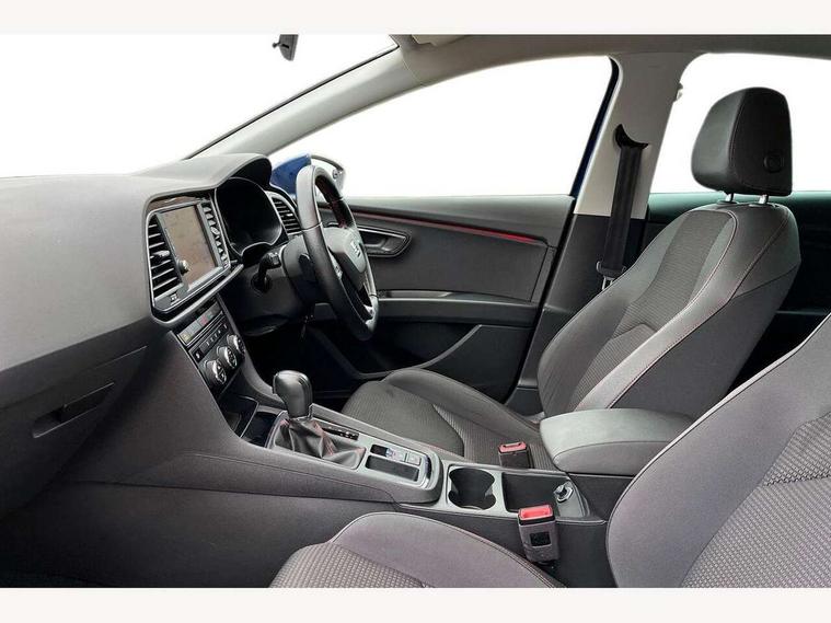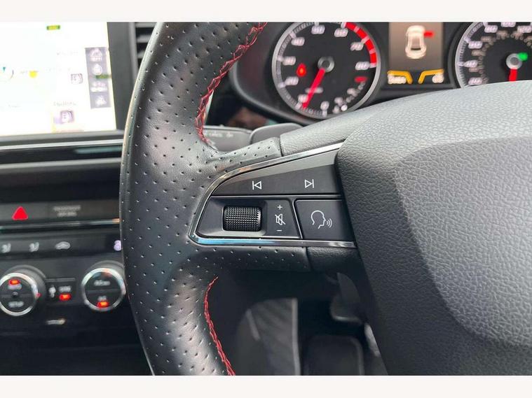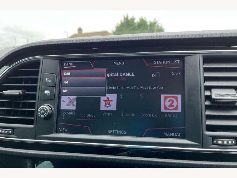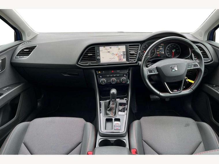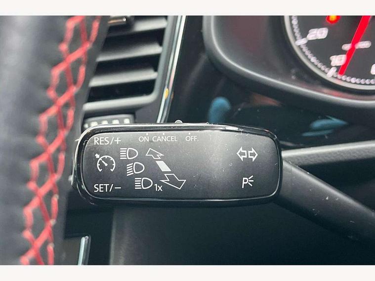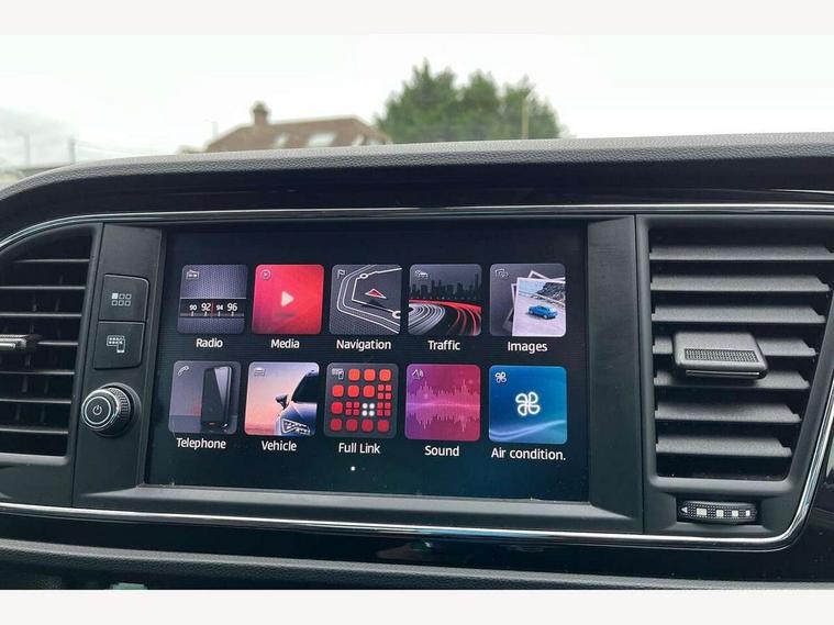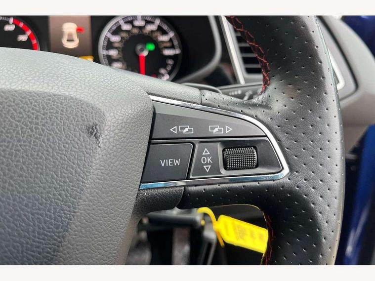 'Lights On' Reminder warning buzzer, 8" touch screen, Bluetooth Handsfree Phone Connection, Low fuel warning light, Outside temperature gauge, Rear parking sensors, Remote fuel flap release, SEAT Drive profile, SEAT logo boot release, Service interval indicator, Trip computer, Voice control system, XDS electronic differential lock, 2 USB ports, 2 USB sockets in rear, 2x SD card slot, Auxiliary input socket, Bluetooth audio streaming, DAB Digital radio, Radio/CD + MP3, Steering wheel mounted audio/phone controls, Aluminium front door sills, Black grille with chrome surround, Body colour door handles, Body coloured bumpers, Body coloured door mirrors, Dark tinted rear windows, Electric adjustable/heated/folding door mirrors, Electric front/rear windows with one touch/auto up/down, Electric headlamp adjustment, High gloss black finish B and C pillars, LED daytime running lights, LED front fog lights, LED Headlights, LED indicators in door mirrors, LED number plate light, LED tail lights, Rear wash/wipe, Reverse activated kerb-view adjustment on passenger's door mirror, Twin exhaust pipes, 12v power point in centre console, 3 height adjustable rear headrests, 60/40 split folding rear seat, Active head restraints, Additional heating and ventilation outlet in rear of centre console, Boot net, Driver seat height adjust, Driver seat lumbar adjustment, Driver/passenger sunvisors with illuminated vanity mirrors, Dual zone climate control, Dust/pollen filter, Front adjustable head restraints, Front armrest with storage box, Front cupholders x 2, Front map reading lights, Front seat and rear pockets, Front sports seats, Front/rear floor mats, Height/reach adjust steering wheel, Illuminated door sills, Illuminated glovebox, Illuminated rear centre console, Instrument lighting with brightness control, Leather handbrake, Luggage tie-down hooks, Passenger seat height adjuster, Passenger seat lumbar adjust, Perforated leather steering wheel with red stitching + gear knob, Rear reading lights, Rear top tether child seat ISOFIX attachment, Steering wheel gearshift paddles, Storage boxes under front seats, 3 point seatbelts on all rear seats, ABS + traction control, Active pedestrian safety system, Child proof door locks, Collision mitigation braking system, Curtain airbags, Driver/Front Passenger airbags, Drivers knee airbag, Electronic parking brake with auto hold, ESP+EBA, Front assist including city emergency braking, Front seatbelt pretensioners, Front Seatbelt warning, Front side airbags, Hill hold control, Passenger airbag deactivation system, Tyre pressure monitoring system, 2 folding remote keys with window open/close function, Engine immobiliser, Locking wheel bolts, Remote central locking + deadlocks, Volumetric alarm with back up horn, Chrome interior trim,