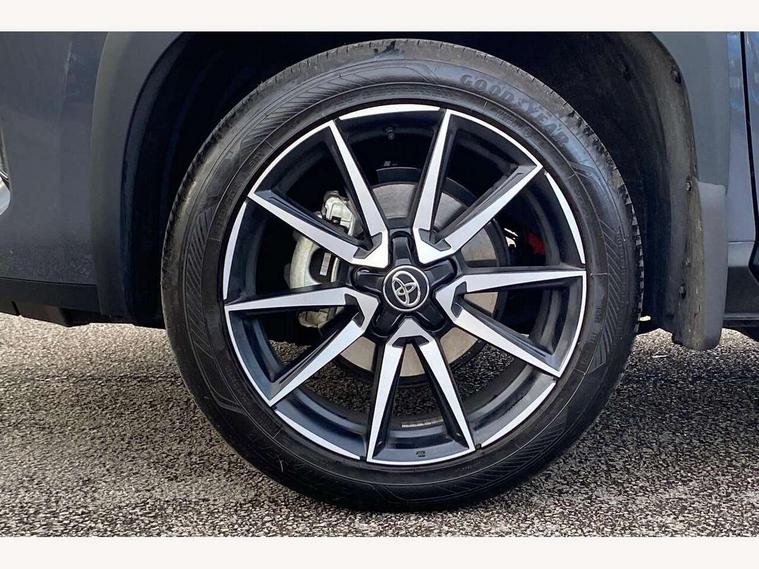 10.5" Multimedia display screen, 10.5" Toyota smart connect+ with navi multimedia system with wireless Smartphone integration incl Apple CarPlay, 12.3" Multi information display screen, Adaptive cruise control, multi info switches on steering wheel, Adjustable speed limiter, Bluetooth connectivity, Color multi-information display, Digital speedometer, Digital tachometer, Drive mode selector, Driver attention alert system, eCall emergency system, Electric power steering, Emergency driving stop system, Full range intelligent adaptive cruise control, Hybrid system indicator, Intersection turn assist, Key reminder warning, Lane trace assist, My T Connected services, Pre-collision system enhanced with emergency steering assist, Reversing camera, Road sign assist - RSA, Static guide lines on reversing camera, Tailgate, Telephone switch on steering wheel, Wireless Mobile Phone Charger, Steering assisted vehicle stability control, 6 speakers, DAB Digital radio, Front USB Type-C connector, Front USB-C device charger, Acoustic windscreen glass, Anti-jam protection on power windows, Auto dimming rear view mirror, Auto high beam [AHB] with on/off switch, Auto intermittent windscreen wipers, Automatic headlights, Automatic headlights cut-off, Automatically retractable door mirrors, Black door moulding, Black lower front grille, Black protection moulding on side doors, Black rear bumper with diffuser, Black rear under run, Black roof rails, Black wheel arch mouldings, Body colour door handles, Body colour front bumper, Electric adjustable heated door mirrors, Follow me home headlights, Front and rear electric windows with auto up/down function, Gloss black upper front grille, GR Sport meshed lower front grille, GR Sport meshed upper front grille, GR sport scuff plates, Headlight cut off reminder, Indicators integrated on door mirrors, Intermittent rear wiper, LED 3rd brake light, LED daytime running lights guide, LED front fog lights, LED front light guide, LED Indicators, LED projector headlights, LED rear lights with sequential indicators, Manual headlight levelling, Noise reduction layer on windscreen, Pre wiring for towing hook, Privacy glass, Rain sensor, Rear roof spoiler, Rear side wing doors, Rear window defogger, Shark fin antenna, 12v power outlet - front, 12V power point in boot, 2x Rear coat hooks, 3 seat bench in 2nd row, 3 Spoke GR Sport leather steering wheel, 40/60 split deckboard, 40:20:40 split folding rear bench seat, Adjustable rear headrests, Adjustable speed limiter switch on steering wheel, Black roof lining, Boot light, Driver and front passenger personal lights, Driver and front passenger Whiplash injury Lesseing seats, Driver and passenger seatback pockets, Dual zone automatic air conditioning, Fabric door trim, Front console box, Front cup holders, Front door pockets, Front head restraints, Front sport seats, Front/rear assist grips, Gear shift indicator, GR sport floor mats, Heated driver and passenger seats, Height adjustable driver's seat, Height adjustable front passenger seat, Hooks for luggage holding belts, ISOFIX child restraint system, Lane departure alert switch on steering control, Leather gearshift, LED centre room light, Light on driver and passenger sun visor, Manual telescopic and tilting steering wheel, Mirror on driver and passenger sun visor, Nanoe-X air purifier, Pollen air filter, Power adjustable lumbar support on driver seat, Rear cup holders, Rear door pockets, Rear head restraints, Remote air-conditioning system, Single compartment glovebox, Single front passenger seat, Soft tonneau cover, Storage box under boot floor, Ultra suede cloth upholstery, Voice recognition switch on steering wheel, White ambient lighting in centre console, White ambient lighting in footwell, White ambient lighting on front doors, 3x3 point rear seat belts, ABS+EBD+Brake assist, Driver and passenger central airbags, Driver and passenger front airbags, Driver and passenger side airbags, Electronic parking brake, Emergency brake light system (EBS), Front seat belt reminder, Hill start assist control (HAC), Passenger airbag on/off switch, Pre-collision system with pedestrian and cyclist detection, Rear door child safety locks, Rear passenger side airbags, Rear seat belt reminder, Traction control, Tyre pressure warning system, Immobiliser, Intrusion alarm, Keyless smart entry with push button start, Power door locks, Power passenger window lock, Remote door lock, Tyre repair kit,