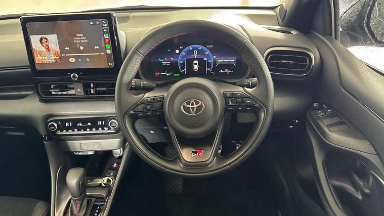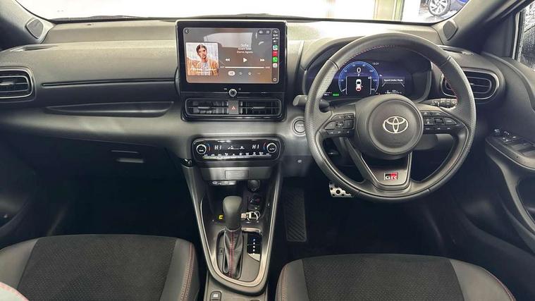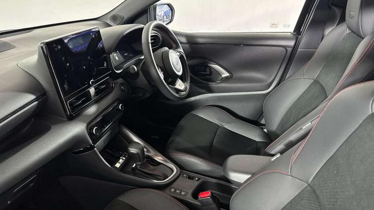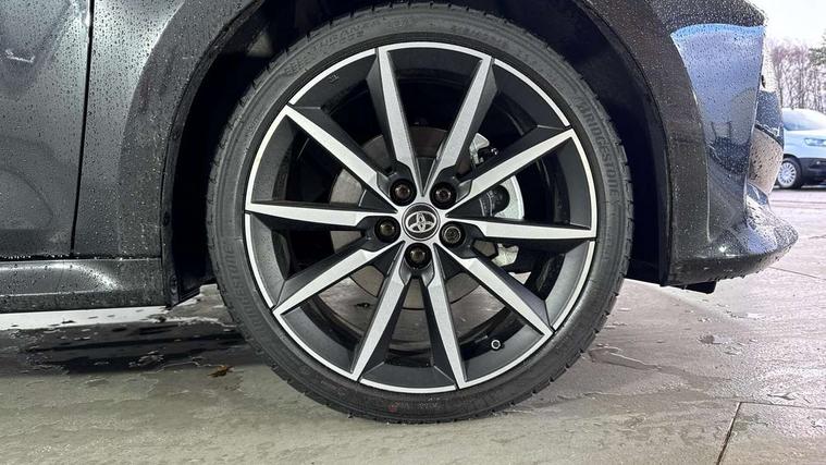 12.3" Digital Combimeter, Adaptive cruise control, Adjustable speed limit with speed warning, Bluetooth connectivity, Colour binocular inspired displays with digital speedometer, E-call, Electric power steering, Hybrid energy display, Lane trace assist, Multi information display switches on steering wheel, Pre-collision system (PCS), Reversing camera, Tailgate, Voice recognition, Wireless charger, Vehicle Stability Control (VSC), 10.5" Toyota smart connect multimedia with wireless smartphone integration incl apple car play and cloud Navigation, 6 speakers, Toyota Touch 3 system with DAB radio, USB connection, Acoustic windscreen glass, Auto high beam assist, Auto windscreen wipers, Automatic headlights, Dark chrome lower front grille, Electric adjustable heated door mirrors, Follow me home headlights, Front auto power windows with anti jam protection, LED daytime running lights, LED front fog lights, LED front light guide, LED Headlights, LED High mounted stop lamp, LED Indicators, LED rear light guide, Manual headlight levelling, Painted chequered front grille with hot stamp in mesh design, Rain sensor, Rear auto power windows with anti jam protection, Rear privacy glass, Rear roof spoiler, Rear side wing doors, Rear wiper, Shark fin antenna, Turning signal integrated indicators in door mirrors, Variable front intermittent wipers, 3 adjustable rear headrests, 3 seat bench in 2nd row, 3 spoke leather steering wheel, 60/40 split folding rear seat, Active headrests, Adjustable boot height, Ambient lighting, Black roof lining, Coat hooks in rear grab handles, Cup holders (2 front & door), Data Communication Module (DCM) connected services, Dual zone automatic air conditioning, Front armrest, Front sport seats, Glovebox, GR embossed in headrests, Height adjustable driver's seat, Height adjustable passenger seat, Isofix seat fixing, Leather gearshift, Map pockets on the backs of the front seats, Pollen filter, Shopping bag hooks, Single front passenger seat, Suede upholstery, Tilt/telescopic steering column, 3 point seatbelts on all rear seats, ABS+EBD+Brake assist, Electronic parking brake, Emergency brake light system (EBS), Front passenger airbag on/off switch, Front seatbelt reminder, Hill start assist control (HAC), Rear child proof door locks, Rear seat belt reminder, Supplemental Restraint System (SRS) 8 airbags: Driver & passenger's airbags, dual side curtain airbags, side impact airbags, front centre airbag, Toyota Safety Sense 3 with over the air updates, Tyre pressure warning system, 2x Master key, Alarm/immobiliser, Keyless smart entry with push button start, Remote AC via MyT, Remote locking via MyT, Remote powered central double locking doors, GR Sport interior styling with accents and exterior styling, Piano black interior trim, Soft touch instrument panel, 18" Black Machined-face, 10 spoke alloys wheels, Space saver spare wheel,