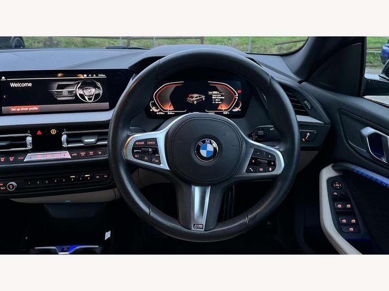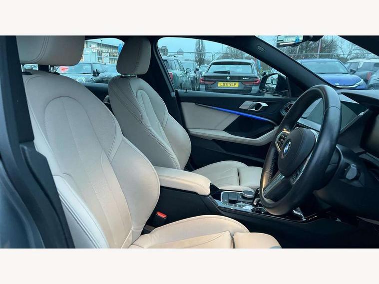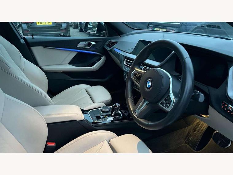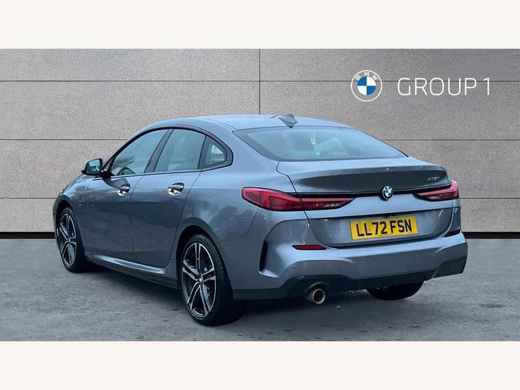 Active guard plus, Attentiveness assist, Auto start-stop, BMW Intelligent Personal Assistant, BMW Live Cockpit Professional with 10.25" high resolution instrument and control display, BMW Online services, BMW operating system with 7.0 mid interface, BMW Teleservices, Check Control warning system for monitoring of lights and door/luggage compartment open warning, Cruise control with braking function, iDrive controller with 7 short cut favourite buttons on centre console, Integrated navigation data with map data via USB +features such as 3D landmarks and micro city models, Integrated owners handbook, Intelligent voice assistant, Lane departure warning system, M Sports steering, On board computer - average speed+fuel consumption, service interval, clock/date, odometer/trip meter, outside temperature display and ice warning, Optimum shift indicator, Personal Profile, Pull away assistant, Speed limiting function, Aluminium lightweight construction, Balancer shaft, Double VANOS, Drive performance control with ECO PRO comfort + sport mode, Dual clutch automatic transmission, Electronic differential lock, High precision injection, M Sport suspension with stiffer spring/damper set-up and vehicle lowered by 10mm + twin tube gasfilled shock absorbers and Anti roll bars, Performance Control, Petrol Particulate Filter, VALVETRONIC engine management, 2x USB Type C ports (for charging and data transfer), 4G LTE Connectivity with hard wied 4G network sim card, DAB digital radio, MP3 players and RDS double tuner, Auto wipers, Automatic headlight beam throw control, Automatically dimming rear view mirror, Body colour door handles, Body colour mirror caps, Chrome 'M' logo side designation, Chrome exhaust single tailpipe, round, Direction indicator side lights integrated exterior mirrors, Electric windows - front and rear, with open/close fingertip control and trap release, Exterior mirrors - electrically folding with anti-dazzle, Fading support, Follow me home headlights, Front and rear bumper system with replaceable deformation elements, Front door sill finishers in black plastic with M designation in metallic look, Heated, electrically adjustable exterior mirror aspheric on driver side, convex on passenger side, High gloss black B pillar finish, High gloss shadow line exterior trim, High level third brake light, LED daytime running lights, LED front fog lights, LED Headlights, Lightweight engineering, Model designation on right side of tailgate, Preparation for high beam assistant, Rain sensor with automatic headlight activation, Rear boot, Rear fog lights, Rear side wing doors, Reversing light in rear light cluster, Welcome lighting, 12V power socket in centre console, 2 cupholders in front centre console, 3 rear seat head restraints, 3 rear seats, 3 spoke M sports design leather steering wheel finished in nappa leather with specific M badge, Anthracite finished floor mats with contrasting surround, Anthracite headlining, Automatic two zone climate control air conditioning, Child seat ISOFIX attachment for two outer rear seats and front passenger seat with anchorage points, Conditioned based service, Driver and front passenger seat heating, Front and rear door pockets including bottle trays, Front and rear side armrests integrated into door trim, Front armrest foldable with integrated storage compartment, Front centre interior light over interior mirror and rear centre automatic interior light when door is opened/ignition switched off or via remote key, Front head restraints, Front passenger seat, Front sports seats with electric side bolster adjustment, Glove compartment, Glovebox with light, Luggage compartment lighting, Manually adjustment steering wheel column, Multi-function controls for steering wheel, Sun visors with vanity mirrors and insert tab, Through loading system with 40/20/40 split folding rear seat, Two lashing eyes, Additional interior lighting pack - 2 Series Gran Coupe, Extended storage pack - 2 Series Gran Coupe, M Sport exterior styling aerodynamics pack - 2 Series Gran Coupe, 2 tone horn, Airbag - Front driver and passenger, front and rear head, front side, curtain head protection, manual deactivation of front passenger airbag possible, Anti lock braking system (ABS) with cornering brake control, BMW emergency call, Brake drying, Braking readiness, City braking function, Crash sensor activating of airbags, Unlocking doors, hazard warning lights, interior light, safety battery terminal, Dynamic stability control + (DSC+), Dynamic Traction Control - DTC, Electrically operated hand brake, Rear brake discs, Rear child proof door locks, Seat belt security check for driver and front passenger, Seatbelt warning, Side impact protection, Three point seat belts on all seats including front belt stopper, pyrotechnic belt tensioners and belt force limiters, Trailer stability control, Tyre pressure monitoring system, Ventilated front disc brakes, Warning triangle and first aid kit, Central locking switch for all doors, fuel filler cap and luggage compartment, Deadlocking function system to all doors, Drive away locking system on all doors and luggage compartment, Locking wheel bolts, Start/Stop button (illuminated) in centre console with keyless engine start and Auto Start-Stop deactivation button, Thatcham Cat.1 alarm and immobiliser, Two remote control key with integrated key - open/close doors/fuel flap/tailgate +1 button for unlock compartment with M design high gloss black inlay, Contrast stitching on instrument panel, 18" Burnished M double spoke bi-colour alloy wheels finished in orbit grey - style 819M, Reduced rolling resistance tyres,