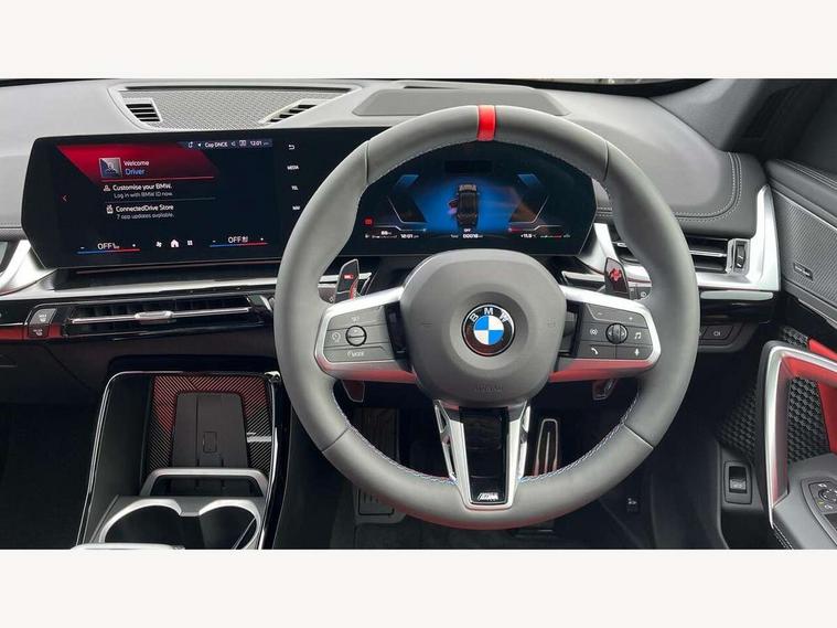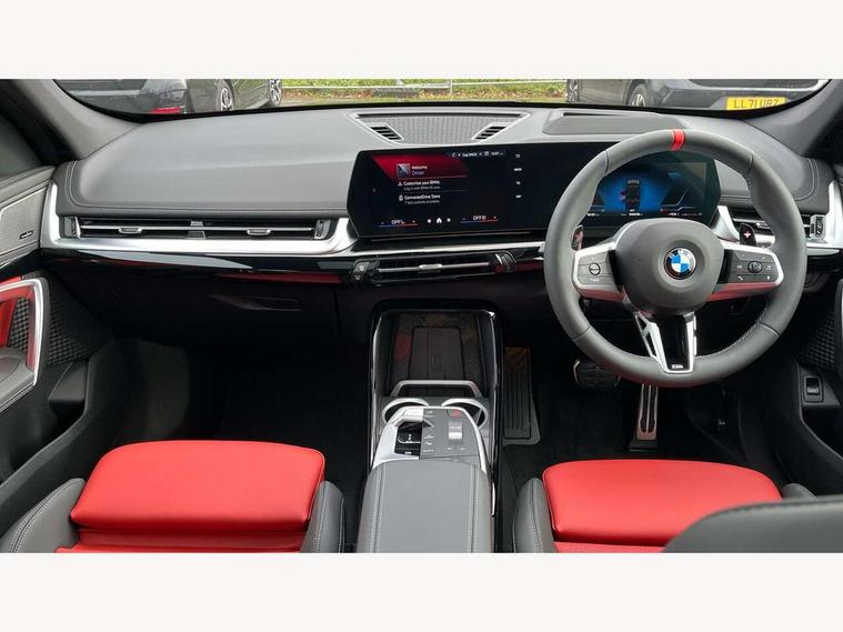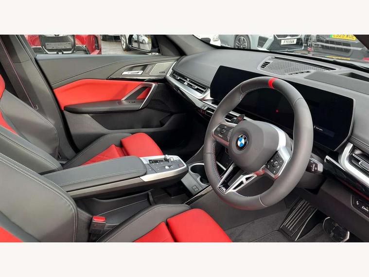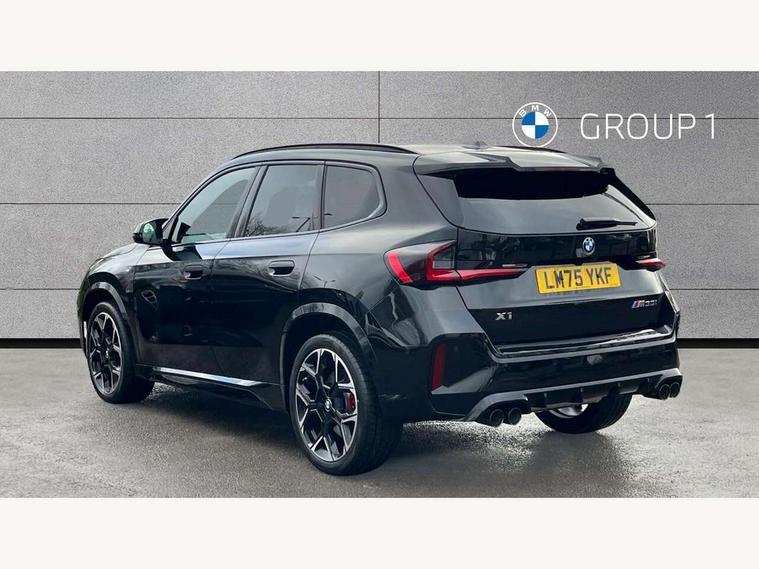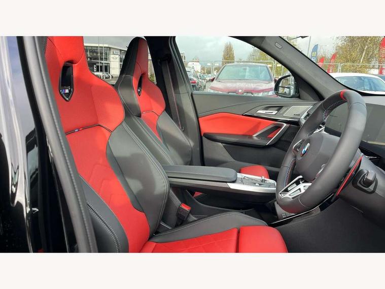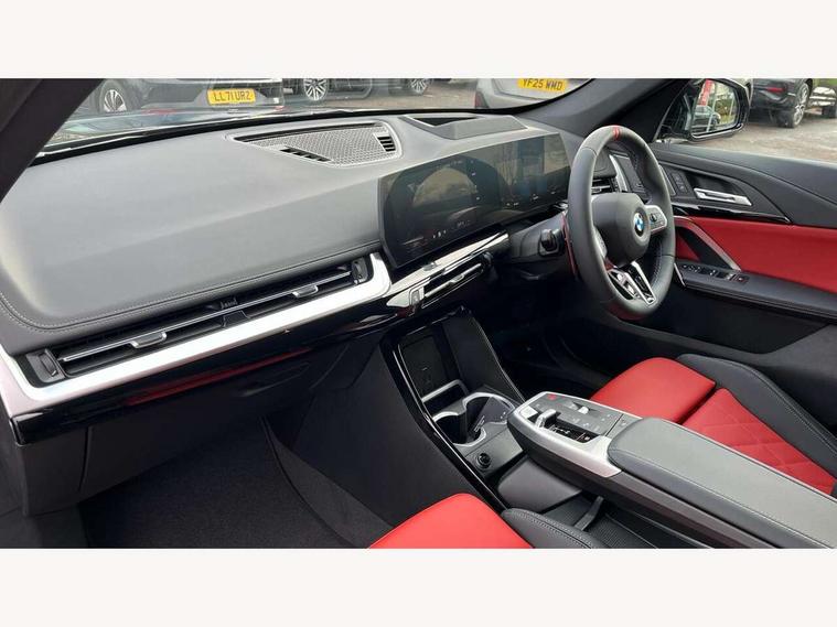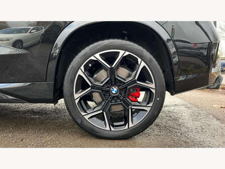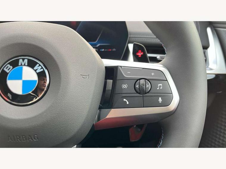 Attentiveness assist, Automatic start/stop function, BMW Live Cockpit Plus with 10.25" instrument cluster and 10.7" display, BMW Operating system 9 with BMW Maps, real-time traffic information, in-car experiences, remote services and smartphone integration, BMW Teleservices, Brake pad wear indicator, Condition based service, Connected eDrive Services, Drive off assistant, Electrically opening/closing tailgate with opening/closing with remote control and contactless opening and closing, iDrive controller, Language version English, My Modes, Parking Assistant with Reversing Assistant, active PDC, Lateral Parking Aid, Rear View Camera and Park Distance Control, Personal Profile - automatic lock when driving away selectable, Servotronic PAS, Tyre puncture warning system, Widescreen display, Aluminium lightweight construction, Double VANOS, EU6 emissions management, High precision injection, Larger Fuel Tank, M Adaptive suspension, Performance Control, Petrol Particulate Filter, Reinforced crankshaft drive, Steptronic transmission with double clutch and gear shift paddles, Twin scroll turbocharger with Valvetronic, xDrive intelligent four wheel drive system, BMW Personal eSim, DAB Digital radio, Harman/Kardon surround sound audio system, 4 exhaust tailpipes with tailpipe trims in pearl chrome, BMW M radiator grille with twin vertical bars in black high gloss including M badge, Dynamic brake lights, Electric adjustable heated door mirrors, Electric windows - front and rear, with open/close fingertip control, anti-trap facility and comfort closing, Folding door handles integrated flush with surface, Follow me home headlights, Front and rear bumper panel with M specific design, in body colour with inserts in black high gloss, Front door exit lights, Heated rear window, High gloss shadowline, Key with M identification, LED 3rd brake light integrated in rear spoiler, LED daytime running lights, LED number plate light, M mirror caps in black high gloss, M roof rails high gloss shadow line, M signature on front right/ left side panel, M spoiler in black high gloss, Model badge X1 on left tailgate, motorisation on right, Model inscription on right tailgate, Rain sensor including auto headlights activation, Rear side wing doors, Rear wiper, Roof mouldings in vehicle colour, Side sill trim panel in M styling, Sill cover in body colour, Sun protection glass, Trailer stabilisation logic, Windscreen washer nozzle for rear view camera, Windscreen wipers front with heated washer nozzles, 12V - Power sockets with front centre console and luggage compartment, 2 bag hooks in luggage compartment, 2 cup holders in front, 2 x USB Type C ports for charging in front centre console + 1 x USB Type C ports for charging in rear centre console, 3 rear headrests, 3 seat bench in 2nd row, 3 upper retaining strap clips integrated into rear panels of seat backrests, 4 grab handles, 40:20:40 split folding rear seats, Ambient interior lighting, Anthracite headlining, Anthracite Velour front and rear floormats, Bottle trays in all doors, Child seat ISOFIX attachment for two outer rear seats and front passenger seat with anchorage points, Clothes hook rear, Driver and front passenger heated seats, Dual zone automatic air conditioning, Front and rear door pockets, Front and rear footwell lighting, Front centre console storage compartment, Front/rear adjustable head restraints, Glove compartment, Interior door handle recess light on all doors, Light on right in luggage compartment, M sport leather steering wheel, Manual steering column height and depth adjustment, Middle centre console storage compartment, One piece parcel shelf opens together with tailgate and removable, Rear armrest in door trim panel, Single front passenger seat, Sport leather multifunction steering wheel with thumbrests and operation of instrument display, audio, telephone and driver assistance, Storage compartment net in left side trim panel, Storage compartment with folding cover under centre console armrest cushion, Storage tray in right side trim panel, Tilt adjustment incl. cargo function of 2nd row of seats, Vanity mirror lights, ABS/EBD, Automatic hold function, Automatic Stability Control (ASC), BMW emergency call, Braking readiness, Cornering brake control (CBC), Crash Sensor - activates hazard/interior lighting + unlocks doors, Driver/Front Passenger airbags, Driver/front passenger side airbags, Dry braking, Dynamic brake control, Dynamic stability control + (DSC+), Electromechanical parking brake, Energy recovery system, First aid kit, Front and rear brake discs, Front and rear head airbags, Front passenger airbag deactivation, Integrated brake system, PC iBrake PostCrash approach control warning with light braking function, Rear door child safety locks, Three point seat belts in all seats, Tyre pressure monitor, Warning triangle, Alarm system with tilt sensor, monitoring doors, bonnet interior and tailgate, Closing system with central locking, Locking wheel bolts, Luxury instrument panel, Tyre repair kit plus,