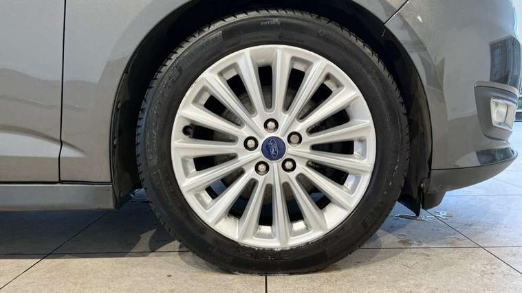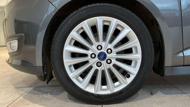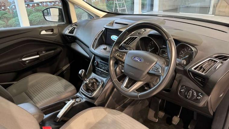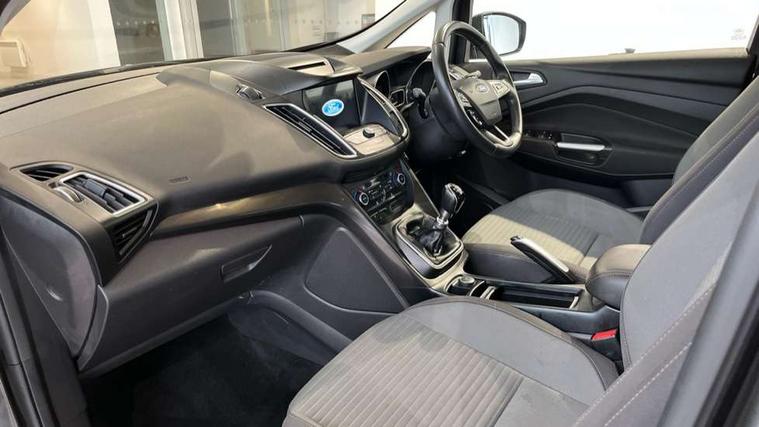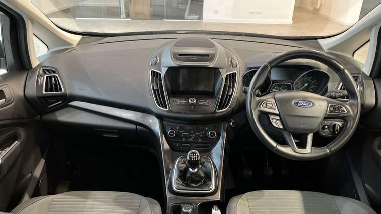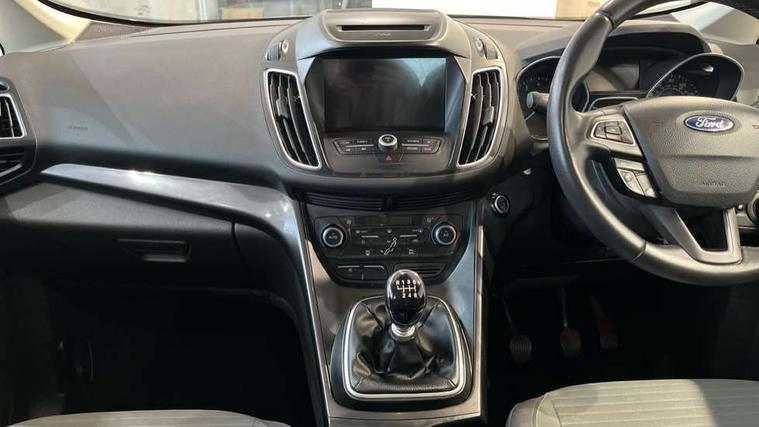 Driver's information system, Easy fuel capless refuelling system, Electric power steering, Engine start button, Multi function display colour screen, Rear parking sensor, SYNC 3 DAB radio/CD, 8" colour touch screen, emergency assistance, Bluetooth connection and advanced voice control, Trip computer, Steering wheel mounted audio controls, USB connection, 'Global' closing of front/rear windows, Auto dimming rear view mirror, Automatic headlights, Automatic rain sensing wipers, Body colour bumpers with black rubbing strip, Body colour door handles, Body colour door mirrors with integral indicators, Chrome finish on upper door line, Chrome surround for front fog lights, Dual sliding side load doors, Electric folding door mirrors, Electric front windows + drivers one touch, Electric heated door mirrors, Electric rear windows, Front fog lamps, Intermittent rear wash/wipe, LED daytime running lights, Quickclear heated windscreen, 12V accessory sockets - front and rear, 3 spoke steering wheel, Aluminium scuff plates, Ambient interior lighting, Auxiliary power socket, Centre armrest with storage box, Child observation mirror, Cloth upholstery, Courtesy light in luggage compartment, Driver's seat manual height adjust, Driver/passenger lumbar adjustment, Dual zone electronic climate control, Footwell illumination, Front + rear carpet mats, Front/rear courtesy lights, Fully adjustable front headrests, Isofix child seat attachment, Leather gearknob, Passenger seat height adjuster, Premium centre console, Rake/reach adjustable steering wheel, Satin chrome interior door handles, Sports style front seats, Three height adjustable rear head restraints, Tonneau cover, Versatile split folding rear seat - 40/20/40, 7 three point seatbelts, ABS + traction control, Active city stop, Driver and passenger airbags, Driver and passenger side airbags, Electronic brake force distribution, Emergency brake assist, ESP, Fasten seatbelt reminder, Front and rear curtain airbags, Height adjustable front seatbelts, Hill start assist, Intelligent Protection System (IPS), Power child locks, Tyre pressure monitoring system, Anti-theft immobiliser, Keyless entry, Locking wheel nuts, MyKey system, Remote central double locking, Thatcham 1 volume sensing alarm, Satin black trim, Mini steel spare wheel,