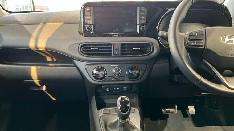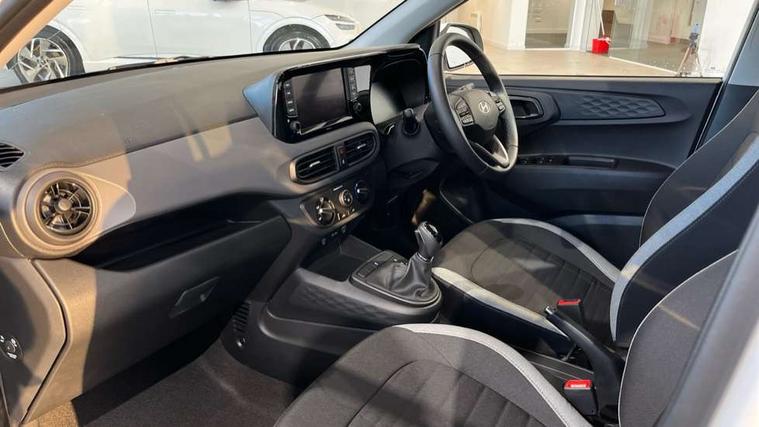 8" Touchscreen satellite navigation including mapcare and LIVE services, Apple car play/Android Auto, Bluelink mobile remote connectivity, Bluetooth connectivity with voice recognition, Cruise control, Driver attention alert system, eCall emergency call system, Forward Collision-Avoidance Assist (FCA) - Pedestrian/Cyclist, Full-width 4.2" LCD instrument cluster, Intelligent speed limit assist, Lane departure warning system with lane keep assist - LKAS, Lane follow assist, PAS, Rear parking sensors, Rear view camera with guidelines, Roadside assistance, Start/Stop function, Tailgate, Trip computer, 2 front/2 rear speakers, Front and rear USB-C ports, Front USB connection, Leading vehicle alert (LVA), Steering wheel audio, phone and cruise controls, 1 speed non intermittent rear windscreen wiper, Black finish on B pillars, Body colour door handles, Body coloured bumpers, Body coloured door mirrors, Electric front windows, Electric rear windows, Electrically adjustable and heated door mirrors, Flat metal emblem, Front grille in matte black, Front intermittent wipers, Halogen headlights, Headlights inner with Black Blade design, Heated rear window, High beam assist, Indicator light on door mirrors, LED daytime running lights, Rear roof spoiler with integrated LED brake light, Rear side wing doors, 12v power outlet - front, 3 seat bench in 2nd row, 60/40 split folding flat to floor rear seats, Auto light control, Bottle holders in front/rear doors + front centre console, Cabin and luggage compartment interior lighting, Cloth upholstery, Driver + passenger vanity mirrors, Driver's seat height adjustment, Driver/passenger sunvisors with ticket holders, Floor mats, Front door pockets, Front Head Restraints - Vertical and Horizontal Adjustment, Glove compartment, Height adjustable steering column, Isofix child seat preparation, Leather wrapped steering wheel and gear knob, Manual air conditioning, Rear door pockets, Single front passenger seat, Vertical adjustment rear head restraints, 3x3 point rear seatbelts, Airbags - front, front side and curtain airbags, Anti-lock brake system (ABS), Autonomous emergency braking (AEB) with forward collision warning system, Brake assist function, Childproof rear door locks, Electronic stability control, Front and rear seatbelt reminder, Front seatbelt pretensioners, Hill start assist control (HAC), Passenger airbag deactivate switch, Traction control, Tyre pressure monitoring system, Immobiliser, Perimeter alarm, Rear occupant alert, Remote central locking, Second remote key, Speed sensitive auto door locking, 15" Alloy wheels, Temporary mobility kit (TMK),