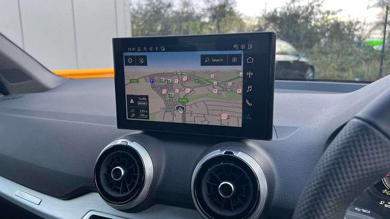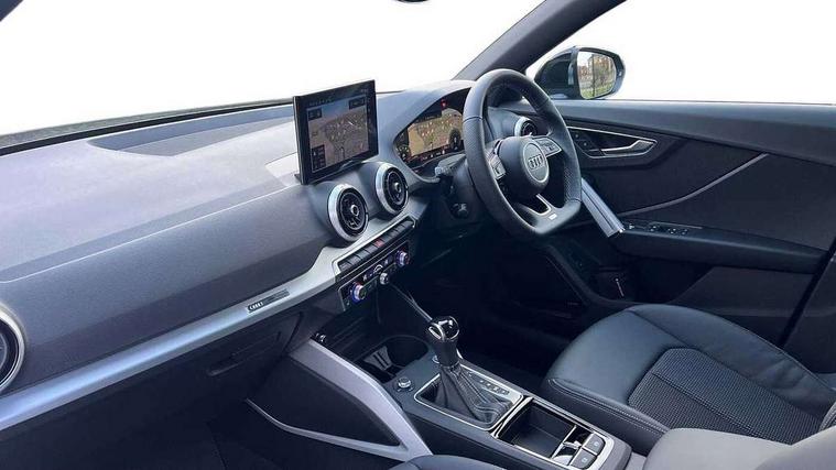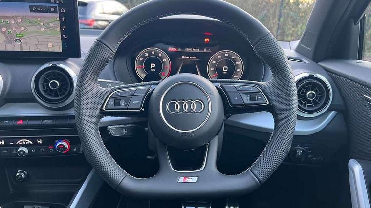 3D map display, Audi connect navigation and infotainment includes innovative services, Audi connect remote and control connects your vehicle to your smartphone, Audi drive select: S tronic - power steering assistance + engine + gearshift (modes: comfort, auto, dynamic, efficiency, individual), Audi smartphone interface - Apple carplay/Android Auto, USB connect, 2xSDXC card readers, voice control for navi, telephone, music and 3rd party apps, Audi virtual cockpit, Automatic start/stop system with recuperation, Bluetooth interface includes bluetooth audio streaming, Camera based traffic sign recognition, Cruise control, Distraction and Fatigue warning, E-call, Jukebox hard drive memory for music (10GB), Lane departure warning, MMI navigation plus with 8.8" touchscreen, Natural voice recognition, Power operated tailgate, Progressive steering, Rear parking sensors, Sport suspension, 6 passive loudspeakers, DAB Digital radio, USB type C port, Audi beam, Auto dimming rear view mirror, Black window trims, Bumper in full body colour paint finish, Electrically adjustable, folding, auto dimming and heated door mirrors with integrated LED side indicators, Front windscreen with grey tinted sunband, LED daytime running lights, LED headlights with dipped beam, high beam, position lights, indicators, LED rear lights, LED third brake light, Privacy glass - dark tinted rear and rear side windows from B-pillar backwards, Rear side wing doors, Rear wiper, Variable front intermittent wipers, Wheel arch trims in manhattan grey, 12V socket in front, 3 seat bench in 2nd row, 3 spoke flat bottomed multi-function leather sport steering wheel with gear shift paddles with S logo, 4-way electric lumbar support for front seats including manual seat height adjustment for both front seats, 60/40 split folding rear seat bench, Black carpets, Black cloth headlining, Front and rear head restraints, Front centre armrest, Front sport seats, Front/rear floor mats, Height/reach adjust steering wheel, Illuminated door sill trims with S logo, ISOFIX child seat mounting in front passenger and rear outer seats, Manual air conditioning, Single front passenger seat, Stainless steel pedals, Black styling pack - Q2, 3x3 point rear seatbelts, 6 airbags - Front, curtain and front side airbags, Electromechanical parking brake, Electronic stabilisation control including ABS, ASR and EDL, Front passenger airbag deactivation, Hill hold assist, Pre-sense front with pedestrian recognition, Seatbelt monitoring, Tyre pressure warning light with visual and acoustic warning, Warning triangle and first aid kit, Anti theft wheel bolts, Electronically operated child locks, Remote central door locking, Thatcham category 1 alarm, Aluminium interior element, Black dashboard, Gloss black centre console, Matt brushed aluminium trim inlays, Tool kit,