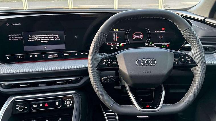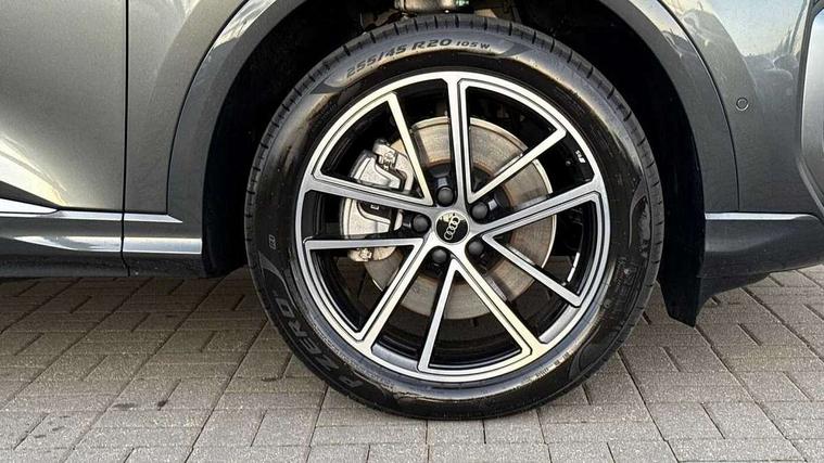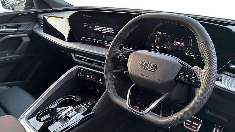Adaptive cruise control, Attention and drowsiness detection with driver observation, Audi application store, Audi connect emergency call and service, Audi digital key, Audi drive select, Audi smartphone interface, Audi virtual cockpit plus with 11.9" OLED colour display, Camera based traffic sign recognition, Front cross traffic intersection assist, Lane change assistant with exit warning system, rear cross traffic alert and rear turn assist, Lane departure warning system, MMI navigation plus with high resolution 14.5" OLED touchscreen colour display, Park assist plus, PAS, Reversing camera, Swerve assist and front turn assist, Traffic sign based speed limiter, Compact e-tron charging system, Household plug type G for the e-tron charging system, Hybrid propulsion system, Industrial connector CEE 32A, 230V, long and straight for the e-tron charging system, Mode 3, Type 2 AC charging cable 22kW - capable of charging speeds up to 11kW for use at AC charging points including a home wallbox, Audi sound system impressive sound with 8 loudspeakers including centre speaker and subwoofer, 6-channel amplifier with a total output of 180 watts, DAB Digital radio, Smartphone compartment with wireless charging, Aluminium roof rails, Auto dimming rear view mirror, Body coloured door mirrors, Electrically adjustable heated and folding + automatically dimming exterior mirrors, Front and rear electric windows, Front door sill trims with aluminium inlays, illuminated with 'S' logo, Grill frame, inlay and front air inlets in matt anthracite chrome, Headlight cleaning system, Heated rear window, High beam assist, High gloss window surrounds, LED headlights plus incl. digital DRL, dynamic coming and leaving home function with turning/all weather/motorway/manouevring and intersection lights, LED rear lights pro incl. dynamic rear indicators and illuminated light strip with animated coming and leaving home function, Logo projection light in exterior mirrors, Privacy glass, Projection third brake light for rear window in LED, Radiator grille in phantom black, Rear and side windows with heat insulating glass, Rear honeycombe grille in matt black with inlay in matt anthracite chrome, Rear side wing doors, Rear wash/wipe, S Line badge on the front wings, S line bumpers in contrasting Volcano grey metallic paint finish, Windscreen with acoustic glazing, 3 rear head restraints, 3 seat bench in 2nd row, 3 spoke leather steering wheel with multi-function buttons with touch control, flattened on top and bottom, with S badging and contrast stitching, 4 way electric lumbar support for driver and front passenger, Auxiliary air conditioning, Black carpets, Comfort centre armrest, Deluxe 3 zone electronic climate control, Front and rear floor mats, Front sport seats with integrated head restraints, Headlining in black cloth, i-Size child seat mounting on the front passenger side and outer rear seats, i-Size and top tether on the outer rear seats, Increased charging capacity for USB ports 2X100 Watts in rear, 2X60 Watts in front, Interior trim in aluminium look, Luggage compartment lid, electrically opening and closing, Manual steering column adjustment, S embossed logo on front sport seats, Single front passenger seat, Softwrap in black, Stainless steel pedals and footrest, Steering wheel grips in perforated leather and shift paddles, Ambient lighting package plus - Q5, Rear seat bench plus pack - Q5, Storage and luggage compartment pack with luggage net - Q5, 3x3 point rear seatbelts, ABS, Acoustic vehicle alerting system, Convenience key with safelock, Driver and front passenger airbag with passenger airbag deactivation, Electric child safety locks, First aid kit with warning triangle and high visibility vests, Front emergency brake assist, Front side airbags with head airbag system and front interaction airbag, Hill hold assist, Rear seat occupant reminder, Tyre pressure loss indicator, Anti-theft wheel bolts, Thatcham approved category 1 anti theft alarm, Accent surfaces and control buttons in gloss black, Anthracite matt brushed aluminium inlays with linear embossing, Black dashboard with contrast stitching, Upper and lower interior elements in artificial leather, Tyre repair kit,