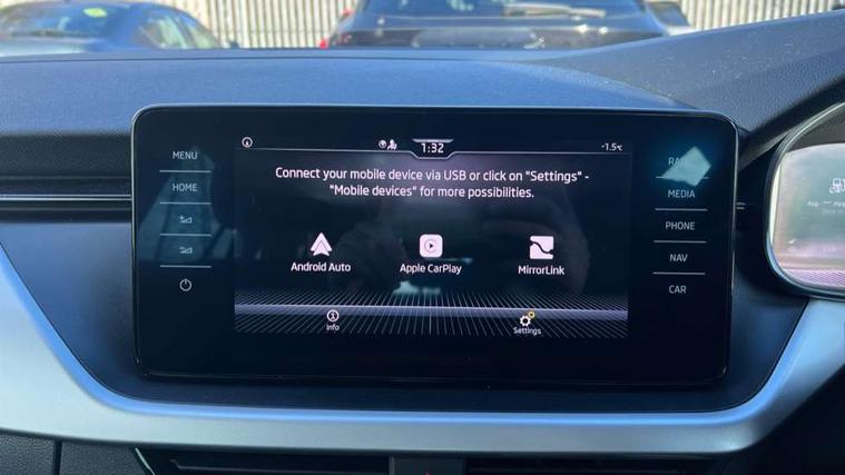 Amundsen satellite navigation with 9.2" touchscreen display, web radio and voice control, Blind Spot Detection (BAS), Bluetooth system, E-call, Front assist system, Lane assist, PAS, Service indicator, Speed limiter, Trip computer, Virtual cockpit with 10.25" display, Wireless SmartLink for Apple Car Play, 2 USB - C ports with 1x adaptor cable, Auxiliary input socket, DAB Digital radio, Auto dimming rear view mirror, Body colour bumpers, Body colour door mirrors and handles, Chrome grille surround, Electric folding door mirrors, Electrically adjustable and heated door mirrors, Front and rear electric windows, Headlight range control, Heated rear window, High functionality rear led lights with dynamic indicators, Light and rain sensors, Privacy glass, Rear fog lights, Rear wiper, 12V Accessory socket in centre console, Chrome inner door handles, Dual zone climate control, Front gesture control, Front head restraints, Glove compartment with illumination, Ice scraper, Isofix child seat fittings on outer rear seats, ISOFIX on front passenger seat, Manual lumbar support for front seats, Pollen filter, Rake/reach adjustable steering wheel, Reading lights for driver and front passenger, Sun visor with make up mirror for front passenger, Textile floor mats, Third rear headrest, Top tether for front passenger seat, Umbrella in driver's door, 3x3 point rear seatbelts, Airbags - driver and front passenger, ESP, Front passenger airbag deactivation switch, Front side airbags with curtain airbags, Hill hold control, Manual parking brake, One tone horn, Rear disc brakes, Seatbelt reminder for driver an co-driver, Traction control, Tyre pressure monitor, Alarm with interior monitoring, back up horn and tilt sensor with safe function and towing protection, Anti-theft wheel bolts, Immobiliser, Remote central locking with SAFE system,