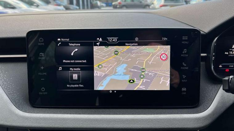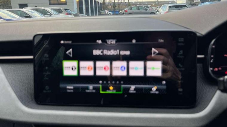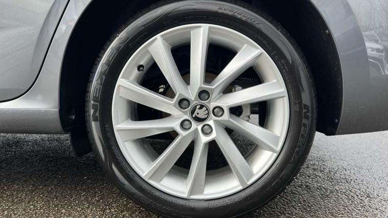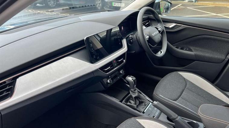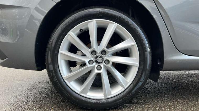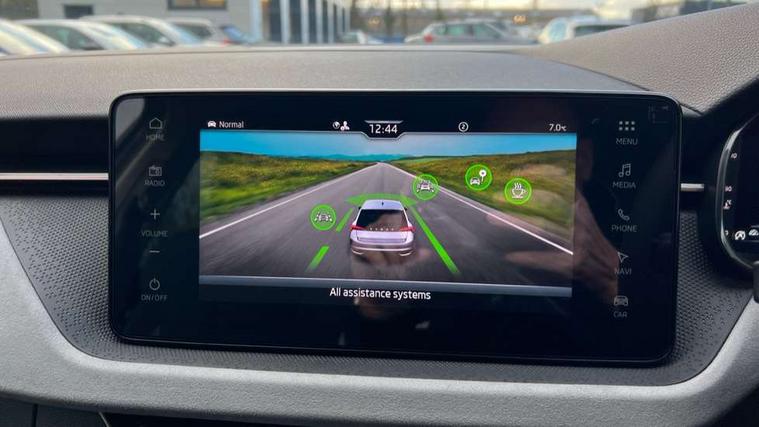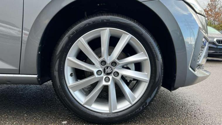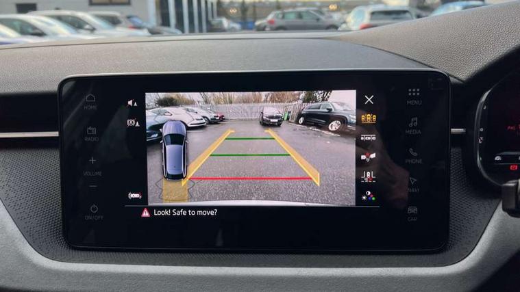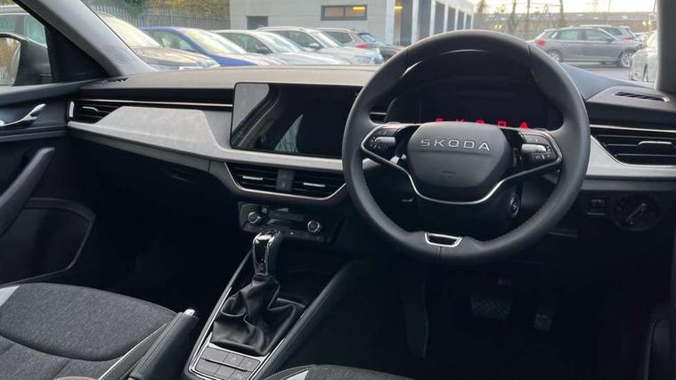 Advanced driver attention and drowsiness monitor, Bluetooth, e-Call (emergency call), Front assist system, PAS, Rear parking sensors, Rear view camera, Speed limiter, Tailgate, Traffic sign recognition, Virtual Cockpit - 10.25" digital display, Voice control system, Wireless smartlink, 4 USB C ports, 8 Speakers, 9.2" Skoda navigation display, DAB radio, Auto dimming rear view mirror, Automatic headlight control with manual coming and leaving home feature, Automatic intermittent wipers, Body colour bumpers, Body colour door mirrors and handles, Chrome moulding around grille, Chrome window frames, Front and rear electric windows, Heated rear window, LED 3rd brake light, LED daytime running lights, LED high beam, LED low beam, Light sensors, Privacy glass, Rear LED fog light, Rear side wing doors, Rear wiper, Tinted windows, Unique dark chrome design logo on alloy wheels, 12V socket in luggage compartment, 3 seat bench in 2nd row, Ambient lighting in white/red, Black / Copper armrest stitching, Cargo elements, Chrome inner door handles, Copper hotstamping, Door inserts in accent black, Driver and passenger sun visors with vanity mirror, Dual zone climate control, Front and rear roof lights, Front centre armrest, Front head restraints, Glasses storage in roof liner, Height adjustable driver seat, Height adjustable passenger seat, Ice scraper, Illuminated glove compartment, Inner circulation control with pollen filter, ISOFIX for front passenger seat, Isofix preparation for back seats, Leather gearknob and handbrake lever, Lodge cloth upholstery, Luggage net under rear parcel shelf, Manual lumbar support for front seats, Net package and top tether hooks in boot space, Pocket on the back of both front seats, incl. mobile phone pockets, Rear centre armrest, Single front passenger seat, Skoda lettering on steering wheel, Textile floor mats, Third rear headrest, Ticket holder, Top tether for front passenger seat, Umbrella in driver's door, Convenience pack without rear camera - Scala, 3x3 point rear seatbelts, ABS, Child locks, Curtain airbags and front side airbags, Disc brakes, Driver and front passenger airbags, ESP, Hill hold control, Manual leather parking brake, One tone horn, Passenger airbag switch off function, Seatbelt reminder for driver and front passenger, Tyre pressure monitoring system, Anti theft alarm system with interior monitoring, backup horn and towing protection, Anti-theft wheel bolts, Remote central locking with 2 remote folding keys, SAFE function for remote central locking, Decorative inserts,