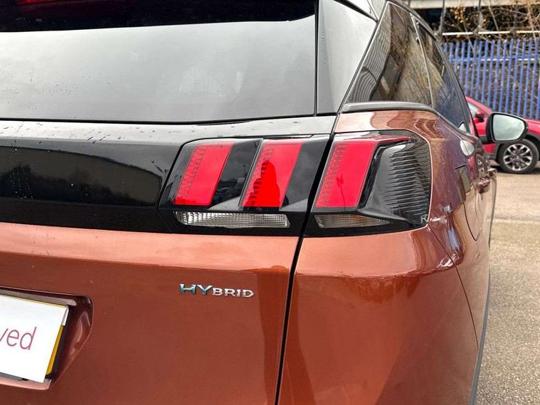 'Lights On' Reminder warning buzzer, 3D connected navigation + voice control + Peugeot connect SOS and assistance, Bluetooth telephone facility, Charge management - Control, plan, launch and check the vehicle charge remotely, Climate preset - Remotely plan and control the heating or air conditioning, Digital clock, Electric impulse automatic gearbox control, Exterior temperature indicator with ice warning, Front and rear parking sensors, Lane departure warning system, Mirror screen with mirror link, apple carplay and android auto, Mode selector - Electric, hybrid and sport, Multi function trip computer, PEUGEOT i-Cockpit with 8.0" capacitive touchscreen in centre console, PEUGEOT i-Cockpit with compact sports steering wheel, PEUGEOT i-Cockpit with configurable 12.3" Head-up digital instrument panel, Speed limit + road sign recognition and recommendation, Dynamic stability control and electronic anti-skid system, Mode 3 type 2 cable for wallbox charging, DAB Digital radio, Steering wheel mounted controls, USB socket, 2 X Rear number plate lights, Aluminium longitudinal roof bars, Automatic hazard light activation upon heavy brake application, Automatic triggered rear windscreen wiper in reverse gear, Black front wing trim with chrome detail, Black rubber side window trim, Body colour door handles, Body colour door mirror shells, Body colour rear spoiler with stainless steel edging trim, Body coloured bumpers, Body protectors (bottom of front and rear bumpers + wheel arches + protection at bottom of doors) in black, Chrome front fog light trim, Chrome rear bumper facia, Dark tinted rear side windows + tailgate window, Door mirror mounted LED courtesy approach lights, Electric operated/heated door mirrors, Frameless rear view mirror with electric mode light, Front windscreen wiper with magic wash cleaning system, Gloss black B and C pillar and aerodynamic deflector trim, Gloss black rear cluster connecting strip, Gloss black windscreen surround, Headlights left on audible warning, Heated rear windscreen with integrated antenna, HYBRID emblem on front wings and tailgate, LED daytime running lights, LED side indicator lights integrated into door mirrors, Lion grey front bumper scuff plate, One touch electric front/rear windows with pinch protection, Power folding door mirrors with blind spot detection indicator and auto dipping function in reverse gear, Radiator grille in chrome edge trim and facets, Rear LED Peugeot signature 'Claw Effect' lights, Stainless steel roof arches, 12V Sockets in dashboard, rear cabin and load area, 2 cupholders in front centre console, 2 rear reading spotlights, 2x Rear coat hooks, 3x Isofix child seat fittings in the front passenger and outer rear seats, 4 Grab handles retractable and damped, Automatic gear lever in satin chrome, Blue ambient lighting for connecting zone, Blue ambient lighting to front door panels, central storage and cupholders, Blue ambient lighting to head up instrument panel, Centre front armrest with butterfly wing opening and illuminated storage compartment, Dual zone automatic climate control, Electric power steering with reach and rake adjustable steering column, Fixed boot floor with access to the charging cable storage box, Fixing rings 4 in load compartment, Flocked glovebox interior, Fold flat front passenger seat with picnic table, Footwell illumination, Front interior light with 2 reading spotlights and rear interior light with timer, Front passenger seat manual adjustments, Front seat back map pockets, Gear shift indicator, Illuminated glovebox, Illuminated vanity mirrors, Leather steering wheel with detail stitch, Piedimonte cloth/Leather upholstery, Rear armrest with ski flap and two cup holders, Rear centre console ventilation system, Reclining front seats, Roof LED interior lighting, Roof lining - Salin light grey, Satin chrome dashboard trim, Satin chrome digital instrument panel and touchscreen trim, Satin chrome front door panel recess trim, Satin chrome interior door handles, Satin chrome scorpion's tail and toggle switch trim, Seatbelt not fastened audible and visual alert for front seats, Seatbelt unfastened on the move audible and visual alert for front and rear seats, Safety pack - 3008, Safety Plus Pack - 3008, Visibility pack - 3008, 3x Rear three-point retractable seatbelts with force limiters in the outer rear seats, Acoustic vehicle alerting system, Adaptive driver and front passenger airbags with passenger airbag deactivation function, Anti lock braking system + Electronic brake force distribution, Driver and front passenger side airbags, Electric child locking functionality on rear windows and doors, Electric parking brake, Front and rear curtain airbags, Front optimised safety headrests and 3 x rear retractable headrests with height adjustable, Front three point retractable seatbelts with pre tensioners and force limiters, Front ventilated disc brakes and rear disc brakes, Height adjustable front seatbelts, Hill start assist, Tyre pressure sensor, Automatic door locking when moving off, Central locking button on dash, Deadlocks, Electronic immobiliser, Locking wheel bolts, Perimetric and volumetric alarm with lift and tilt sensor, Remote control central locking with two plip keys, Brumeo fabric Dashboard, front and rear door panel finish, Tyre repair kit,