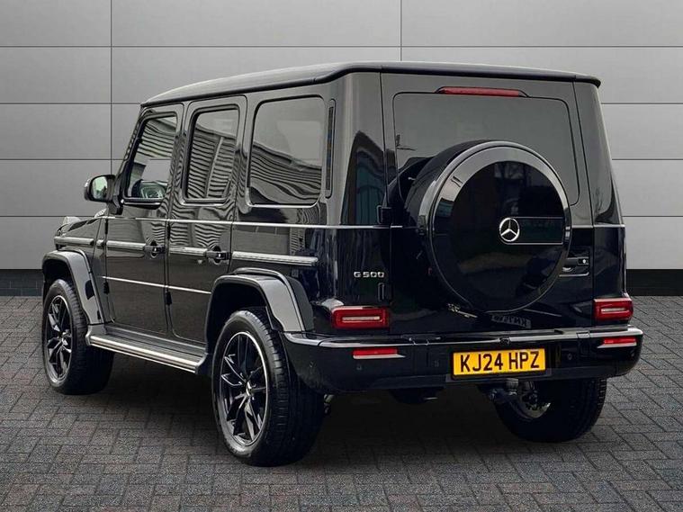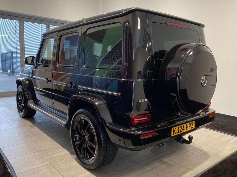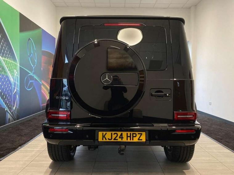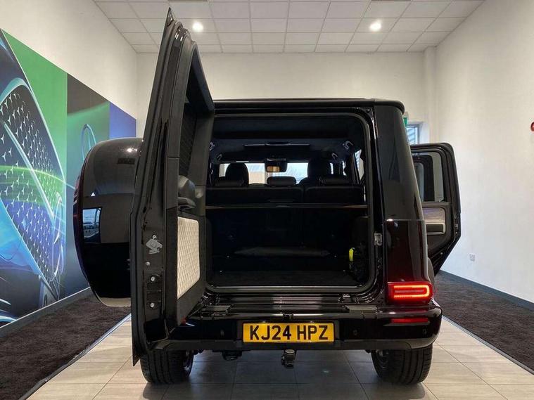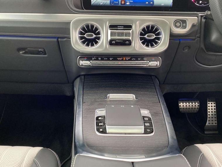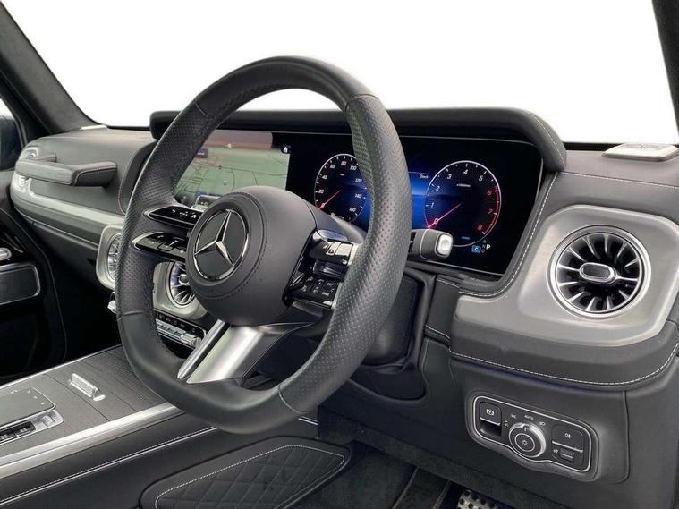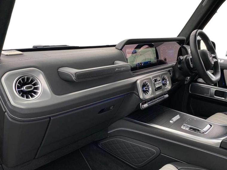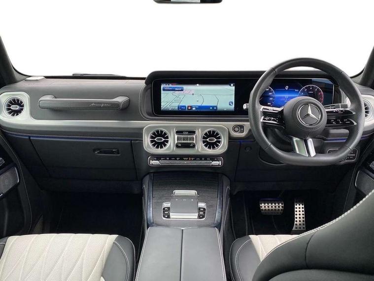 360 degree parking camera, Active parking assist with PARKTRONIC, Attention assist, Bluetooth interface for hands free telephone, Communications module (LTE), DYNAMIC SELECT - 7 drive programmes (Comfort, eco, sport, individual, trail, rock, sand), MBUX augmented reality for navigation, Mercedes connect me, Mercedes-Benz emergency call, PAS, Passive person presence reminder, Remote Services Premium, Service indicator (ASSYST), Smartphone integration with Apple CarPlay and Android auto, Trip computer, Widescreen cockpit with dual bonded 12.3" widescreen displays, Wireless charging, 4MATIC permanent four wheel drive, 9G-TRONIC transmission with cruise control and variable speed limiter, Differential lock, Low range gear reduction (Electronically selectable while driving), Petrol Particulate Filter, Suspension with selective passive damping system, 2 USB ports in the rear, Aux-in socket, Burmester 3D surround sound system, DAB digital radio module, MBUX multimedia system, Sound personalisation, 3rd brake light, Adaptive highbeam assist plus - automatic low high beam switching, Automatic headlamp activation, Automatically dimming rear view mirror, Bumper insert in stainless steel, Dark tinted heat insulated glass, Door mirrors - Electrically adjustable/heated/integrated indicators, front area lighting and automatically dimming driver's mirror, Electric sunroof sliding, with one-touch opening, Front and rear electric windows, Heated windscreen, LED daytime running lights, Privacy glass - Dark glass from B-pillar backwards, Rain sensor windscreen wipers, Rear side wing doors, Rear wiper, Towbar, Trailer coupling with ESP trailer stabilisation, Transparent Bonnet, Underguard in silver, 1/3 to 2/3 split folding rear seats, 12V socket in centre console, rear and load compartment, 2 cup holders in front and rear, 3 seat bench in 2nd row, Ambient lighting with 64 colours and projection of brand logo, AMG floor mats with AMG lettering, Centre armrest between front seats with integrated stowage compartment, Cushion length adjustment with gapless cushion, Designo dinamica microfibre roof lining in Black, Electrically adjustable steering column, with automatic adjustment for entry/exit, Front head restraints, Front seats with heated and electrically adjustable, memory function for seats, head restraints, exterior mirrors and steering wheel, Heated front seats, Heated rear seats, Heated steering wheel, Ionisation of interior air including fine particle activated charcoal filter system, Luggage compartment cover, Multifunction sports steering wheel in nappa leather, Partition net, Rear head restraints, Single front passenger seat, THERMOTRONIC automatic climate control system with 3 climate zones and 3 climate styles - Medium, Diffuse and Focused, Assistance package - G Class, Stowage space pack - G class, 3x3 point rear seatbelts, ABS with Brake Assist, Airbags - windowbags, Brake calipers with Mercedes-Benz lettering, Driver/Front Passenger airbags, Electronic four wheel traction control, ESP with ASR, Front side airbags, Hill start assist, i-Size child seat attachment system for the outer rear seats, PRE-SAFE system for preventive occupant protection, Rear door child safety locks, Rear side airbags, Seat belts, 3-point design in black, Seatbelt pretensioners, Tyre pressure monitoring system, Anti-theft alarm system/interior protection with tow-away protection and interior monitoring systems, Dashcam, Guard 360 degree vehicle protection plus, Immobiliser, Keyless Go starting function, Full size spare wheel,