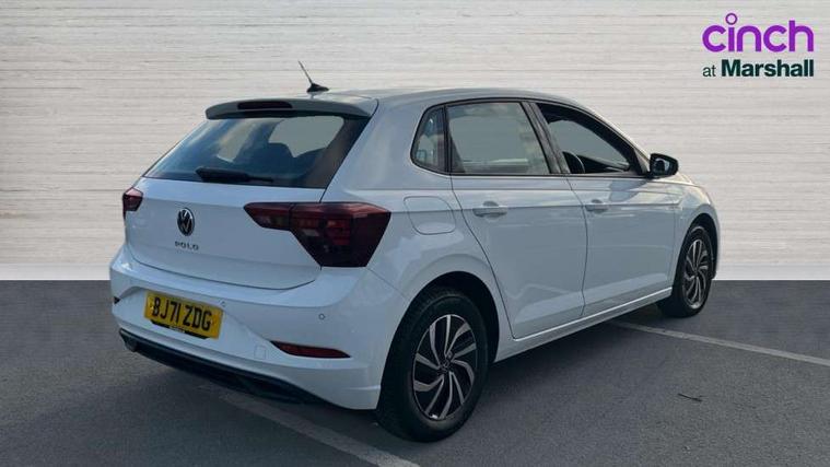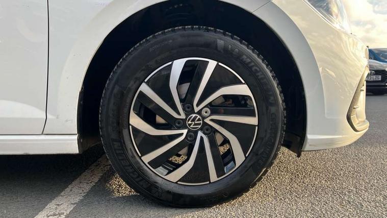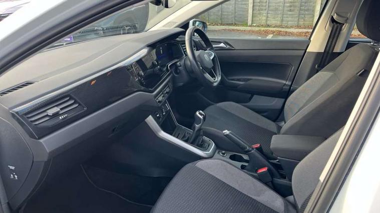 Adaptive cruise control without follow-to-stop and speed limiter, Bluetooth mobile phone interface, Driver alert system, Emergency call service, Front assist system, Power assisted speed sensitive steering, Preparation for We connect and We connect plus, Speedo and rev counter, electronic odometer, trip, service interval display and fuel gauge, Standard rear axle, Travel Assist - Lane keeping system and traffic jam assist, Travel assist including emergency assist, Trip computer, Warning signal and warning light for front and rear seatbelts not fastened, Washer fluid level indicator, Wireless app connect, Front wheel drive, Rear shock absorpion, Start-stop system with battery regeneration (recuperation - energy recovery during braking), DAB Digital radio, Diversity antenna for FM reception, Automatic dimming interior rear view mirror, Body colour bumpers, Body colour door handles, Body colour door mirrors, Chrome plated radiator grille inserts, air vent surrounds and light switch surrounds, Electric front windows, Heat insulating glass in side and rear windows, Heat insulating glass windscreen, Power folding adjustable/heated exterior mirrors and front passenger exterior mirror lowering function, Rain sensor, Rear electric windows, Rear fog light, Rear windscreen washer and wiper with interval delay, Third brake light, 12V power socket in centre console, 2 front and 2 rear reading lights, 2 USB-C ports in the front, 2 USB-C charging sockets on the center console in the rear, 3 rear head restraints, 60/40 split folding rear seat and rear seat bench not split, Ceramique headliner, Door and side trim panel, Driver and front passenger seat height adjustment, Driver/passenger sunvisors with illuminated vanity mirrors, Front centre armrest, Front seat backrest storage pockets, Front standard seats, Handbrake lever handle in leather, Hartley/Thomas cloth upholstery, Isofix child seat preparation easy-fit (for two outer rear seats, and front passenger seat) compatible with I-size, Leather trimmed gear knob, Luggage compartment cover, Luggage compartment floor, Luggage compartment lighting, Multifunction steering wheel, Standard pedal cluster, Light and vision pack - Polo, 3 point height adj front seatbelts + pretensioners, 3x3 point rear seatbelts, ABS, Driver and front passenger airbag with front passenger airbag deactivation, Drivers and front passengers safety optimised head restraints, ESC (Electronic stability control) + EDL (Electronic Differntial lock) and ASR (Traction control), Extended and predictive pedestrian/ cyclist protection, Front curtain and side airbags with center airbag, Front disc brakes, Hill hold control, Rear drum brakes, Single tone horn, Tyre pressure loss indicator, Alarm with interior protection, Anti-theft alarm system with interior monitoring, backup horn, and towing protection, Anti-theft wheel bolts, Electronic engine immobiliser, Lava stone black gloss/matt decorative inserts in dash and front door panels, Low rolling resistance tyres,