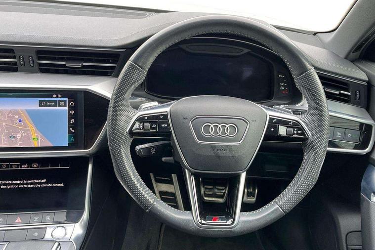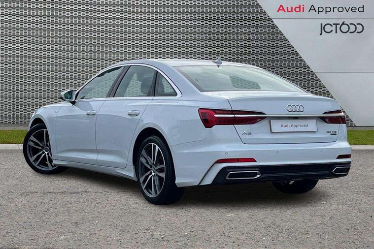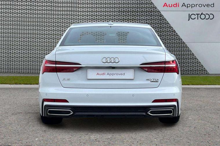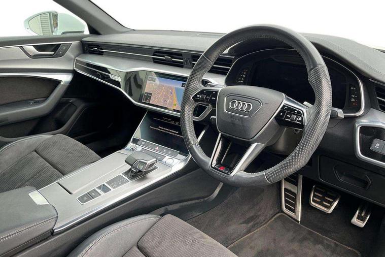 LED Interior Ambient Lighting Pack - A6, Non smoking pack - A6, Anti theft alarm with tow away protection, Anti-theft wheel bolts and wheel loosening detection, Immobiliser, Keyless Go, Remote central locking, Audi music interface, Auxiliary input socket, DAB Digital radio, USB connection, 3 point seatbelts on all seats, Airbags - Front side, front and rear including head, Audi pre-sense front, EBD - Electronic brakeforce distribution, Electromechanical parking brake, Electronic Stability Control (ESC) including ABS, ASR and EDL, Extended pedestrian protection measures, Seatbelt monitoring, Tyre pressure warning light, Warning triangle and first aid kit, Body coloured door mirrors, Electric front/rear windows, Electrically adjustable, heated and folding door mirrors with driver memory function and integrated LED indicators, Frameless auto dimming interior rear view mirror, Headlight washers, Heat insulating glass in side and rear windows, LED signature front daytime running light, Matrix LED headlights with dynamic rear indicators, Privacy glass, Radiator grille in titanium black matt, single frame in chrome and horizontal struts in matt aluminium silver, Rain and light sensors, S line air inlet design with inlay in matt aluminium, S Line badge on front fender, S Line front and rear bumpers, S line rear diffuser and grille in matt black with matt aluminium tailpipes, S Line side skirts, Signature rear LED light design, Windscreen with acoustic glazing, 2 zone deluxe electronic climate control, 4 way electric lumbar support for driver and front passenger, 40/20/40 split folding 3 rear seat bench in 3 parts with rear centre armrest, Black cloth headlining, Electrically adjustable front seats with driver memory, Front centre armrest, Front head restraints, Heated front seats, Height/reach adjust steering wheel, Illuminated door sill trims with S logo, Illuminated sun visors with vanity mirrors, ISOFIX child seat mounting and Top Tether with front passenger airbag deactivation, Leather gear knob, Leatherette on upper instrument panel and door shoulders, Rear headrests, S line front and rear floor mats with contrast stitching, Stainless steel pedals and foot rest, Tool kit and car jack, 7" high resolution colour driver information display system, Amazon alexa Integration, Audi connect safety and service (e-call), Audi drive select, Audi parking system plus with front and rear sensors, Audi smartphone interface, Automatic start/stop system with coasting functionality, Bluetooth interface, Electric boot lid release, Lane departure warning system, MMI navigation with MMI touch + twin touch screens 8.8" and 8.6" with haptic and acoustic feedback, Progressive steering, Service interval indicator, Voice control system, Diesel particulate filter, Quattro on demand, Sports suspension,