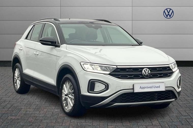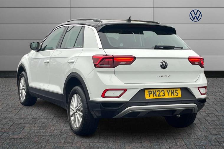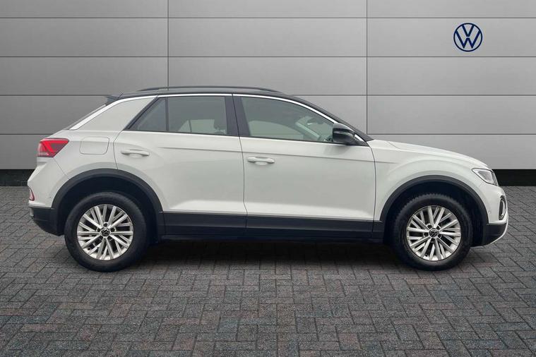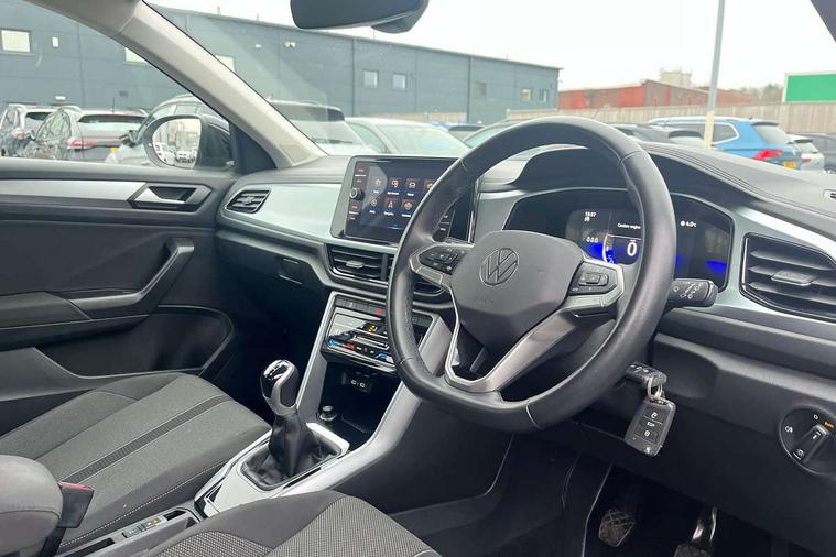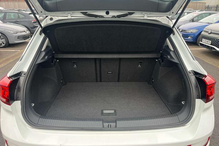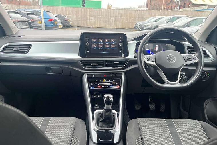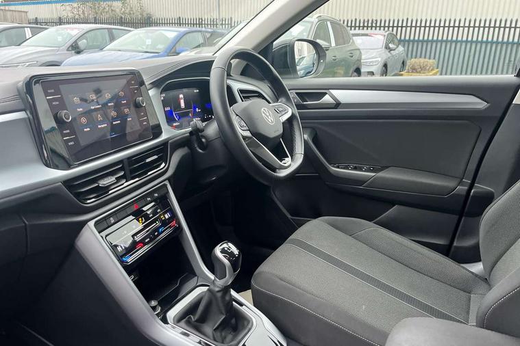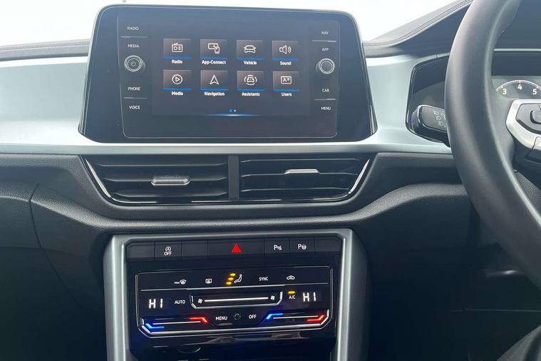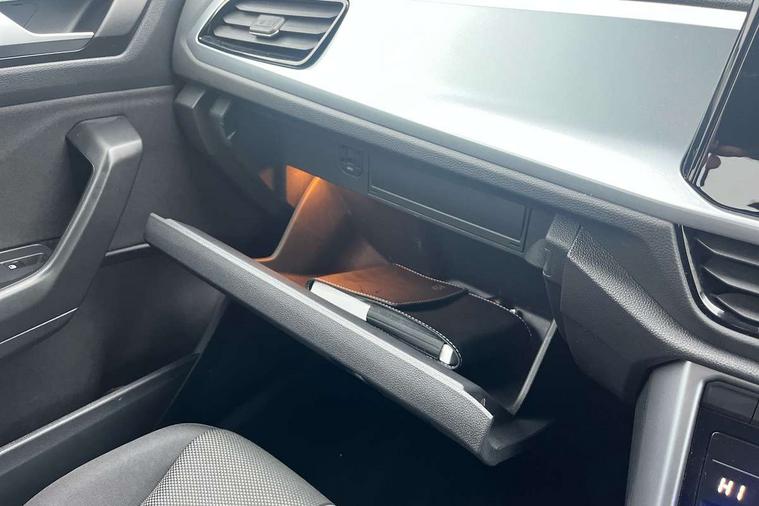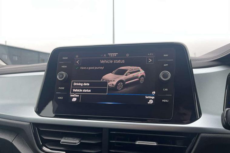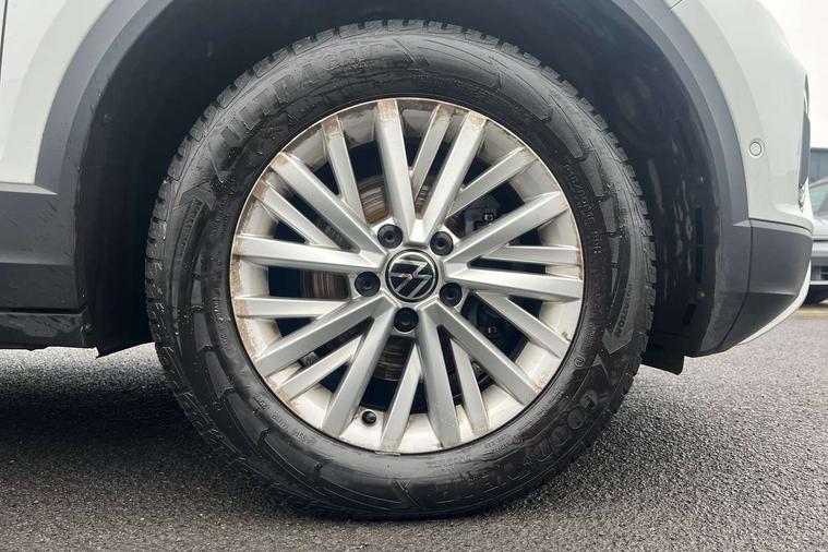 Bluetooth mobile phone interface, Driver alert system with fatigue detection, Driver tips and journey analysis, Emergency call service, Lane keeping system Lane Assist, Modified key software - reduce switch off time for key status change to Long no motion, Online services, Park assist including front and rear parking sensors, Power assisted speed sensitive steering, Service interval indicator, Tailgate/trunk lid release from outside, Think blue trainer driver tips and journey analysis, Warning sound and light for front seatbelts unfastened, Wireless app connect, Battery regeneration during braking, Front shock absorption, Rear shock absorption chassis with increased ride height, Start/stop function with battery regeneration, DAB Digital radio, Diversity antenna for FM reception, Front and rear 6 speakers, Music playback - MP3, WMA and AAC files, Premium USB cable in choice of either Apple or Android smartphone compatibility, SD card slot, Simultaneous pairing of 2 compatible mobile devices, Title and cover art display, We Connect and We Connect Plus functionality, 3rd brake light, Auto dimming interior rear view mirror, Automatic hazard lights activation under emergency braking, Automatic headlight control with LED separate daytime running lights with coming/leaving home function, Black roof rails, Body coloured bumpers and radiator grille with chrome trim and front fog lamps with chrome bezel, Body coloured exterior mirror housings and door handles, Extended roof spoiler, Exterior mirrors aspherical on driver side, convex on front passenger side, External USB type C socket and charging sockets, Front windscreen wiper with intermittent wipe and 4 position delay, Heated rear window, LED Headlights, LED rear combination lamps, LED rear number plate lights, LED tail lamp rear comination lamps, Power windows with comfort operation and circuit breaker, Rain sensor, Rear exhaust tailpipe, Rear fog light on one side and reversing lights on both sides, Rear side wing doors, Rear wash/wipe with intermittent wipe setting, Remote electrically foldable door mirrors, puddle lights and reverse activated passenger's door mirror, 12V power socket in centre console, 3 rear head restraints, 3 seat bench in 2nd row, 4 load lashing points in luggage compartment, Air care climatronic air conditoning system with active combination filter and 2-zone temperature control, Ambient lighting with mirror logo projection, Cloth upholstery, Door and side trim panel in cloth, Drawer under drivers seat, Driver/front passenger seat height adjustment, Front centre armrest, Front comfort sports seats, Front cupholders x 2, Front reading light, Instrument lighting, white adjustable panel illumination, Interior light delay, Isofix child seat preparation, Leather gearshift handle, Load-through provision with cup holder when folded down ('Unsplit rear seat bench, split folding backrest, with centre armrest), Luggage compartment lighting, Lumbar support for driver's and front passengers seat, Non-folding front passenger seat backrest, Single front passenger seat, Storage compartment in left and right luggage area, Storage compartment in rear doors, Storage compartments in driver and front passenger doors, Sunvisors with illuminated vanity mirrors, Variable boot floor, height adjustable and removable, Driver assistance pack without proactive passenger protection - T-Roc, 3 point height adj front seatbelts + pretensioners, 3 point seatbelts in outer rear with ECE label, ABS, Child locks on rear doors, Driver and front passenger airbag with front passenger airbag deactivation, Driver and front passenger safety-optimised head restraints, Drivers seatbelt reminder, Electronic parking brake, Electronic Stability Control (ESC) inc EDL (Electronic Differential Lock) and ASR (Traction Control), Front and rear passengers curtain airbag system including front side airbags, Front assist with city emergency braking and pedestrian monitoring, Front disc brakes, Front seat side impact airbags, Hill start assist, Predictive pedestrian protection, Rear disc brakes, Single tone horn, Tyre pressure loss indicator, Volkswagen roadside assistance, Alarm with interior protection, Anti-theft alarm system with interior monitoring, backup horn, and towing protection, Remote central locking with SAFELOCK, radio remote control with 2 remote control folding keys, Pewter matt decorative inserts for intrument panel, centre console and door panels at the front, Trims for alloy wheels,