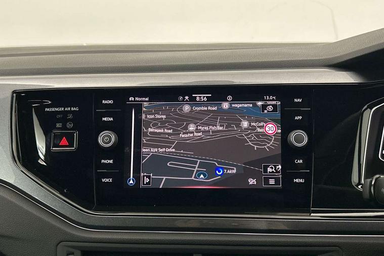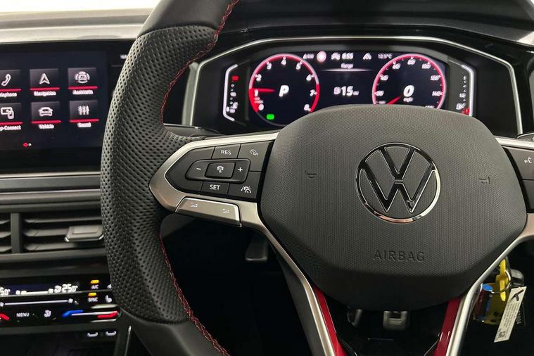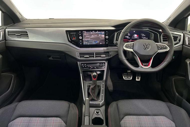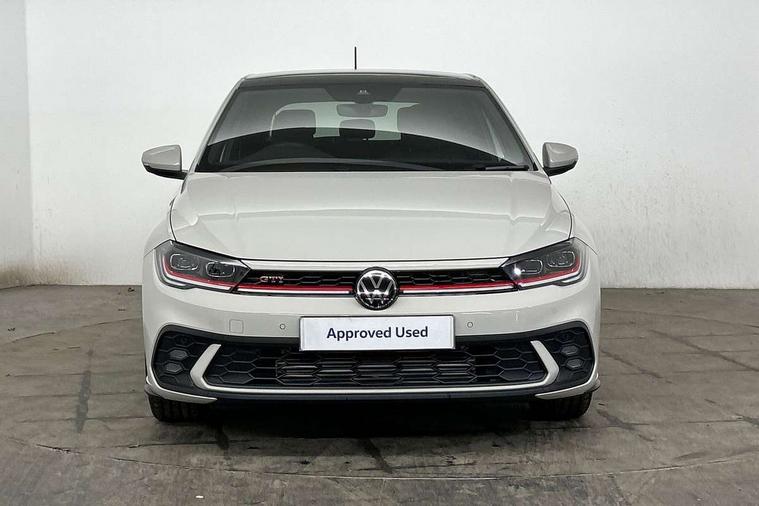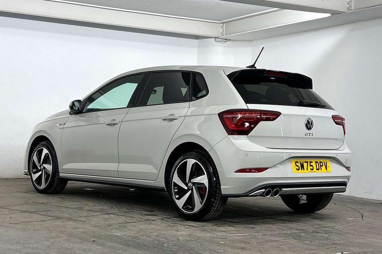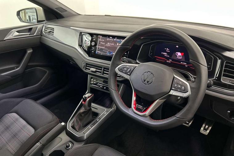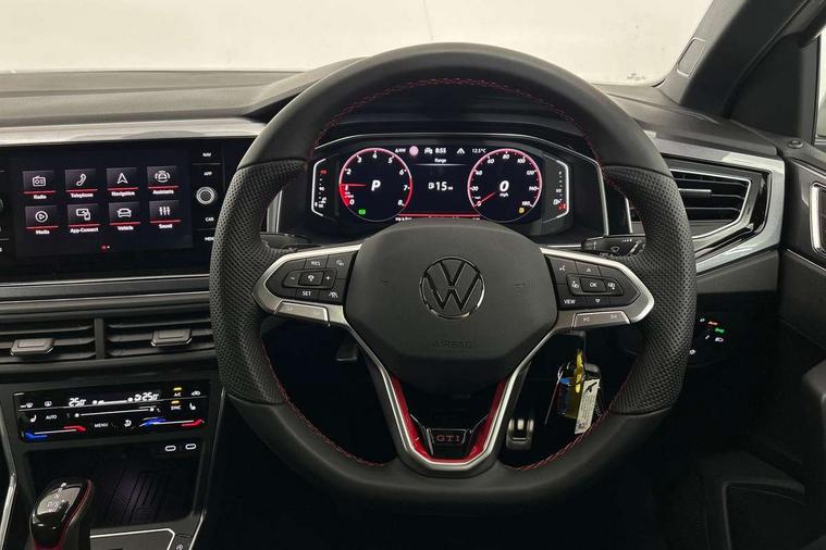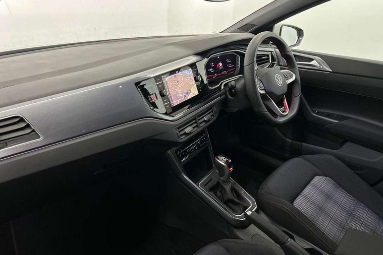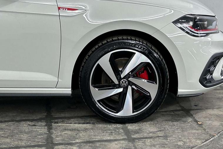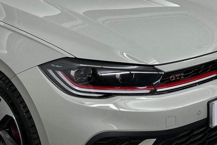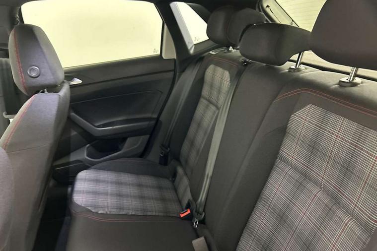 Adaptive cruise control with follow-to-stop and speed limiter, Advanced driver attention and drowsiness monitor, Bluetooth mobile phone interface, Digital Cockpit Pro with 10.25" Display, Dynamic road sign display, Eco mode, Emergency call service, Multifunction camera, Power assisted speed sensitive steering, Preparation for We connect and We connect plus, Speedo and rev counter, electronic odometer, trip, service interval display and fuel gauge, Travel Assist - Lane keeping system and traffic jam assist, Travel assist including emergency assist, Trip computer, Warning signal and warning light for front and rear seatbelts not fastened, Washer fluid level indicator, Wireless app connect, Adaptive chassis control, Front wheel drive, Heavy duty rear axle, Rear shock absorpion sports version, Sports select suspension lowered by 15mm, Start-stop system with battery regeneration (recuperation - energy recovery during braking), DAB Digital radio, Diversity antenna for FM reception, Body colour bumpers, Body colour door handles, Electric front windows, Front scuff plates in aluminium with GTI logo, Heat insulating glass windscreen, Power folding adjustable/heated exterior mirrors and front passenger exterior mirror lowering function, Rain sensor, Rear electric windows, Rear fog light, Rear side wing doors, Rear windscreen washer and wiper with interval delay, Sport bumpers with air intakes with honeycomb structure, Third brake light, Twin chrome exhaust tailpipes, 12V power socket in centre console, 2 USB-C ports in the front, 2 USB-C charging sockets on the center console in the rear, 3 rear head restraints, 60/40 split folding rear seat and rear seat bench not split, Air care climatronic air conditoning system with active combination filter and 2-zone temperature control, Black roof lining, Carpet mats, front and rear, Chrome plated radiator grille inserts, air vent surrounds and light switch surrounds, Door and side trim panel, Driver and front passenger seat height adjustment, Driver/passenger sunvisors with illuminated vanity mirrors, Front centre armrest, Front footwell illumination, Front seat backrest storage pockets, GTI sports gearshift knob in aluminium leather, Handbrake lever handle in leather, Headliner in recycled material, Isofix child seat preparation easy-fit (for two outer rear seats, and front passenger seat) compatible with I-size, LED interior light with switch off delay and dimmer, 2 reading lights front and rear, Luggage compartment cover, Luggage compartment floor, Luggage compartment lighting, Lumbar adjustment for front seats, Single front passenger seat, Stainless steel pedals, Standard pedal cluster, Three spoke leather wrapped multifunction sports steering wheel with shifting paddles, IQ LED matrix headlights pack - Polo, Light and sight pack - Polo GTI, 3 point height adj front seatbelts + pretensioners, 3x3 point rear seatbelts, ABS, Driver and front passenger airbag with front passenger airbag deactivation, Drivers and front passengers safety optimised head restraints, ESC (Electronic stability control) + EDL (Electronic Differntial lock) and ASR (Traction control), Extended and predictive pedestrian/ cyclist protection, Front and rear disc brakes with red brake calipers, Front curtain and side airbags with center airbag, Hill hold control, Manual child lock in rear doors, Two tone horn, Tyre pressure loss indicator, Alarm with interior protection, Anti-theft alarm system with interior monitoring, backup horn, and towing protection, Anti-theft wheel bolts, Electronic engine immobiliser, Chrome applications on rotary light, mirror adjustment, window regulator switches, outlet with frame in black, Low rolling resistance tyres,