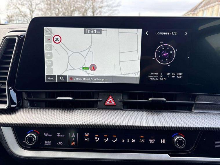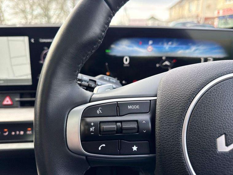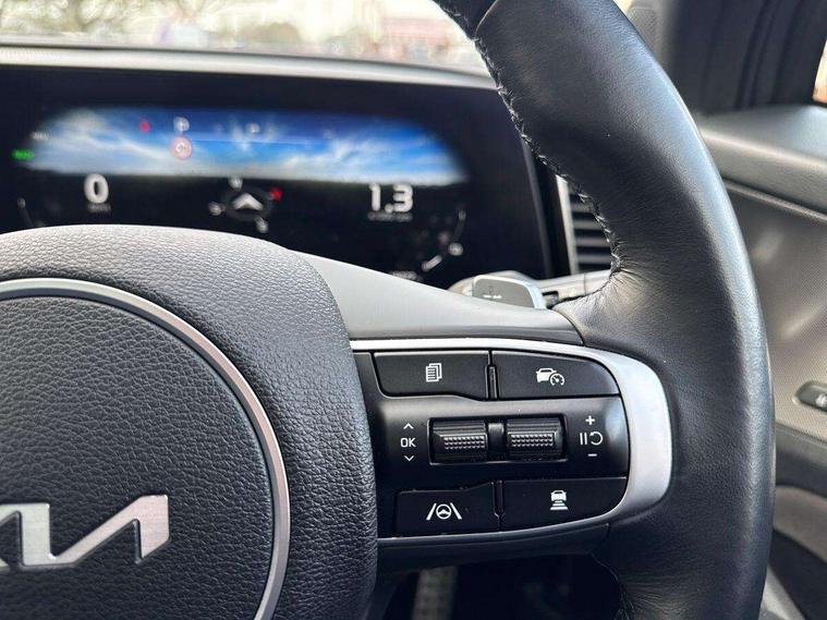 12.3" Display with navigation, 12.3" supervision colour cluster display, 360 degree around view monitor, Apple car play/Android Auto with voice control, Blind spot collision avoidance assist, Blind spot view monitor, Drive mode selector, E-call, Forward collision avoidance assist (FCA) - city/pedestrian/cyclist/junction covering, Front and rear parking sensors, Highway Driving Assist (HDA), Intelligent speed limit assist, Kia Connect (UVO), Lane Following Assist (LFA), Lane keep assist, Low washer fluid warning, Parking collision avoidance assist (PCA), Remote smart parking assist, Reversing camera system integrated into centre fascia screen, Smart cruise control with stop and go functionality, Smart power tailgate, Speed sensitive power steering, Trip computer, Windscreen washer level indicator, Wireless Smartphone charger, Intelligent Stop and Go, Terrain mode select (Mud, Snow, Sand), Bluetooth audio streaming, DAB Radio with MP3, Harman Kardon premium sound system, Rear USB port, Steering wheel mounted audio controls, USB C type charging ports on centre console, USB C type charging ports on side of front seats, USB port for connection of a media device, All round electric windows with drivers and front passenger auto up/down function, Automatic headlight control system, Automatic window defogger, Backlite glass heated with timer, Body colour and black bumper with silver accents, Body colour exterior door handles, Body colour radiator upper garnish and door garnish, Dual LED adaptive headlamps, Electric panoramic glass sunroof (Electric one touch with safety function), Electrically adjustable/heated/folding door mirrors with LED indicators, Front and rear chrome skid plates, Gloss black door mirrors, Gloss black radiator grille, Gloss black side sill and wheel arch body mouldings, Glossy black roof rack, High beam assist, Interior electrochromic mirror, LED daytime running lights, LED front fog lamps, LED High mounted stop light, LED rear combination lamp, Rain sensing wipers with aero blades, Rear fog lamp, Rear privacy glass, Rear side wing doors, Rear spoiler, Rear wiper, Satin finished beltline, Silver coloured inserts to bumpers, Tinted rear glass, Trailer stability assist, 10 way driver/8 way passenger electrically power adjustable seats, 12V power socket in front centre fascia and luggage compartment, 3 seat bench in 2nd row, 3 x passenger assist grips, 40/20/40 split folding rear seat, All-round height adjustable headrests, Ambient lighting, Black headlining, Centre console storage box, Cupholders in rear armrest, D-Shaped sports leather steering wheel and perforated inserts with GT-Line logo, Door courtesy lamps, Drink holder at centre armrest, Driver and front passenger side sunvisors with illuminated vanity mirrors, Driver seat memory function, Drivers seat power lumbar support, Front and rear door storage, Front seat and rear pockets, Front/rear centre armrests, Gear shift indicator, Glovebox illumination, Heated front and outer rear seats, Heated steering wheel, Interior door lock/unlock function, ISOFIX Child seat top tethers and anchor fixings outer rear seats, LED interior personal lamp, LED lighting in overhead console, Luggage area LED light, Luggage area load cover, Luggage net with hooks, Metal paint interior door handles, Paddle shift controls, Rear cabin light, Rear coat hooks, Single front passenger seat, Sports pedals, Suede leather upholstery, Three zone climate control, Tilt/telescopic adjustable steering wheel, Ventilated front seats, Ventilation ducts to rear compartment, Active front headrests, All round 3-point seatbelts, Anti-lock braking system (ABS), Dual front side airbags, Dual horn, Electronic parking brake, Electronic stability control with downhill brake control, Front passenger airbag cut-off switch, Front seatbelt pretensioners + load limiters, Height adjustable front seatbelts, Hill start assist control (HAC), Impact sensing auto door unlocking, Multi collision brake assist, Rear door child safety locks, Rear seat alert system, Traction control, Twin curtain airbags, Twin front airbags, Tyre pressure monitoring system, Advanced anti-theft system including immobiliser and alarm, Door deadlocks, Engine Start/Stop Button with Smart Entry System, Locking wheel nuts, Speed sensitive auto door locking, Visible vehicle identification number, Aluminium pattern finish centre fascia and door garnish, 19" GT-Line alloy wheels, Michelin tyres, Tyre mobility kit,