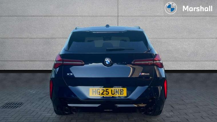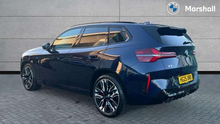 Active guard professional, Attentiveness assist, Automatic operation of tailgate, BMW ConnectedDrive online services, BMW iDrive, BMW Live cockpit plus, BMW Online services, BMW Teleservices, Brake pad wear indicator, Condition based service, Cruise control with brake function + speed limiter, Drive off assistant, Driving Assistant Plus Preparation, Flat tyre monitor, Language version English, My Mode - Personal, Efficient, Sport, Relax, Expressive, Reversing assist camera, Servotronic system, Variable sport steering, Dynamic stability control, Multiple control arm rear axle, Steptronic transmission with gearshift paddles, Two-joint strut-type front axle with tension strut, DAB tuner, Personal eSim, 4 tailpipe tips, Adaptive LED Headlights, B-pillar trim panel in black high-gloss, BMW badge on front and rear, BMW M-specific front/rear bumpers and side sills, BMW M-specific radiator grille with horizontal bars in Dark Silver and M logo, Body colour mirror caps, Daytime running lights, Door handles flush to the surface with lock barrel on driver's side, Dynamic brake lights, Electric adjustable and heated door mirrors, Electric window trap release and convenient opening/closing feature, Headlight beam throw control, Heated rear window, Heated windscreen washer jets, High beam assistant, LED 3rd brake light, LED rear lights, LED tail lights, LED turning indicators, Locking of the doors, M-specific Exterior mirrors, Mirror base and mirror blade in satinised aluminium, Mirror triangle in black high-gloss, Model inscription on right tailgate, Rain sensor with automatic headlight activation, Rear side wing doors, Rear wiper, Reversing light, Side window frame in black high-gloss, Sun protection glass, Windscreen wipers, 12v power socket in front centre console and luggage compartment, 2 x USB Type C ports for charging and data transmission (front centre console) and 2 x USB Type C ports for charging (rear centre console), 3 rear headrests, 3 seat bench in 2nd row, 3 zone automatic air conditioning, 40:20:40 split folding rear seat with loading system, Ambient lighting, Anthracite headlining, Electric adjustable seats with memory function, Floor mats in velour, Footrest and pedals in black plastic, Four grab handles integrated in roof lining, Front armrest with integrated control panel, Front centre console trim in black high-gloss, Front head restraints, Front passenger seat, Front sports seats, Glove compartment, i-Size / ISOFIX attachment points on both outer rear seats, with covers in black, Interior door handles in dark chrome, Luggage compartment separating net, M sport leather steering wheel, Multifunction steering wheel, Rear side armrests integrated into door trim, Selector lever with toggle operation, Steering column adjustment, Sun visors with illuminated vanity mirrors, Three upper retaining strap clips integrated into the rear panels of the seat backrests, Through loading system, Two front cupholders and two in the rear center armrest, Wireless charging tray, BMW Iconic Glow exterior package - X3, Connected pro package - X3, Interior and exterior mirror package - X3, M Sport pro pack - X3, 3 point seatbelts, Airbag deployment is controlled with respect to the intensity and scope, Anti-lock braking system (ABS), Automatic hold function, BMW emergency call, Brake assist, Brake drying, Brake energy regeneration, Braking readiness, Central airbag, Child locks on rear doors, Cornering brake control (CBC), Crash Sensor - activation of central locking release, hazard warning light and interior lighting, Driver and front passenger front and side airbags, Dynamic brake control, Electromechanical parking brake, Front and rear disc brakes, Head airbags, Integrated braking system, M sport seatbelt, Post Crash Collision Warning with braking function, Trailer stability control, Tyre pressure sensor, Warning triangle, Alarm system, Closing system with central locking, Comfort access system with BMW digital key plus, Locking wheel bolts, Start/stop button with keyless motor start with acoustic drive, Tyre repair kit plus,