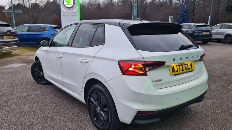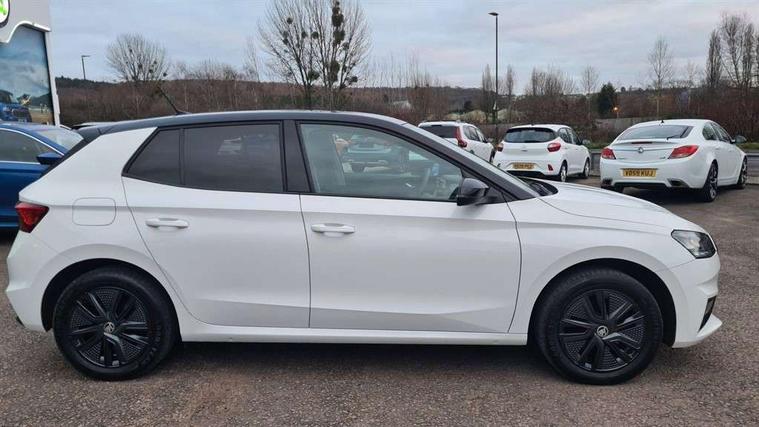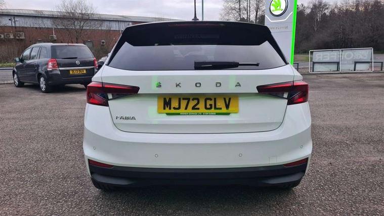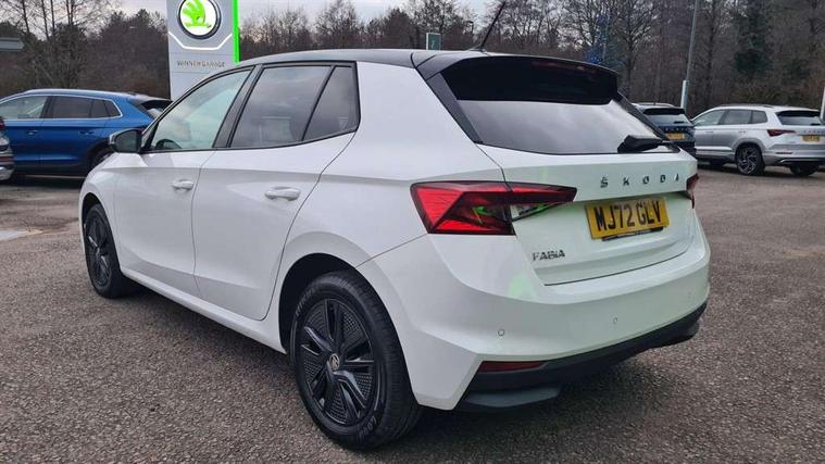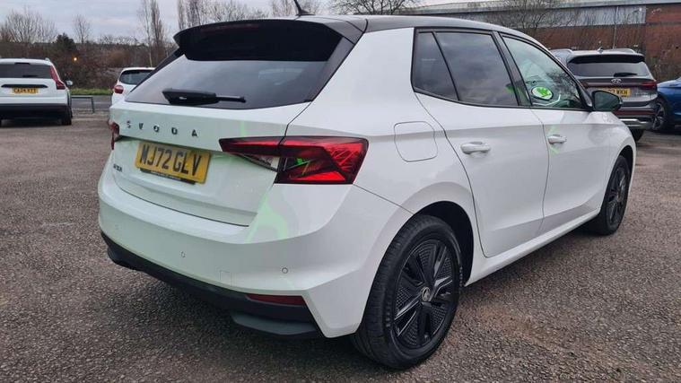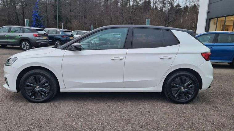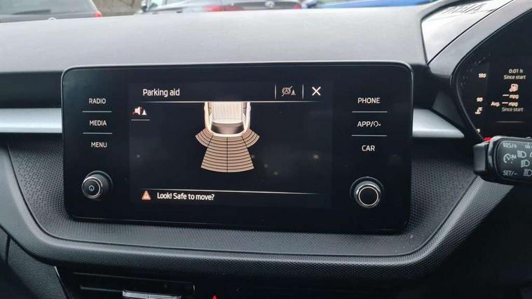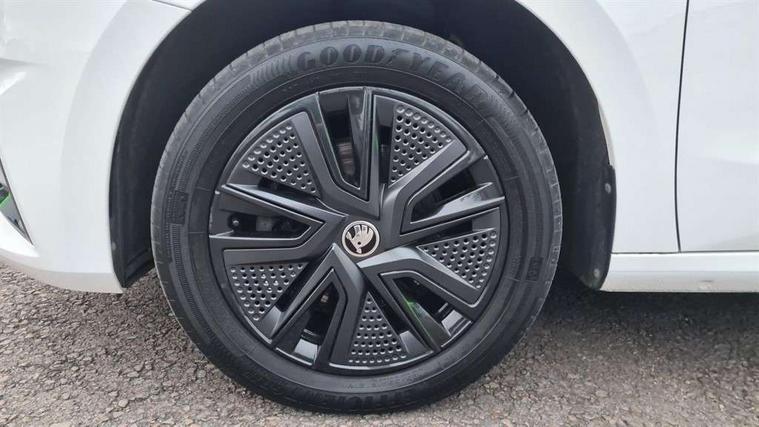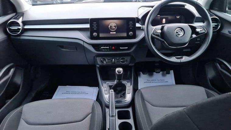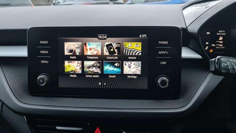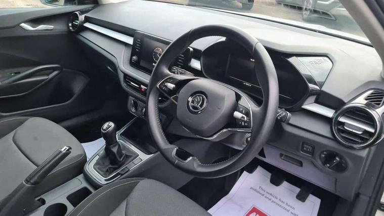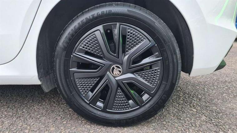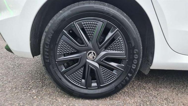Bluetooth connection, Driver alert system - DAS, Electromechanical power steering, Exterior temperature gauge, Lane assist including road edge detection, Service interval indicator, Virtual cockpit with 10.25" colour display, 2x USB-C in the front (for data transmission and charging), 6 Speakers (4 in front and 2 in rear), Auxiliary socket for external MP3 player, Bolero radio with 8" colour display, DAB digital radio reception, Basic rear lights, Body coloured bumpers, Dimming rear view mirror with black frame, Door mirror integrated indicators, Electrically adjustable and heated door mirrors, Electrically adjustable front windows with function auto up/down, Front window wiper intermittent control, Headlight range control - Automatic, Ice scraper in fuel cap, LED daytime running lights with coming and leaving home feature, Mechanical adjustable rear windows, Privacy glass, Rear LED fog light, Rear side wing doors, Rear window wiper with washing nozzles, Roof mounted spoiler, SKODA tailgate lettering in chrome, Third brake light, 3 rear headrests, Backrest split and folding, Central console with fixed cup holder and storage box, Chrome handbrake release button, Fabric upholstery, Gearshift knob/handle in leather, Grain satin black interior door handles, Hand brake lever handle in leather, Height adjustable front headrests, Height adjustable steering wheel, ISOFIX and TopTether anchorage points to the outer rear seats, ISOFIX and TopTether on the front passenger seat, Luggage compartment lighting, Pollen filter, Rear seat bench unsplit, Single front passenger seat, Storm grey headlining, Sun visors with mirror and airbag label on passenger side, Ticket holder, Umbrella in drivers door, 3-point height adjustable front seats belts with pretensioner and force limiter, Automatic warning lights in case of crash, Driver and passengers airbag with switch off function, e-Call+, ESC including ABS, MSR, ASR, EDS, HBA and XDS, Front and rear seat belt warning, FRONT ASSIST (AEB City and AEB Inter Urban), Front side airbags, Head airbags, One tone horn, Pedestrian protection, Three rear 3-points safety seat belts with pretensioner and force limiter including stop function for outer rear seat belts, Tyre pressure monitoring system, Anti-theft alarm system including immobiliser, interior monitoring, backup horn, and towing protection, Anodized cross line upper decorative trim, Colour Edition air vents, Grain satin black central console cover, Grain satin black lower decorative trim, Satin black door and side trim panel in front, Anti-theft wheel bolts protection, Super-low rolling resistance tyres,