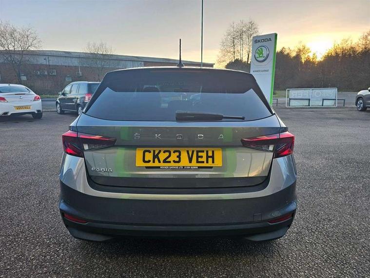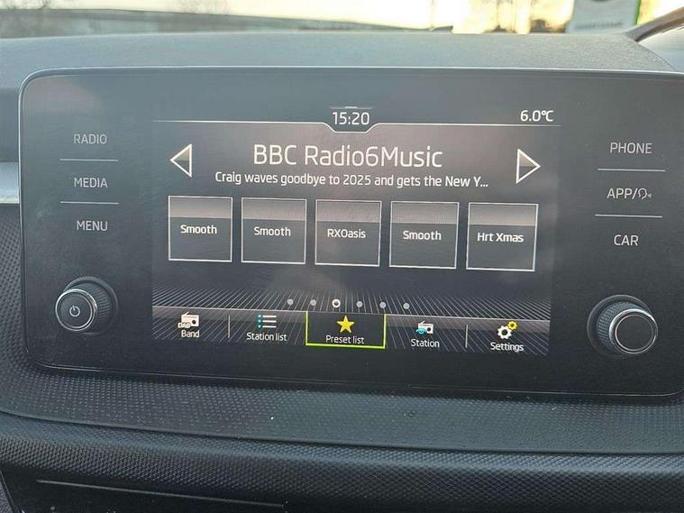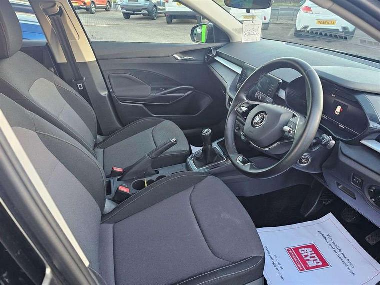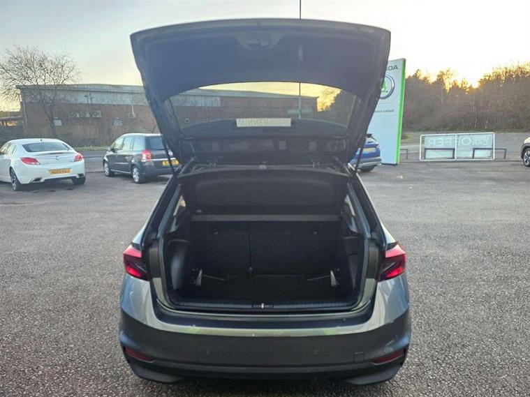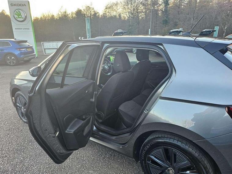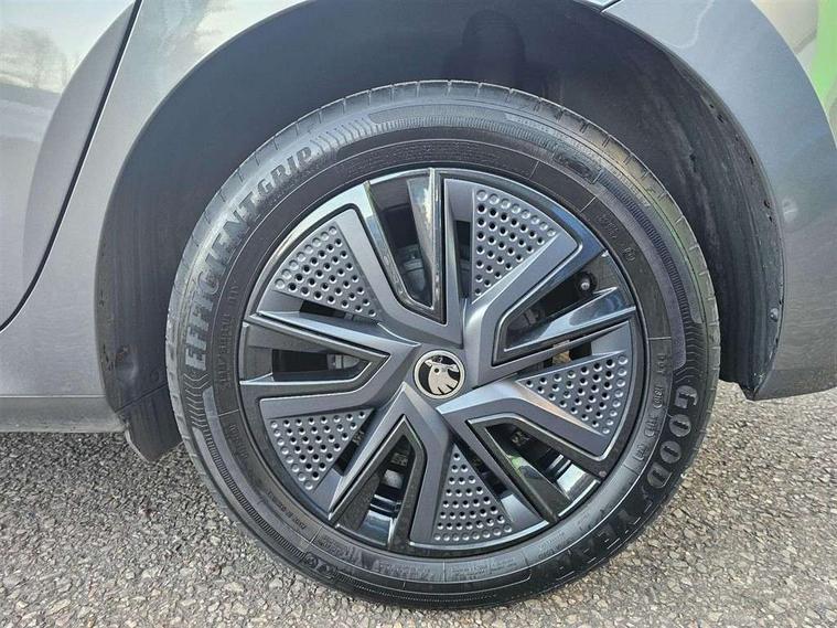 Bluetooth connection, Driver alert system - DAS, Electromechanical power steering, Exterior temperature gauge, Lane assist including road edge detection, Service interval indicator, Virtual cockpit with 10.25" colour display, 2x USB-C in the front (for data transmission and charging), 6 Speakers (4 in front and 2 in rear), Auxiliary socket for external MP3 player, Bolero radio with 8" colour display, DAB digital radio reception, Basic rear lights, Body coloured bumpers, Dimming rear view mirror with black frame, Door mirror integrated indicators, Electrically adjustable and heated door mirrors, Electrically adjustable front windows with function auto up/down, Front window wiper intermittent control, Headlight range control - Automatic, Ice scraper in fuel cap, LED daytime running lights with coming and leaving home feature, Mechanical adjustable rear windows, Privacy glass, Rear LED fog light, Rear side wing doors, Rear window wiper with washing nozzles, Roof mounted spoiler, SKODA tailgate lettering in chrome, Third brake light, 3 rear headrests, Backrest split and folding, Central console with fixed cup holder and storage box, Chrome handbrake release button, Fabric upholstery, Gearshift knob/handle in leather, Grain satin black interior door handles, Hand brake lever handle in leather, Height adjustable front headrests, Height adjustable steering wheel, ISOFIX and TopTether anchorage points to the outer rear seats, ISOFIX and TopTether on the front passenger seat, Luggage compartment lighting, Pollen filter, Rear seat bench unsplit, Single front passenger seat, Storm grey headlining, Sun visors with mirror and airbag label on passenger side, Ticket holder, Umbrella in drivers door, 3-point height adjustable front seats belts with pretensioner and force limiter, Automatic warning lights in case of crash, Driver and passengers airbag with switch off function, e-Call+, ESC including ABS, MSR, ASR, EDS, HBA and XDS, Front and rear seat belt warning, FRONT ASSIST (AEB City and AEB Inter Urban), Front side airbags, Head airbags, One tone horn, Pedestrian protection, Three rear 3-points safety seat belts with pretensioner and force limiter including stop function for outer rear seat belts, Tyre pressure monitoring system, Anti-theft alarm system including immobiliser, interior monitoring, backup horn, and towing protection, Anodized cross line upper decorative trim, Colour Edition air vents, Grain satin black central console cover, Grain satin black lower decorative trim, Satin black door and side trim panel in front, Anti-theft wheel bolts protection, Super-low rolling resistance tyres,