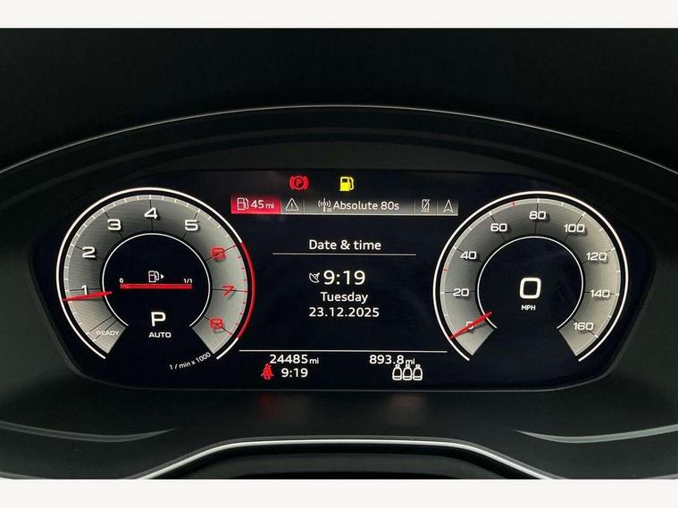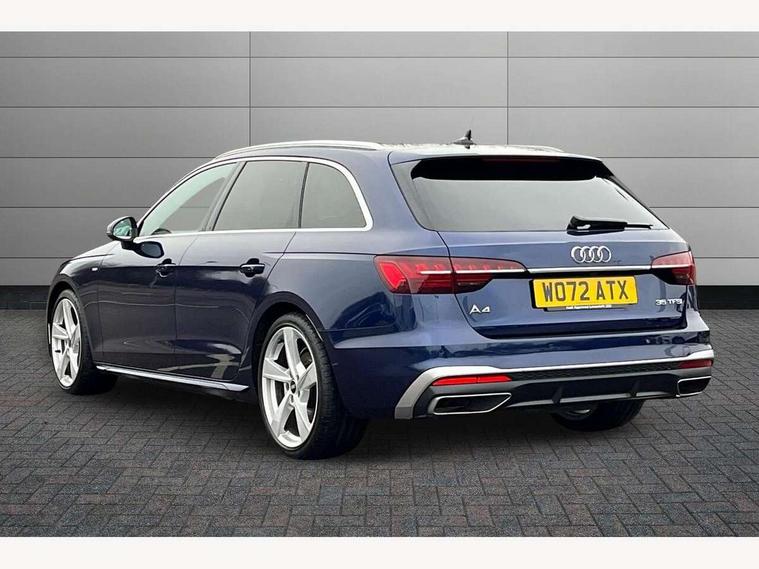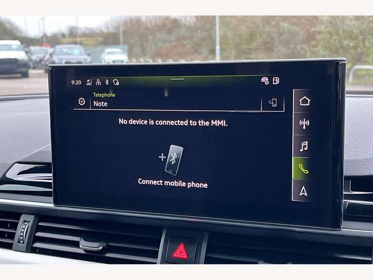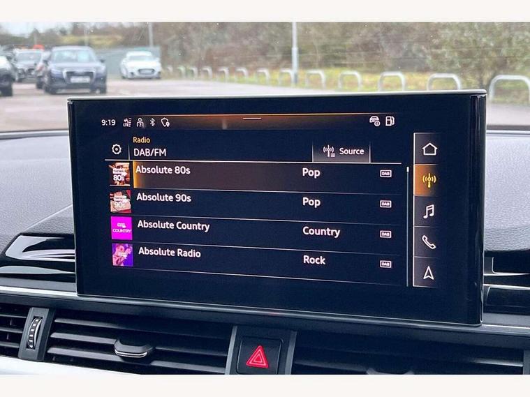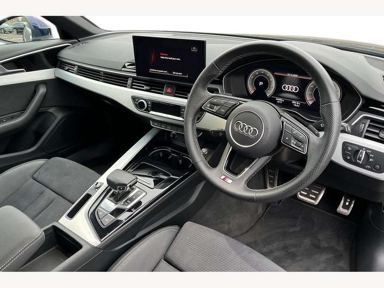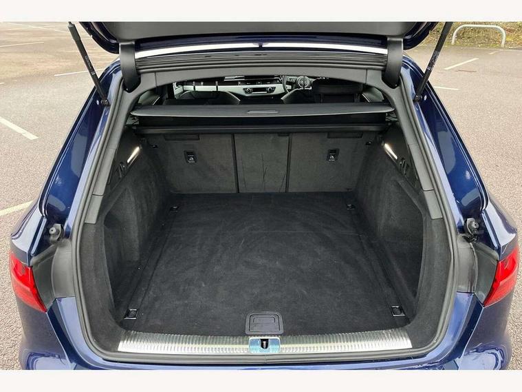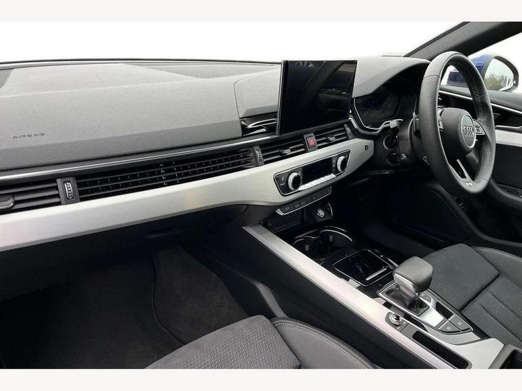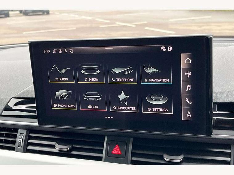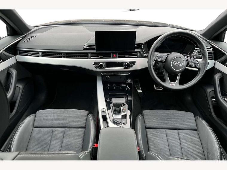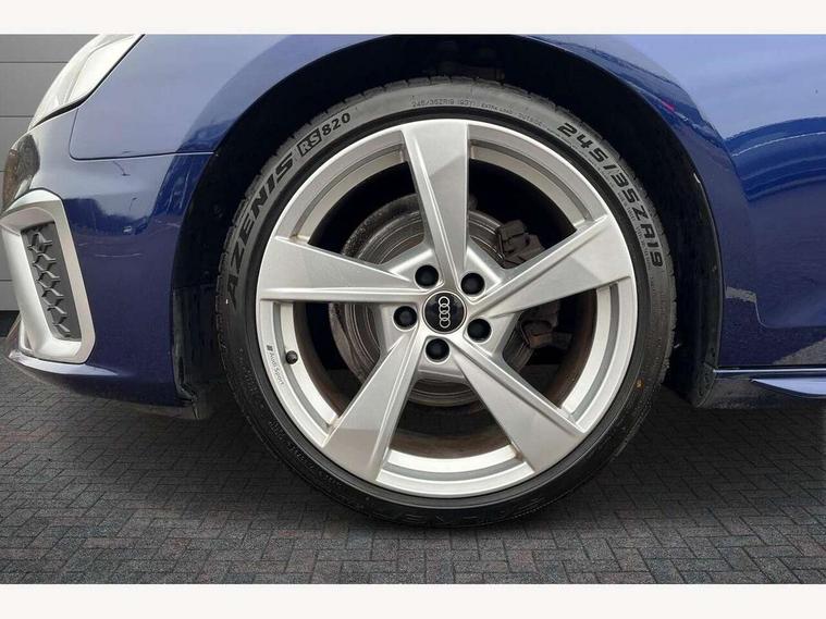Audi connect safety and service (e-call), Audi connect with Amazon Alexa Integration, Audi drive select, Audi smartphone interface, Audi virtual cockpit, Automatic start-stop system with coasting functionality and efficiency programme, Bluetooth interface, Electromechanical power steering, Email, calendar and text messages displayed via MMI, MMI Navigation plus with MMI touch includes 10.1" high resolution colour MMI display, 3D map, Power operated tailgate, Voice control system, 54 litre fuel tank, Sports suspension lowered by 23mm, 2 USB charging ports, 8 passive loudspeakers, DAB digital radio reception, Aluminium roof rails, Auto dimming rear view mirror, Body colour door handles, Body colour front spoiler lip, Body colour side sill trim, Body coloured door mirrors, Electrically folding auto dimming/adjustable/heated door mirrors with LED side indicators and kerb view function for passenger side, Grained matt black side air inlets with matt aluminium silver inlay, High beam assistant, Honeycomb structure radiator grille in grained matt black, LED headlights with LED rear lights + dynamic rear indicators + headlight adjustment and high beam, turning light + LED daytime running lights, LED third brake light, Matt aluminium silver tailpipe trim, Privacy glass, Rain and light sensors, Rear side wing doors, Rear wiper, S Line badges on the front wings, S line front and rear bumpers with side skirts, S Line rear diffuser in matt anthracite black with trim strip in matt aluminium silver, S Line roof edge spoiler, Variable intermittent front wash/wipe, Windscreen with acoustic glazing, 3 spoke high multi-function sports leather steering wheel grips in perforated leather with S badging including paddle shift, 4 way electric lumbar support for driver and front passenger, 40/20/40 split folding 3 rear seat bench in 3 parts with rear centre armrest, Black cloth headlining, Black perforated leather gearknob, Contrast stitching on seats, steering wheel and gear lever gaiter, Deluxe 3 zone electronic climate control, Door sill trims with aluminium inlay, Electric load area cover, Front and rear head restraints, Front centre armrest, Heated front seats, Illuminated door sill trims with S logo, ISOFIX child seat mounting and top tether, Manual seat adjustment, Single front passenger seat, Stainless steel pedals and foot rest, High gloss package - A4, LED Interior light pack - A4/S4, 3 rear seatbelts, 6 airbags - Driver, front passenger, curtain and side windows, Electronic Stabilisation Control (ESC) including ABS, ASR and EDL, Hill hold assist, Multi collision brake assist, Pop-up bonnet for pedestrian protection, Pre sense city, Rear door child safety locks, Seatbelt monitoring, Warning triangle and first aid kit, Anti theft alarm, Anti theft wheel bolts, Central locking, Keyless Go, Matt brushed aluminium inlays, Tool kit, Tyre repair kit,
