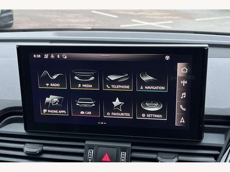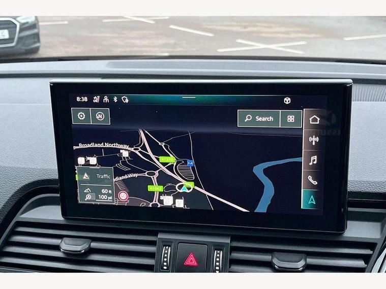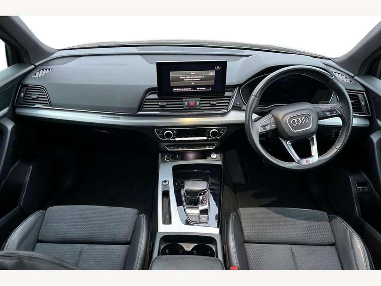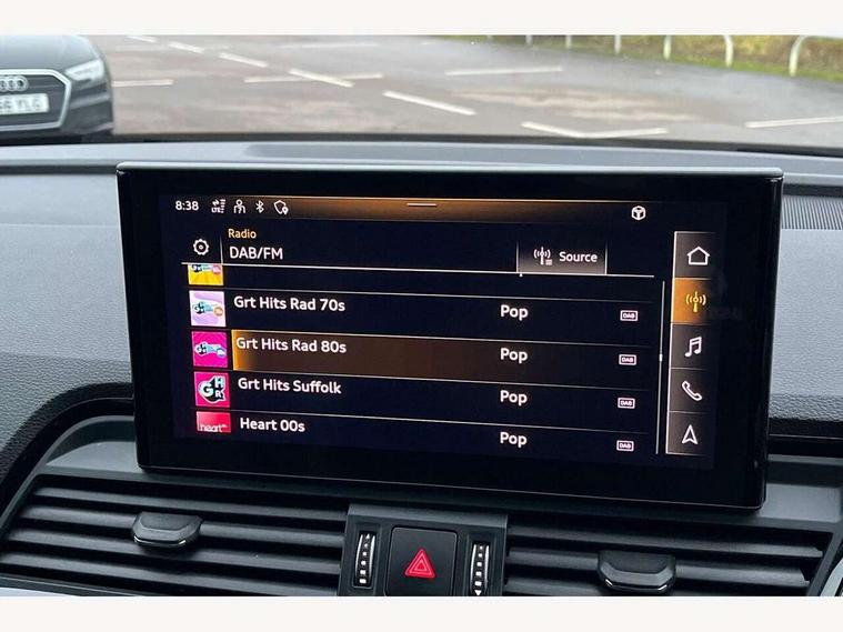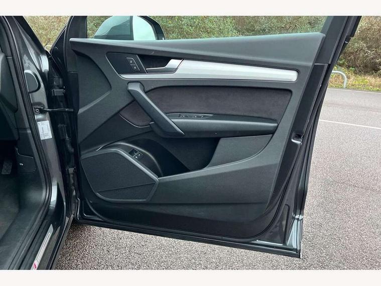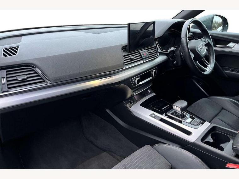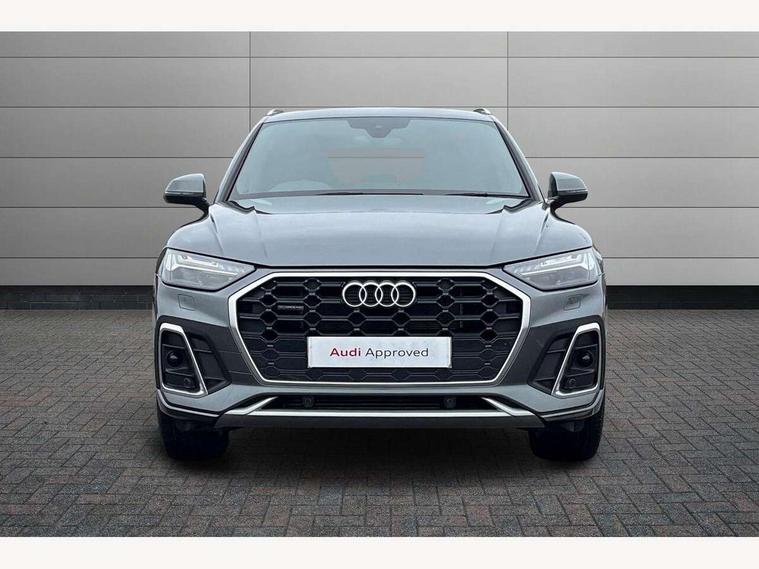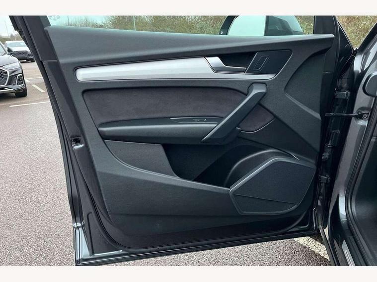 Audi connect safety and service (e-call), Audi connect with Amazon Alexa Integration, Audi drive select, Audi virtual cockpit plus with 12.3" screen and three different layout designs, Audi wireless smartphone interface, Automatic start-stop system with coasting functionality and efficiency programme, Bluetooth interface, Electro - mechanical power assisted steering, MMI navigation plus with 10.1" touch screen, Power tailgate, Reversing camera, Service interval indicator, Voice control system with Audi hotword activation "Hey Audi", 3 pin 10 amp domestic charging cable, 7.4 kW onboard charger, Dynamic suspension, Quattro on demand, Type 2 mode 3 22kW 32 amp charging cable, Type 2 socket for AC charging, 2 x USB charging port with aux input socket, DAB Digital radio, 3rd brake light, Acoustic windscreen, Aluminium roof rails, Audi matrix LED headlights with dynamic front and rear indicators, Auto dimming door mirrors, Auto dimming rear view mirror, Automatic headlights and windscreen wipers, Body colour bumpers, Body colour door mirrors, Body colour rear diffuser with matt aluminium silver surrounds, Body colour underbody protection, Chrome plated exhaust trims, Daytime running lights, Door sills in Selenite silver, Electric adjustable/heated/folding door mirrors, Front air inlet surrounds in aluminium, Front and rear electric windows, Front radiator grille in honeycomb design, Headlight washers, Lower bumpers painted in contrast Manhattan grey, Rear chrome trim strip below lights, Rear privacy glass and rear side windows, Rear side wing doors, Rear wiper, Roof bars, S Line badges on the front wings, S Line front and rear bumpers, S Line rear spoiler, S Line side skirts, 3 rear headrests, 40:20:40 split folding 3 rear bench seat in 2nd row with rear centre armrest, Black cloth headlining, Comfort front centre armrest, Contrast stitching on seats, steering wheel and gear lever gaiter, Deluxe 3 zone electronic climate control, Front/rear floor mats, Gear lever in black leather, Heated front seats, Height adjustable front head restraints, Height/reach adjustable steering column, Illuminated door sill trims with S logo, ISOFIX child seat mounting and top tether, Manual seat adjustment with 4-way electric lumbar support, Rear seat bench plus, Single front passenger seat, Sunvisors with vanity mirrors, Trunk roller cover, High gloss pack - Q5, LED interior light pack - Q5, 3 point seatbelts on all seats, 6 airbags - Driver, front passenger, curtain and side airbags, Electrically operated child locks on rear doors, Electromechanical parking brake, Electronic stabilisation control including ABS, ASR and EDL, Front passenger airbag deactivation, Hill descent control, Hill hold assist, Multi collision brake assist, Pop-up bonnet for pedestrian protection, Pre sense city, Seat belt force limiter, Seatbelt monitoring, Tyre pressure warning, Warning triangle and first aid kit, Anti theft alarm, Anti-theft wheel bolts, Keyless Go access/ignition system, Remote central locking, Matt brushed aluminium inlays, Tool kit, Tyre repair kit,