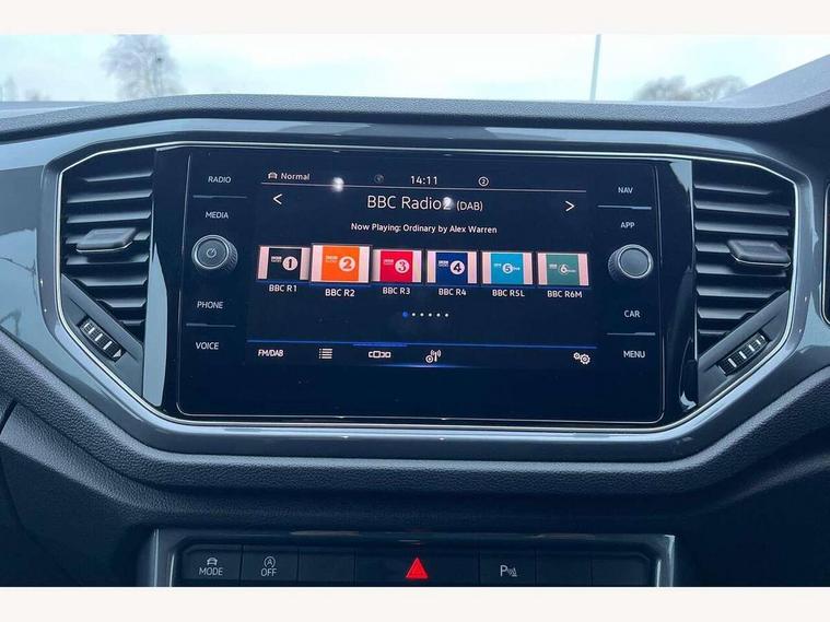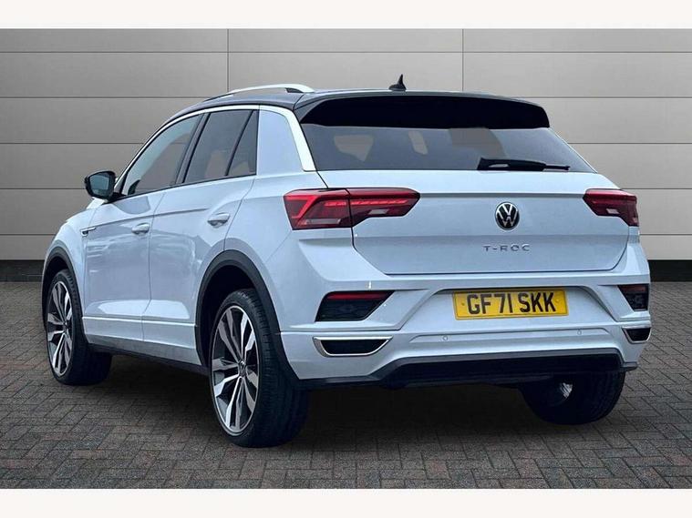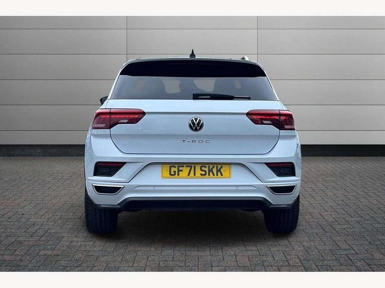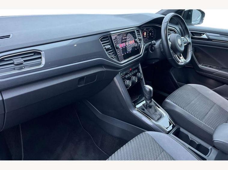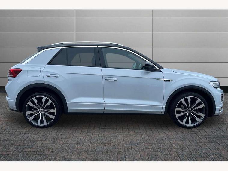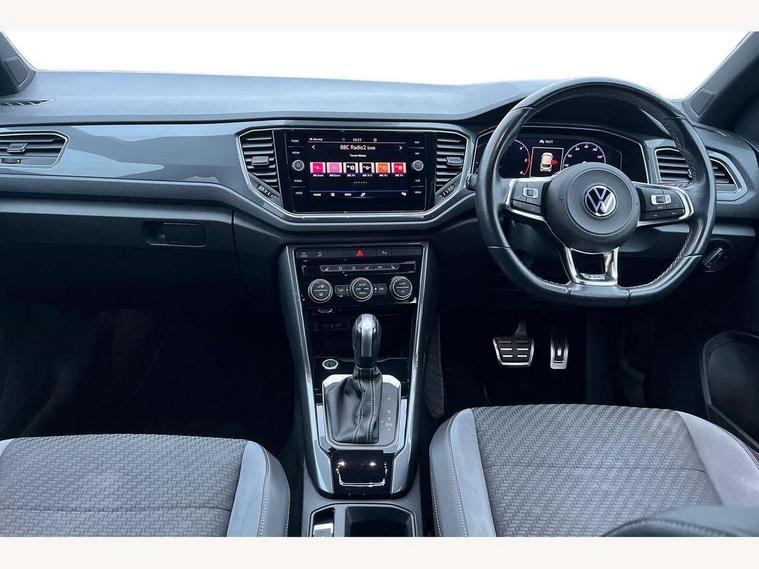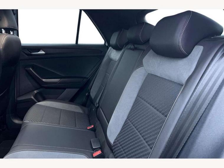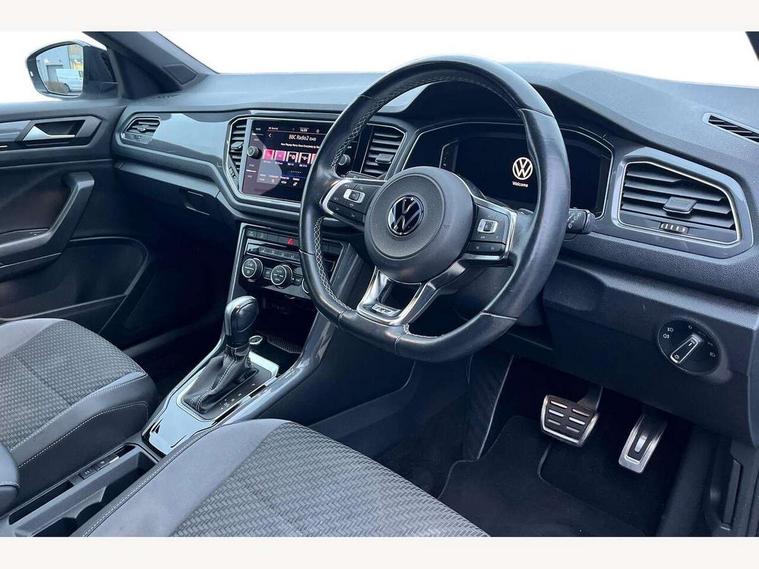 'Lights On' Reminder warning buzzer, Adaptive cruise control, Bluetooth telephone and audio connection for compatible devices, Car information display, Digital Cockpit Pro - Active info display, Driver alert system with audible and visual fatigue detection system, Driver tips and journey analysis, Dusk sensor, Emergency call service, Lane assist with warning text instrument cluster, Modified key software - reduce switch off time for key status change to Long no motion, Multifunction camera, Multifunction computer with visual gear change recommendation for fuel consumption, Navigation system discover media including streaming and internet, Service interval indicator, Think blue trainer driver tips and journey analysis, Traffic sign recognition, Voice activation, Warning sound and light for front seatbelts unfastened, Wireless app connect for apple carPlay, Battery regeneration during braking, Misfuel prevention device for diesel engine, Rear shock absorption for sports version, Start/stop function with battery regeneration, DAB Digital radio, Disk brakes in front, Diversity antenna for FM reception, Music playback - MP3, WMA and AAC files, Premium USB cable in choice of either Apple or Android smartphone compatibility, SD card slot, Simultaneous pairing of 2 compatible mobile devices, SMS functionality - read, compose and send SMS messages using touch-screen display, Storage compartment with longitudinal and height adjustable in armrest and two rear air vents, Three route options - Fast, Short, Eco, Title and cover art display, USB-C Interface and USB charging socket, Auto dimming interior rear view mirror, Automatic coming/leaving home lighting function and daytime running lights, Automatic hazard lights activation under emergency braking, Black grained lower door protectors, Body colored door lower parts, Body colour door handles, Body colour rear roof spoiler, Chrome effect left and right trapezoid exhaust tailpipe fascia surround, Chrome plated moldings, Chrome plated radiator grille inserts, air vent surrounds and light switch surrounds, Chrome trim on upper and lower radiator grille, Dynamic headlight range control with self adjusting whilst driving, Electrically foldable, adjustable and heated door mirrors with puddle lights and reverse activated kerb-view adjustment on passenger's door mirror, External USB type C socket and charging sockets, Front and rear electric windows, Front fog lights with static cornering function, Front windscreen wiper with intermittent wipe and 4 position delay, Fully galvanised body, Heated rear window, Heated windscreen washer jets, High level 3rd brake light, LED darkened rear light clusters, LED headlamps with automatic range adjustment and unique signature LED separate daytime running lights, LED rear number plate lights, LED tail lamp rear comination lamps, Privacy glass, R-Line design body coloured bumpers, Rain sensor, Rear tinted glass from B-pillar backwards approx 65% tinted, Rear wash/wipe with intermittent wipe setting, Silver anodised roof rails, Volkswagen roundel, 12V socket in centre console storage area, 3 rear head restraints, 4 load lashing points in luggage compartment, Aluminium pedals, Black roof lining and sun visors, Branded points of interest, Carbon flag cloth upholstery, Climate control - 2 zone electronic air conditioning with automatic air recirculation and allergy filter, Door and side trim panel, Door and side trim panel in foam film, insert in leatherette, Drawer under drivers seat, Front + rear carpet mats, Front centre armrest, Front cupholders x 2, Front seat back storage pockets, Front sports seats with R-Line logo on seat backrest, Glovebox, Heated front seats, Height adjustable front seats, Height/reach adjust steering wheel, Instrument lighting, white adjustable panel illumination, Interior light delay, Interior light in footwell, Isofix easy fit child seat preparation for 2 outer rear seats, Leather gearshift knob, Leather multi function sport steering wheel with gear change selection via paddle shift on steering wheel, LED interior light with switch off delay/dimmer and 2 front/rear LED reading lights, Load through provision with single cup holder when folded down, Luggage compartment cover, removable, Luggage compartment lighting, R Line badge, Scuff plates in door apertures, Split folding rear seat backrests with centre armrest, Stainless steel pedals, Storage compartment in left and right luggage area, Storage compartment in rear doors, Storage compartments in driver and front passenger doors, Sunvisors with illuminated vanity mirrors, Unique R Line door sill protectors, White ambient lighting, R line styling pack - T-Roc, Winter pack - T-Roc, 3 rear three point seatbelts, ABS, Curtain airbags, Driver and front passenger safety-optimised head restraints, Drivers and front passengers airbags with passengers deactivation switch, Drivers seatbelt reminder, Electronic parking brake with auto hold, Electronic stability control (ESC) includes ASR, EDL, EDTC and trailer stabilisation function, Front assist with city emergency braking and pedestrian monitoring, Front seat side impact airbags, Hill start assist, Predictive pedestrian protection, Rigid safety cell with front and rear crumple zones, Single tone horn, Three point height adjust front seatbelts + pretensioners, Tyre pressure loss indicator, Ventilated front and rear disc brakes, Volkswagen roadside assistance, Alarm with remote central locking and interior protection, Electronic engine immobiliser, Remote central locking with SAFELOCK, radio remote control with 2 remote control folding keys, Shadow grey decorative inserts in dash, centre console and door panel, 19" Suzuka alloy wheels with low rolling resistance tyres and anti wheel bolts,