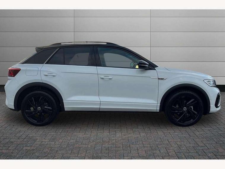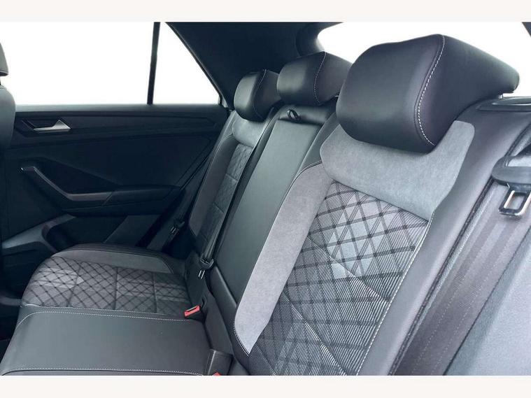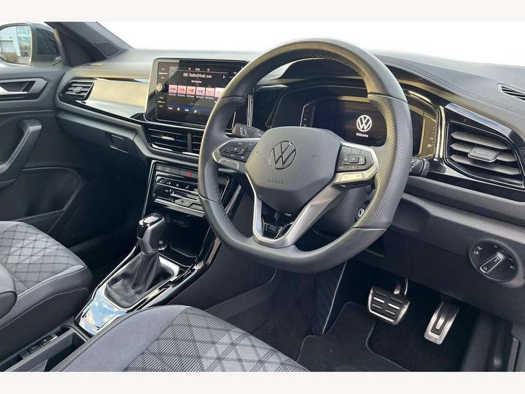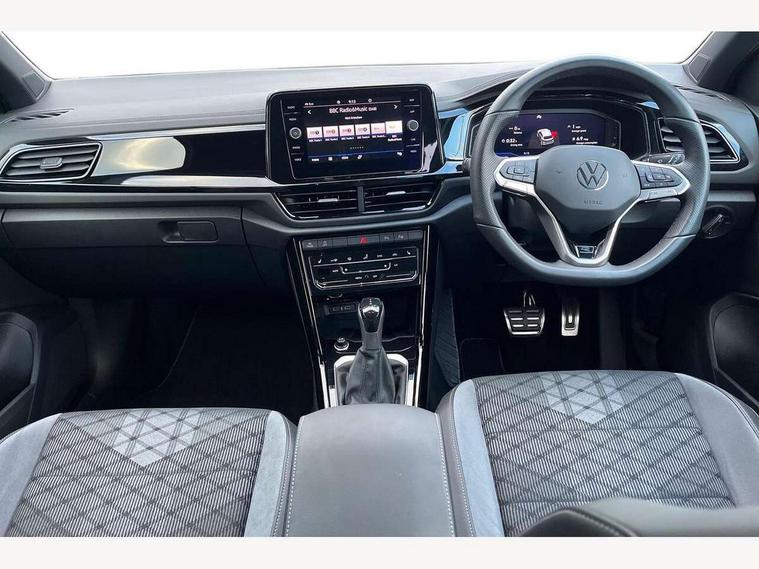 10.25" Digital cockpit pro, Advanced driver attention and drowsiness monitor, Emergency call service, Lane keeping system Lane Assist, Mobile phone interface, Modified key software - reduce switch off time for key status change to Long no motion, Online services, Park assist including front and rear parking sensors, Power assisted speed sensitive steering, Service interval indicator, Tailgate/trunk lid release from outside, Think blue trainer driver tips and journey analysis, Warning sound and light for front seatbelts unfastened, Wireless app connect, Battery regeneration during braking, Rear shock absorption chassis with increased ride height, Start/stop function with battery regeneration, DAB Digital radio, Diversity antenna for FM reception, Front and rear 6 speakers, Music playback - MP3, WMA and AAC files, Premium USB cable in choice of either Apple or Android smartphone compatibility, SD card slot, Simultaneous pairing of 2 compatible mobile devices, Title and cover art display, We Connect and We Connect Plus functionality, Auto dimming interior rear view mirror, Automatic hazard lights activation under emergency braking, Automatic headlight control with LED separate daytime running lights with coming/leaving home function, Dynamic cornering light, Electrically adjustable and heated door mirrors, Extended roof spoiler, Exterior mirrors aspherical on driver side, convex on front passenger side, External USB type C socket and charging sockets, Front windscreen wiper with intermittent wipe and 4 position delay, Heated rear window, Illuminated front grille, IQ LED matrix headlights, LED 3rd brake light, LED rear number plate lights, LED rear tail lights with dynamic turn signal, Light mode for poor weather, rain, fog or snow, Power windows with comfort operation and circuit breaker, R-Line design body coloured bumpers, Rain sensor, Rear exhaust tailpipe, Rear fog light on one side and reversing lights on both sides, Rear side wing doors, Rear wash/wipe with intermittent wipe setting, Remote electrically foldable door mirrors, puddle lights and reverse activated passenger's door mirror, 12V power socket in centre console, 3 rear head restraints, 3 seat bench in 2nd row, 4 load lashing points in luggage compartment, Air care climatronic air conditoning system with active combination filter and 2-zone temperature control, Artvelours cloth upholstery, Black roof lining, Chrome plated radiator grille inserts, air vent surrounds and light switch surrounds, Door and side trim panel with leatherette insert, Drawer under drivers seat, Driver seat height adjust, Driver's seat lumbar support, Front + rear carpet mats, Front centre armrest, Front comfort sports seats, Front cupholders x 2, Front footwell illumination, Front reading light, Front scuff plates with R Line logo, Front seat back storage pockets, Glove compartment door with light, Instrument lighting, white adjustable panel illumination, Interior ambient lighting and surround lighting, Interior light delay, Isofix child seat preparation, Leather gearshift handle, Leather wrapped multifunction steering wheel with paddle shift, Load-through provision with cup holder when folded down ('Unsplit rear seat bench, split folding backrest, with centre armrest), Luggage compartment lighting, Non-folding front passenger seat backrest, Passenger seat height adjuster, Passenger seat lumbar support, Single front passenger seat, Stainless steel pedals, Storage compartment in left and right luggage area, Storage compartment in rear doors, Storage compartments in driver and front passenger doors, Sunvisors with illuminated vanity mirrors, Variable boot floor, height adjustable and removable, Winter pack without heated windscreen washer jets - T-Roc, 3 point height adj front seatbelts + pretensioners, 3 point seatbelts in outer rear with ECE label, ABS, Child locks on rear doors, City emergency braking and pedestrian monitoring, Driver and front passenger airbag with front passenger airbag deactivation, Driver and front passenger safety-optimised head restraints, Drivers seatbelt reminder, Electronic parking brake, Electronic Stability Control (ESC) inc EDL (Electronic Differential Lock) and ASR (Traction Control), Front and rear passengers curtain airbag system including front side airbags, Front disc brakes, Hill start assist, Predictive pedestrian protection, Rear disc brakes, Two tone horn, Tyre pressure loss indicator, Volkswagen roadside assistance, Tool kit, Trims for alloy wheels, Tyre mobility kit including compressor and sealing foam,