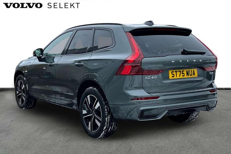 11.2" centre console touch screen, 12.3" Progressive Driver Display, 360 degree surround view parking camera with side proximity sensors, Adaptive cruise control, Adjustable steering wheel force, Android auto (Wired), Apple carplay (wired), Bluetooth handsfree system, Drive mode settings, Driver alert control with lane keeping aid, Emergency services call system, Front and rear park assist, Google Automotive Services, Intelligent speed assistance, Oncoming Lane Mitigation, PAS, Power operated tailgate with handsfree opening and closing, Service interval indicator, Speed limiter, Speed sensitive steering, Trip computer, Volvo cars services with app, Volvo on call with App, Wireless/Inductive Mobile Phone Charging, 2 phase on board charger 6.4kW (home charging limited to 3.7kW), 6m 3 phase 16amp Type 2 / mode 3 charge cable, 8 speed automatic transmission with start/stop + manual change functions, Electric rear axle drive, Recharging port located in nearside front wing, DAB Digital radio, Low speed exterior sound speaker, Premium Sound by Harman Kardon, dirac unison, dolby pro logic II surround sound, 13 speakers/600W output and fresh air subwoofer, Steering wheel remote infotainment controls, Adaptive brake lights with high level LED brake lights, Auto dimming interior + exterior mirrors, Automatic headlight levelling system, Automatic LED Headlights + Active high beam incorporating daytime running lights, Electric adjustable/heated/auto power folding door mirrors, Electric front+rear windows, Front aluminium tread plates, Heated front windscreen, High gloss black door mirrors and window surround, High gloss black front and rear bumper decoratives, High gloss black mesh front grille with high gloss black surround, Home safe and approach lighting, Integrated roof rails in high gloss black, Puddle lights, Rain sensor with automatic windscreen wiper activation, Rear side wing doors, Rear wiper, Roof antenna, Roof spoiler, Tinted windscreen, Visible VIN plate, 12V socket in front tunnel console and luggage compartment, 2 zone electronic climate control with Clean zone air quality system and pollen filter, 3 seat bench in 2nd row, 3 Spoke tailored steering wheel with chrome trim, A-pillar parking ticket holder, Air purifier particulate matter (PM) 2.5 filter, B Pillar ventilation, Bright metal luggage scuff plate, Centre console cupholders and storage, Charcoal floor mats, Front and rear courtesy lights, Front and rear door pocket illumination, Front cupholder illumination, Front footwell illumination, Front reading lights, Front seat cushion extensions, Glovebox compartment with illumination, Head restraints for all seats, Heated front seats, Heated steering wheel, Height/reach adjustable steering column, Illuminated luggage compartment, Illuminated vanity mirrors + ticket holder, Inner door release handle illumination, ISOFIX attachment on outer rear seats, Load cover, Load protection net, Multi directional lumbar support, Power driver seat with memory + exterior mirrors memory, Power height adjustable passenger seat, Power passenger seat with memory, Quilted nordico leather upholstery, Rear armrest with cupholder, Rear footwell and front and rear side step illumination, Rear reading lights, Rear seat concealed storage, Single front passenger seat, Tailgate illumination and ambient door lighting, Underfloor stowage compartment, Versatile split folding rear seat - 60/40, Driver assist pack without Adaptive cruise control - XC60, 5 three point seatbelts, City safety with steering support with Pedestrian + cyclist + front collision warning with full auto brake and rear auto brake, Drivers knee airbag, Dual stage driver/passenger airbags, Electronic parking brake with auto hold, First aid kit, Front seats SIPS airbags, Hill descent control - Off-road drive mode, Hill start assist, IC (Inflatable Curtains) - Full Length, Passenger airbag cut-off device, Power child locks on rear doors, Road sign information display, Run off Road Mitigation, Run off Road Protection, Seatbelt reminder and pretensioners, SIPS (Side Impact Protection System), Slippery road and hazard light alert, Stability and Traction Control with Spin control, Engine Drag Control and Corner Traction Control, Tyre pressure monitoring system, Vehicle deceleration control with Anti-lock Brake System, Electronic Brake Distribution and Emergency Brake Assist, Warning triangle, WHIPS whiplash protection system - front, Anti-theft alarm including immobiliser/volume sensor + level sensor, Key integrated remote control central locking + fuel flap with deadlocking system and auto open/close power windows, Keyless Drive (includes Keyless Entry and Keyless Start), Locking wheel nuts, Private locking for tailgate, Summer tyres, Tyre sealant kit + 12v compressor,