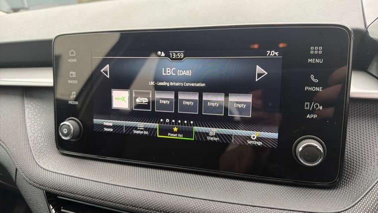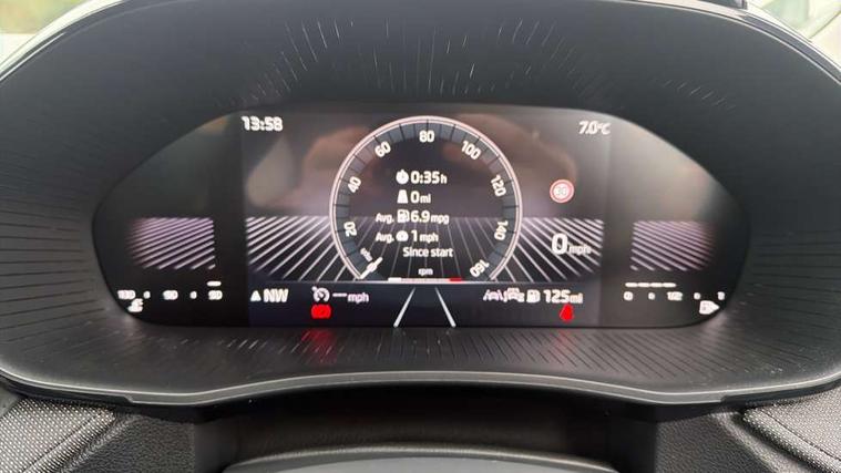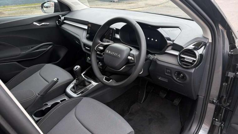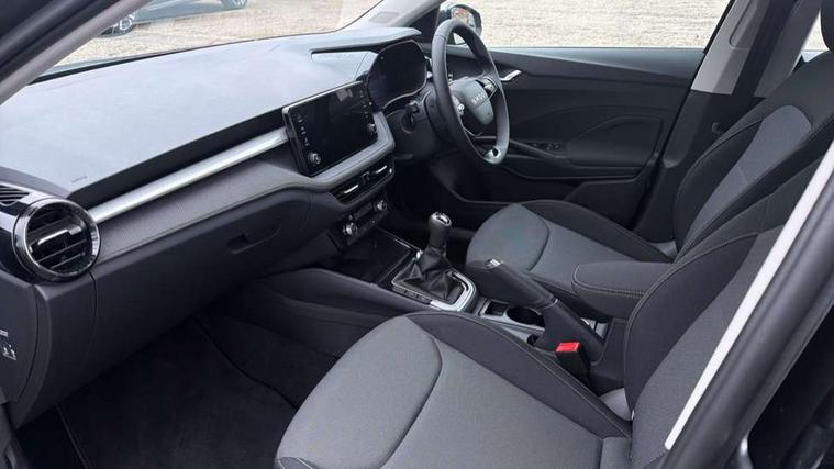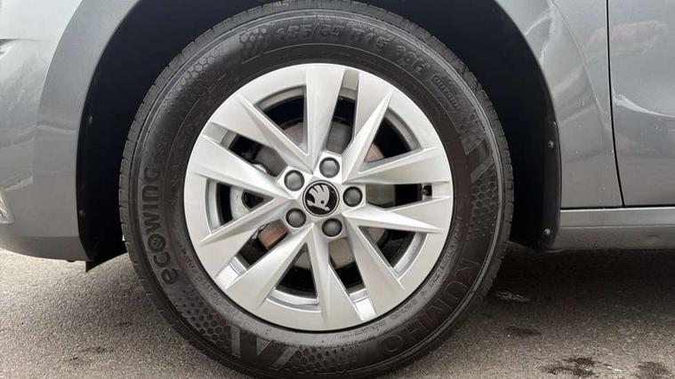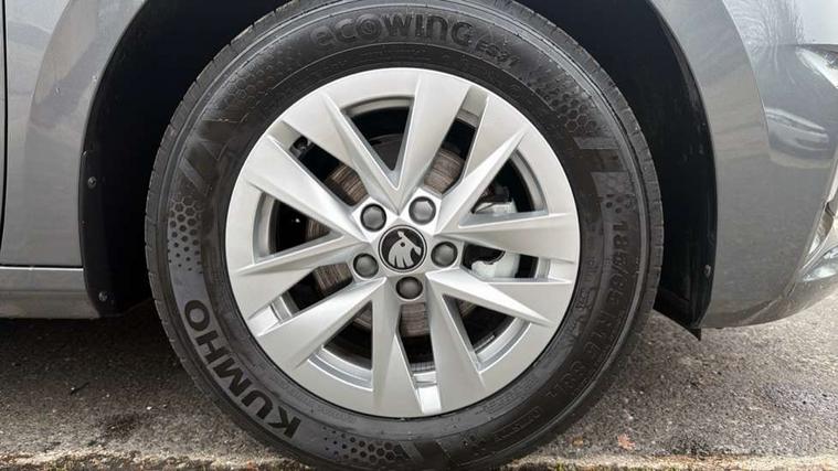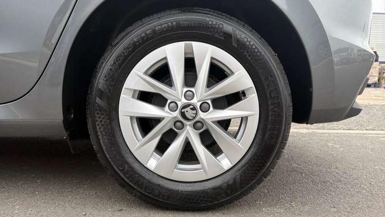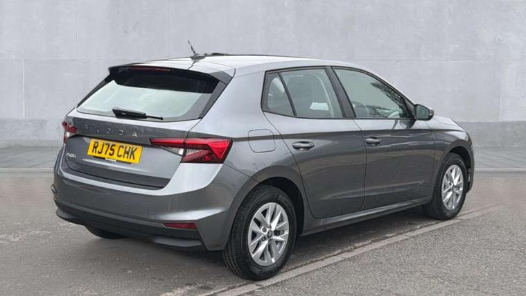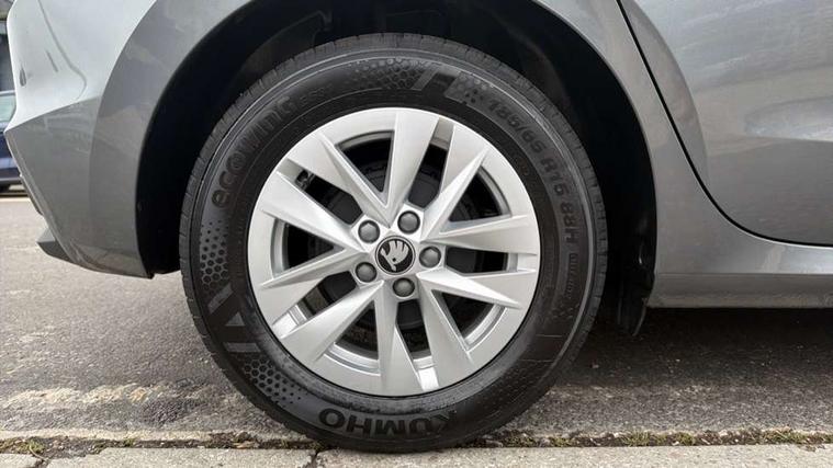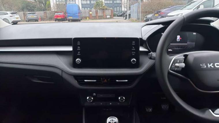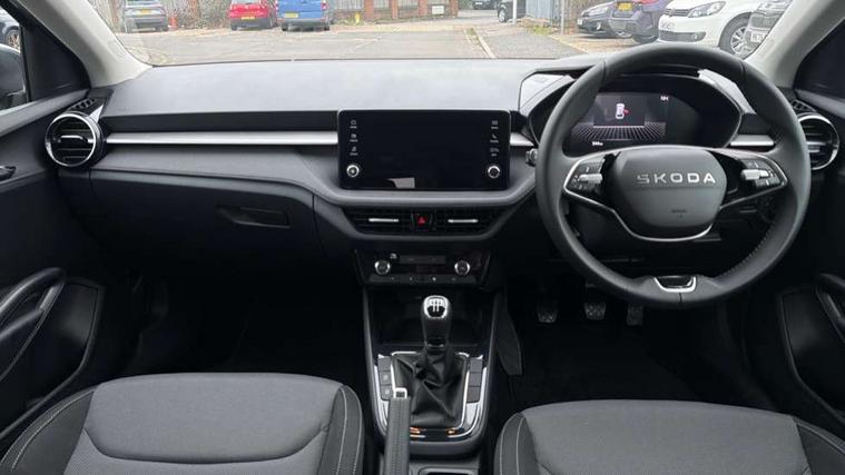 8" Digital instrument display, Advanced driver attention and drowsiness monitor, Bluetooth connection, Driver alert system, Electromechanical power steering, Exterior temperature gauge, Service interval indicator, Traffic sign recognition, Wireless SmartLink for Apple CarPlay and Android Auto, 6 Speakers (4 in front and 2 in rear), 8.25" Skoda infotainment touchscreen display, Auxiliary socket for external MP3 player, DAB digital radio reception, Auto dimming rear view mirror, Body colour door mirrors, Body coloured bumpers, Door mirror integrated indicators, Front and rear electric windows, Front window wiper intermittent control, Headlight range control - Automatic, LED 3rd brake light, LED daytime running lights with coming and leaving home feature, LED rear lights, Rear LED fog light, Rear side wing doors, Rear window wiper with washing nozzles, Roof mounted spoiler, SKODA tailgate lettering in chrome, Unique dark chrome design logo on alloy wheels, 2 reading lights in front and 2 reading lights in rear, 3 rear headrests, Backrest split and folding, Central console with removable cup holder and storage box, Chrome handbrake release button, Dual zone air conditioning with climatronic electronic control, Fabric upholstery, Front centre armrest, Gearshift knob/handle in leather, Grain satin black interior door handles, Hand brake lever handle in leather, Height adjustable front headrests, Height adjustable front seats, Height adjustable steering wheel, ISOFIX and TopTether anchorage points to the outer rear seats, ISOFIX and TopTether on the front passenger seat, Luggage compartment lighting, Manually adjustable lumbar support in front seats, Pollen filter, Rear seat bench unsplit, Single front passenger seat, Skoda lettering on steering wheel, Storm grey headlining, Sun visors with mirror and airbag label on passenger side, Textile floor mats, Ambient lighting pack - Fabia Hatchback, 3-point height adjustable front seats belts with pretensioner and force limiter, Automatic warning lights in case of crash, Driver and passengers airbag with switch off function, e-Call+, ESC including ABS, MSR, ASR, EDS, HBA and XDS, Front and rear seat belt warning, FRONT ASSIST (AEB City and AEB Inter Urban), Front side airbags, Head airbags, One tone horn, Pedestrian protection, Three rear 3-points safety seat belts with pretensioner and force limiter including stop function for outer rear seat belts, Tyre pressure monitoring system, Anti-theft alarm system including immobiliser, interior monitoring, backup horn, and towing protection, Central locking with radio remote control, interior controls, SAFE function and 2 foldable keys, Black painted air vents, Grain satin black central console cover, Metallic grey upper decorative trim, Satin black door and side trim panel in front, Textile Kota grey lower decorative inserts, Anti-theft wheel bolts protection, Super-low rolling resistance tyres,