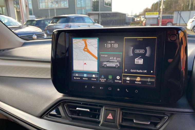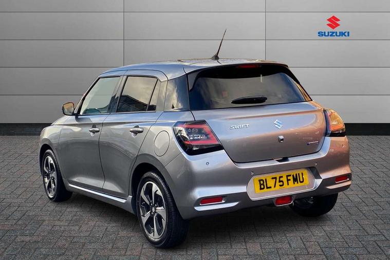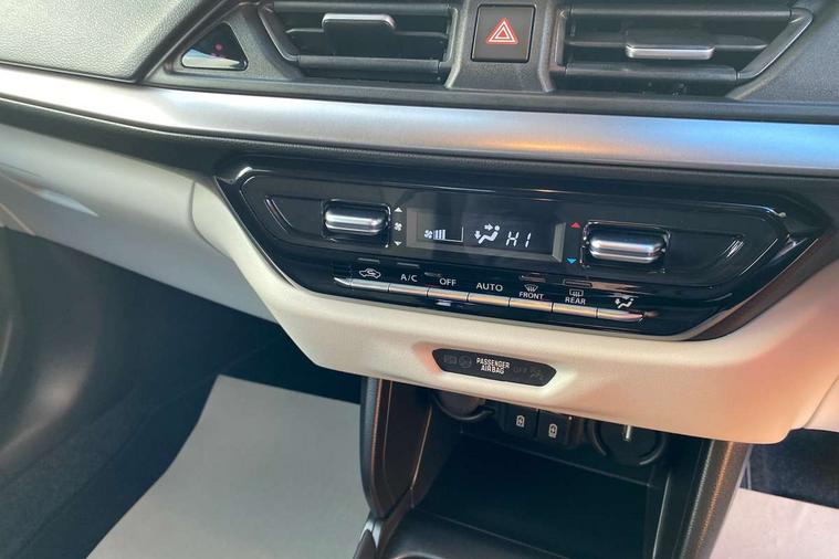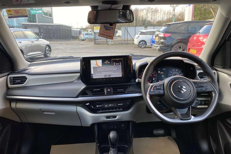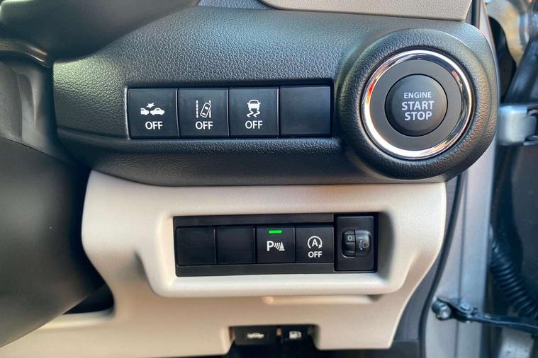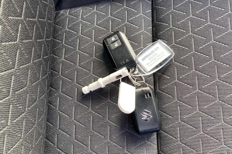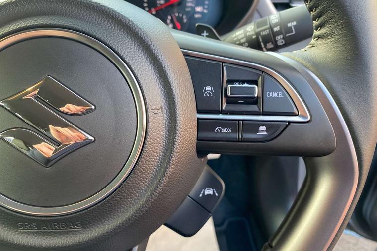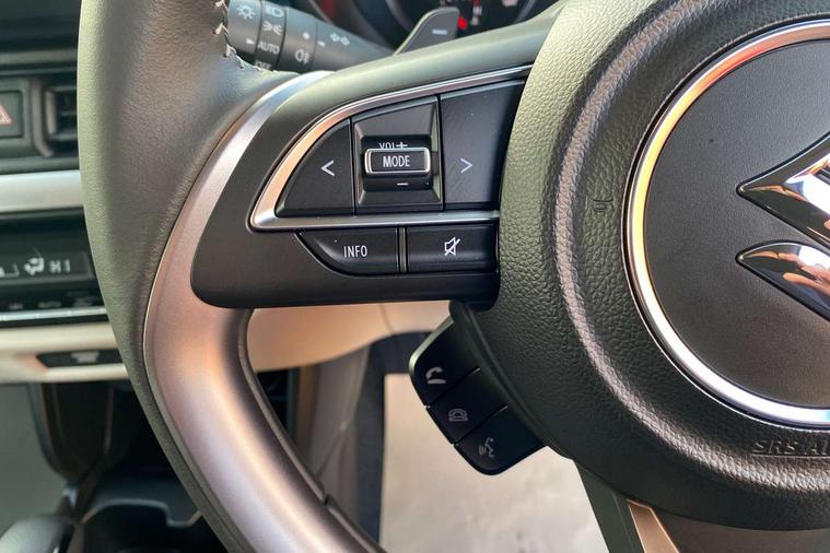 Adaptive cruise control with Stop and Go, Automatic start/stop system, Blind spot monitoring, Colour LCD information display, Digital clock, Driver monitoring system, eCall, Fuel consumption display (average/instantaneous) and range display, Intelligent speed control support, Lane departure prevention, Lane departure warning system, Lane keeping assist (LKA), Low fuel level warning light, Navigation system, Outside temperature display, PAS, Rear cross traffic alert, Rear parking camera, Rear parking sensors, Remote fuel cap release, Smartphone integration with Apple CarPlay and Android auto, Suzuki connect, Tailgate, Traffic sign recognition, Weaving alert, 4 speakers + 2 tweeters, 9-inch infotainment display, Auxiliary input socket, Bluetooth audio streaming, DAB Digital radio, Steering wheel audio controls, USB Type A and C, 'Guide me home' headlamps, 1 speed with intermittent rear wiper + washer, 2 speeds front wiper with intermittent + washer, Automatic headlights, Black coloured A & B pillars, Black Upper and lower front grille, Body colour door mirrors and handles, C pillar trim moulding, Door mirrors with built-in turn signal lamp, Electric door mirrors, Electric folding door mirrors, Electric front windows, Electric rear windows, Green tinted glass, Heated door mirrors, High beam assist, LED daytime running lights, LED High mounted stop light, LED number plate light, LED position lamps, LED projector headlamps, LED rear combination lamp, Manual headlamp level control, Rain sensor, Rear fog lights, Rear privacy glass, Rear side wing doors, Rear spoiler, Side spoiler, 1 cup holder in rear, 12V Accessory socket in front console, 2 cup holders in front, 2 Isofix seat anchors, 3 bench rear seats in 2nd row, 3 rear head restraints, 3 spoke leather covered steering wheel, 60/40 split rear seats, Accessory socket, Automatic air conditioning, Centre console storage, Centre lower box, Child seat tether anchorages x 2, Chrome handbrake release button, Chrome interior door handles, Cloth upholstery, Door pockets with bottle holder, Driver/passenger sunvisors with ticket holders + vanity mirrors, Front cabin lights, Front headrests, Front map light, Front passenger side assist grip, Gearshift paddles, Glovebox, Heated front seats, Heater, Height adjustable driver's seat, Luggage area lamp, Painted interior door trim ornament, Parcel shelf, Passenger seat back pocket, Pollen filter, Rear assist grips x2, Rear heater duct, Single front passenger seat, Tilt adjustable steering wheel, Tilt/telescopic adjustable steering wheel, 3 point ELR seatbelts for centre seat, 3 point ELR seatbelts front and rear, ABS+EBD+Brake assist, Curtain airbags, Driver airbag, Dual sensor brake support, ESP + traction control, Front and rear seatbelt reminder, Front passenger airbag, Front passenger airbag deactivation, Front seat seatbelts shoulder height adjuster, Front seatbelt pretensioners with force limiters, Hill hold control, Rear child proof door locks, Rear seatbelts with pre-tensioners and load limiters, Side airbags with incorporated into front seats, Tyre pressure indicator, Deadlocks, Freewheeling key cylinders, Immobiliser, Keyless entry and start, Light - on and Key in reminder, Locking wheel nuts, Remote central locking, Painted instrument panel ornament, 16" Polished alloy wheels, Emergency flat tyre repair kit,